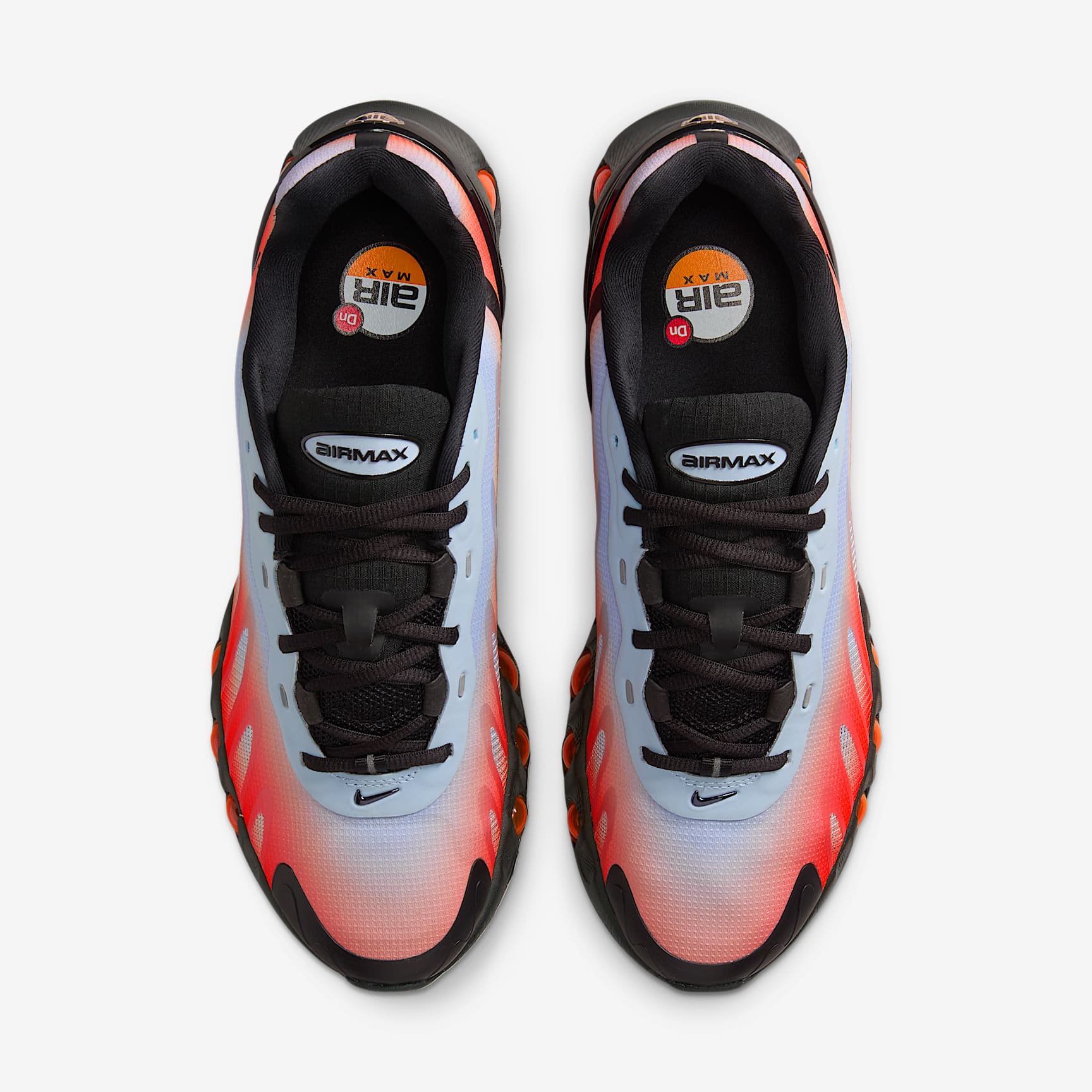 More Air, less bulk. The Dn8 takes our Dynamic Air system and condenses it into a sleek, low-profile package. Powered by eight pressurized Air tubes, it gives you a responsive sensation with every step. Enter an unreal experience of movement. Unreal Cushioning Our Dynamic Air system features dual-chambered tubes with tuned pressure levels. This means airflow shifts within each set of tubes in response to compression, providing a custom cushioning experience. Unreal Motion Spanning from heel to toe, the Dynamic Air system sits directly on top of the rubber outsole to get you as close to the ground as possible for smoother transition. Plush foam is placed underfoot for additional comfort. Unreal Flow Sculpted upper is made of lightweight mesh on top, while slashes at the sides reveal open mesh for more breathability. Design lines help radiate energy throughout your look. More Benefits * Plastic heel clip helps hold your foot down for more containment. * Extra layer across toe tip adds durability. Product Details * Foam midsole * Rubber outsole Nike Air Max Origins Revolutionary Air technology first made its way into Nike footwear in 1978. In 1987, the Air Max 1 debuted with visible Air technology in its heel, allowing fans more than just the feel of Air cushioning—suddenly they could see it. Since then, next-generation Air Max shoes have become a hit with athletes and collectors by offering striking color combinations and reliable, lightweight cushioning.
