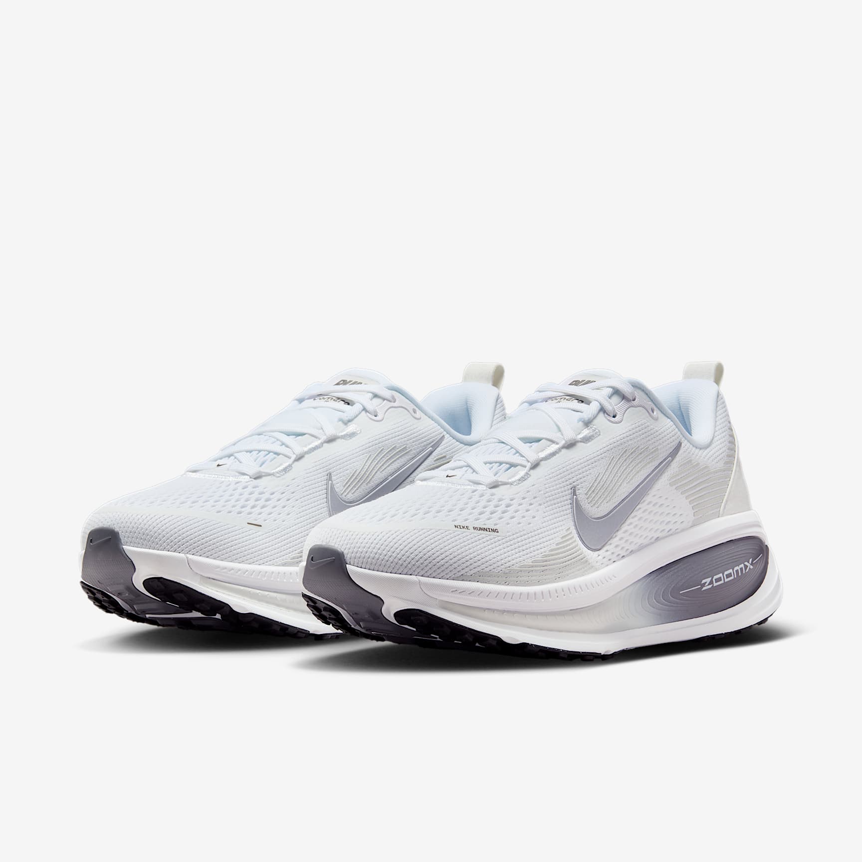 Maximum cushioning in the Vomero provides a comfortable ride for everyday runs. Our softest, most cushioned ride has lightweight ZoomX foam stacked on top of responsive ReactX foam in the midsole. Plus, a redesigned traction pattern offers a smooth heel-to-toe transition. Engineered Mesh Upper The upper is made of engineered mesh for soft breathability. Dual-Density Midsole Our dual-density midsole has ZoomX foam stacked on top of ReactX foam, 13% more responsive than previous React technology, for a comfortable ride. Pods Around Outsole We placed pods around the outsole to help enhance agility and smoother heel-to-toe transitions. Plush Padding A plush tongue and lining give you a comfortably snug feel. What’s New? Newly stacked foam midsole with premium ZoomX on top of ReactX foam amplifies cushioned comfort. Product Details * Weight: Approx. 263g/9.3oz (Women’s US 8) * Heel-to-toe drop: 10mm * MR-10 Last - Our best, most consistent fit * Not intended for use as Personal Protective Equipment (PPE)