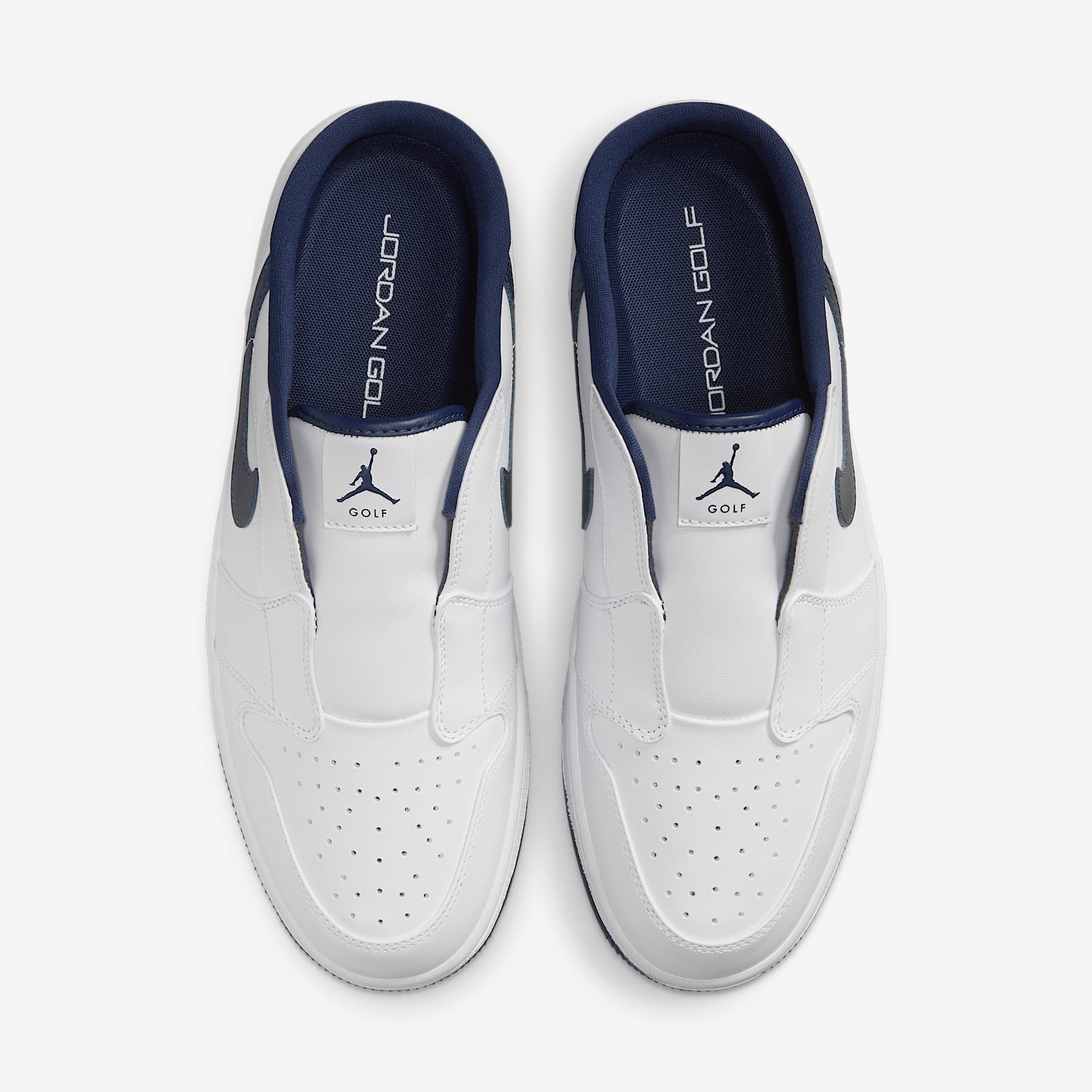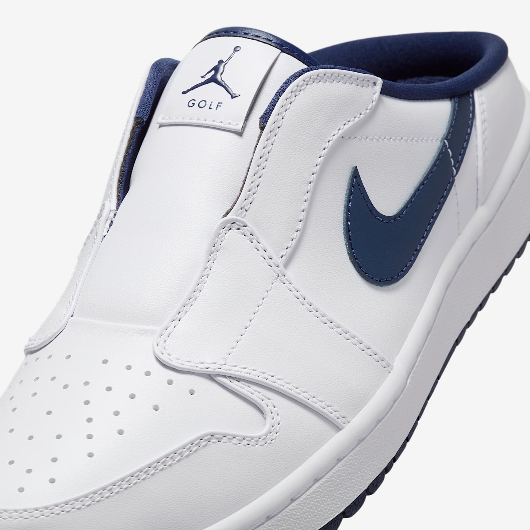 Slide into pre- and post-game paradise, whether you're sailing to the 19th hole after a career low or ramping up for the round ahead in the all-new Jordan 1 G Mule. It's easily accessible, eye-poppingly eccentric and complete with timeless Jordan ethos and comfort. Mule style Mule style construction offers hands-free entry after kicking off your spikes in the car park or simply grabbing these out of the wardrobe for a quick trip to the shop. Comfy foam A comfy memory foam sits directly under your foot for extra cushioning, perfect for pre-round errands or putting your feet up after bagging a few birdies on the back 9. Leather tongue The synthetic-leather gusseted tongue offers easy access into the design and doesn't flop around as your march to the clubhouse. It's comfortable against your ankle and easy to clean. More benefits * Full-grain leather is pierced with small holes for better breathability. * The sticky outsole gives you great grip on the journey to and from the course.