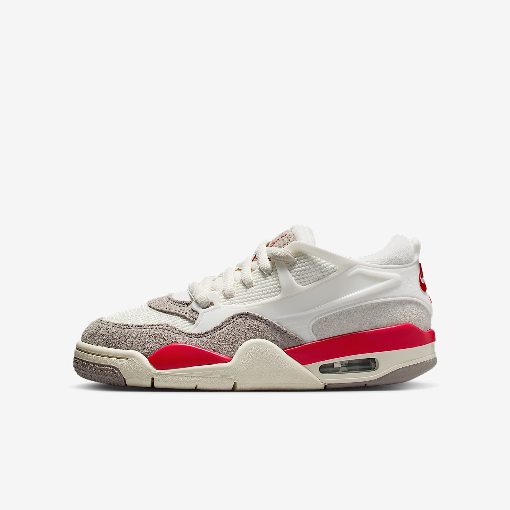 When you play all day, you need shoes that can keep up. Made for life on the go, these sneakers reimagine the best of the AJ4 with a focus on comfort and durability. Visible Max Air units help cushion every step. A strong, flexible cage wraps part of the upper, adding durability and dimension. Benefits * Genuine leather upper helps provide durability, structure and a premium feel. * Plush and comfortable, Max Air cushioning has just the right amount of support. * Soft foam midsole helps provide lightweight cushioning. * Rubber outsole adds durable traction. Product Details * Classic laces * Nike Air logo on heel * Jumpman on tongue and sole
