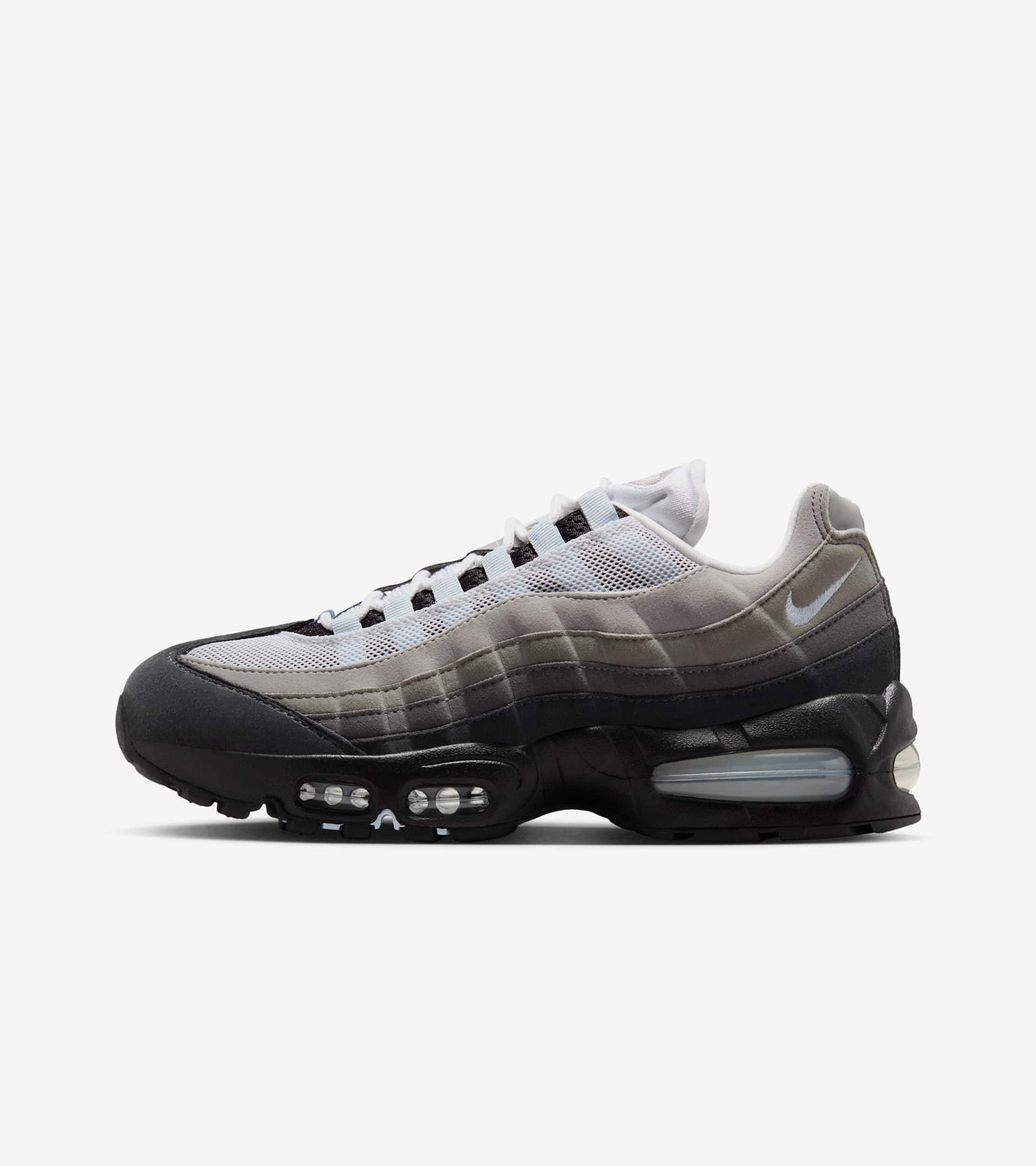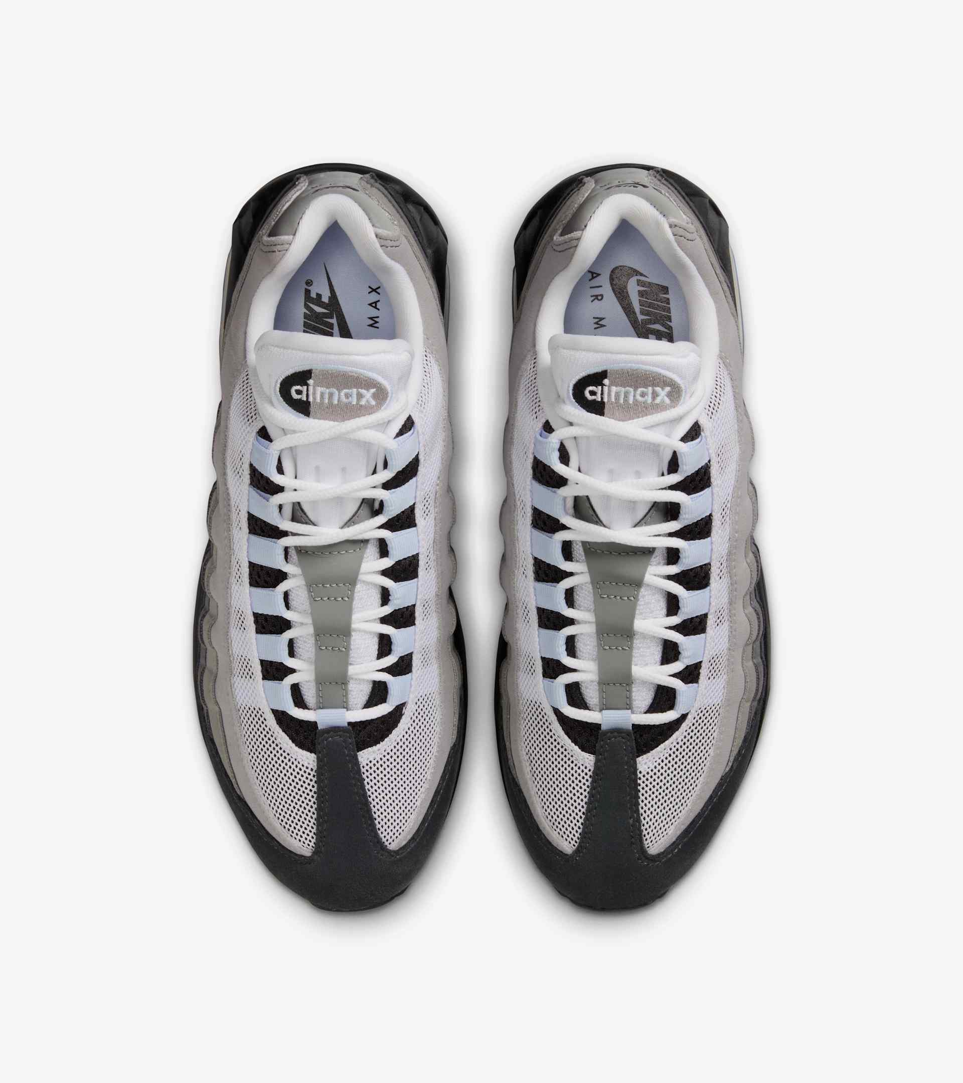 Big. Bold. Bounce. To celebrate 30 years of the iconic silhouette, the Air Max family welcomes back the 'Big Bubble' edition of the 95. With a design that stays true to the original, this iteration stacks the upper with rippling layers of synthetic leather and airy mesh that gradually fade through a series of grey hues. Pops of Blue Tint accentuate the lace loops, branding and Max Air units, adding distinction and nostalgic allure. Elevate your style with a little more Air and enjoy the future of your Air Max journey. SKU: HJ5996-002