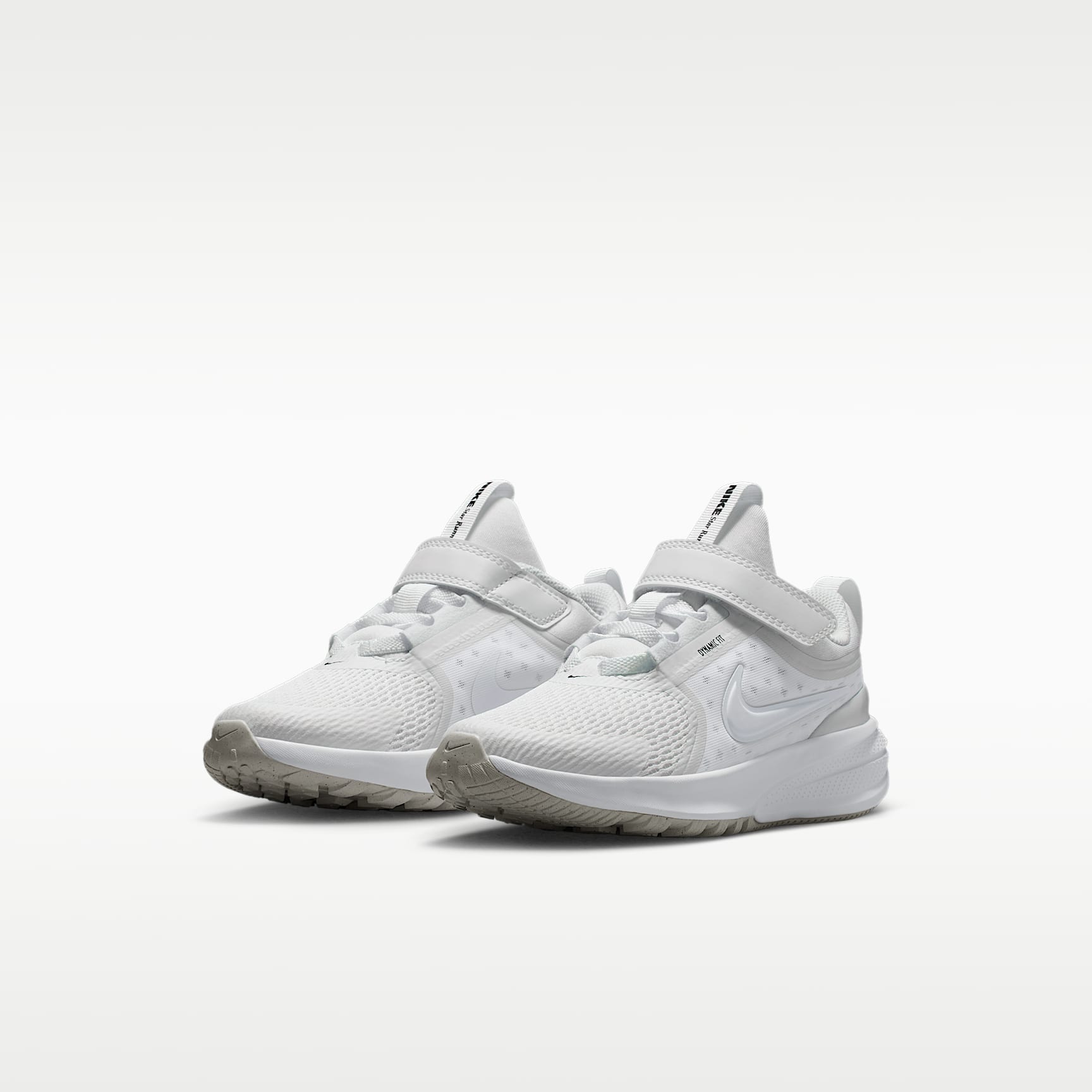 Breathable and lightweight, the Nike Star Runner 5 will have your little one dreaming of all the ways they can run and play. Springy cushioning and a secure fit help them make the most out of playtime. Keep cool Breathable mesh and airy knits keep the upper lightweight and flexible, helping little feet stay cool and comfortable. We reinforced the toes for added durability. Secure fit A Dynamic Fit band wraps around the middle of the foot and works with stretchy elastic laces to give kids a stable, held-in feel. An adjustable hook-and-loop strap helps kids secure their fit fast. Spring into action We packed the midsole with foam, helping add soft and springy cushioning to kids' every stride. Get a grip Durable rubber lugs on the outsole help provide added traction where little runners need it most. Product details * Elastic laces * Pull tab on tongue