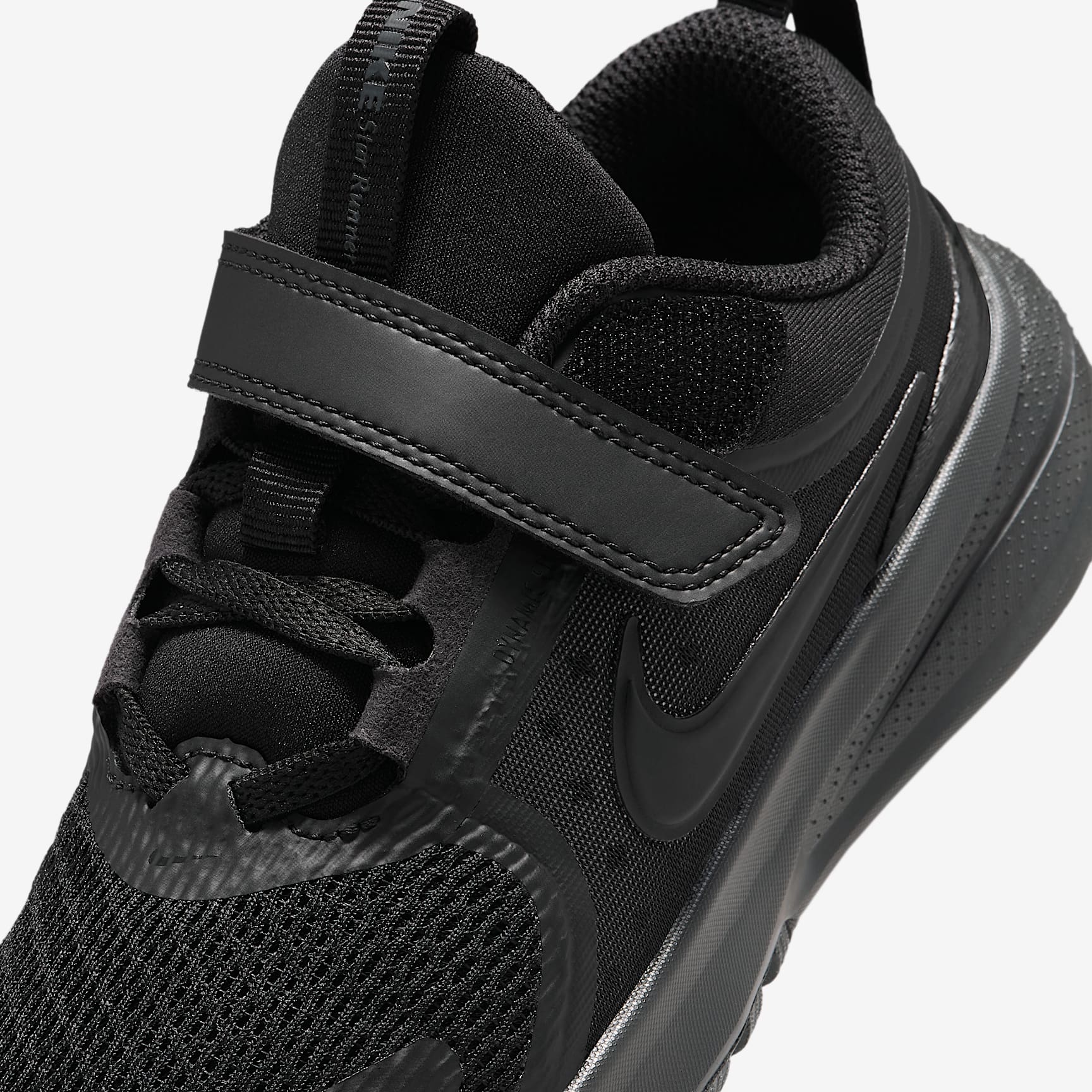 Breathable and lightweight, the Nike Star Runner 5 will have your little one dreaming of all the ways they can run and play. Springy cushioning and a secure fit help them make the most out of playtime. Keep cool Breathable mesh and airy knits keep the upper lightweight and flexible, helping little feet stay cool and comfortable. We reinforced the toes for added durability. Secure fit A Dynamic Fit band wraps around the middle of the foot and works with stretchy elastic laces to give kids a stable, held-in feel. An adjustable hook-and-loop strap helps kids secure their fit fast. Spring into action We packed the midsole with foam, helping add soft and springy cushioning to kids' every stride. Get a grip Durable rubber lugs on the outsole help provide added traction where little runners need it most. Product details * Elastic laces * Pull tab on tongue