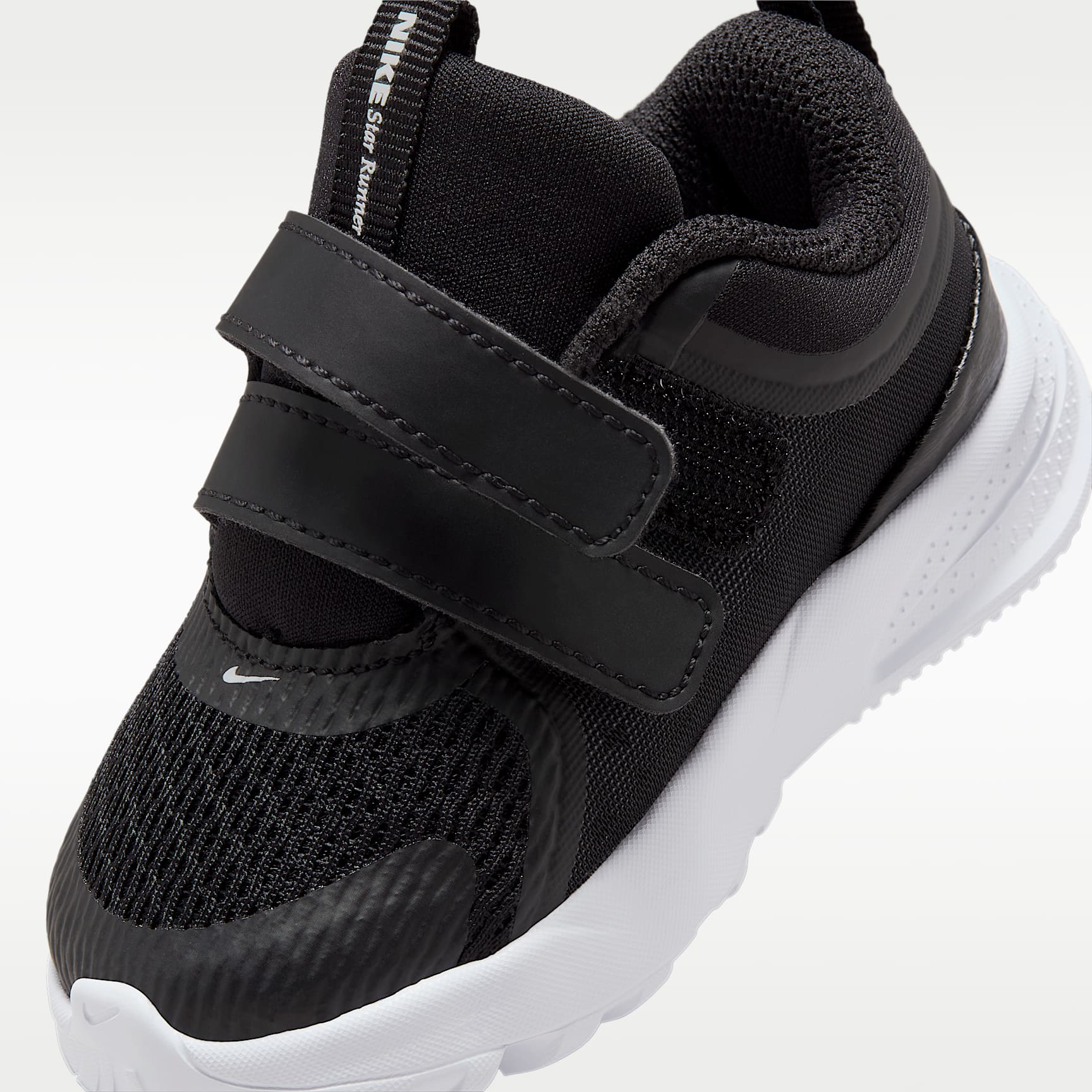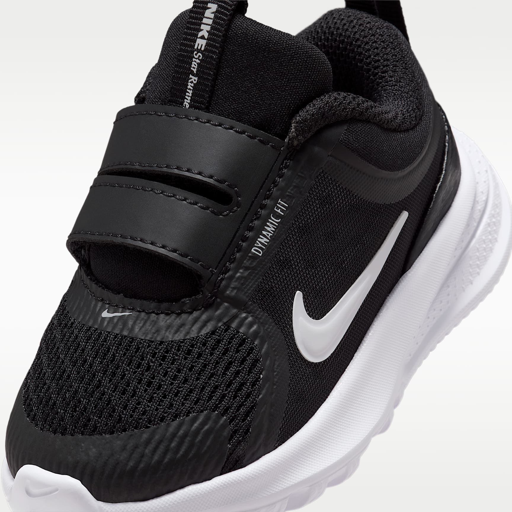 Breathable and lightweight, the Nike Star Runner 5 lets your future racer take on the day in comfort. Springy cushioning and a secure fit help them make the most out of playtime. Benefits * Adjustable hook-and-loop straps help you secure their fit fast. * Breathable mesh and airy knits keep the upper lightweight and flexible. * Dynamic fit band wraps around the middle of the foot to give kids a stable, held-in feel. * Foam midsole adds soft and springy cushioning. * Reinforced toe adds durability.