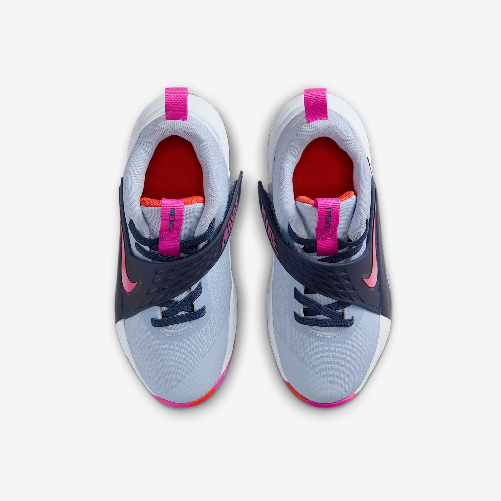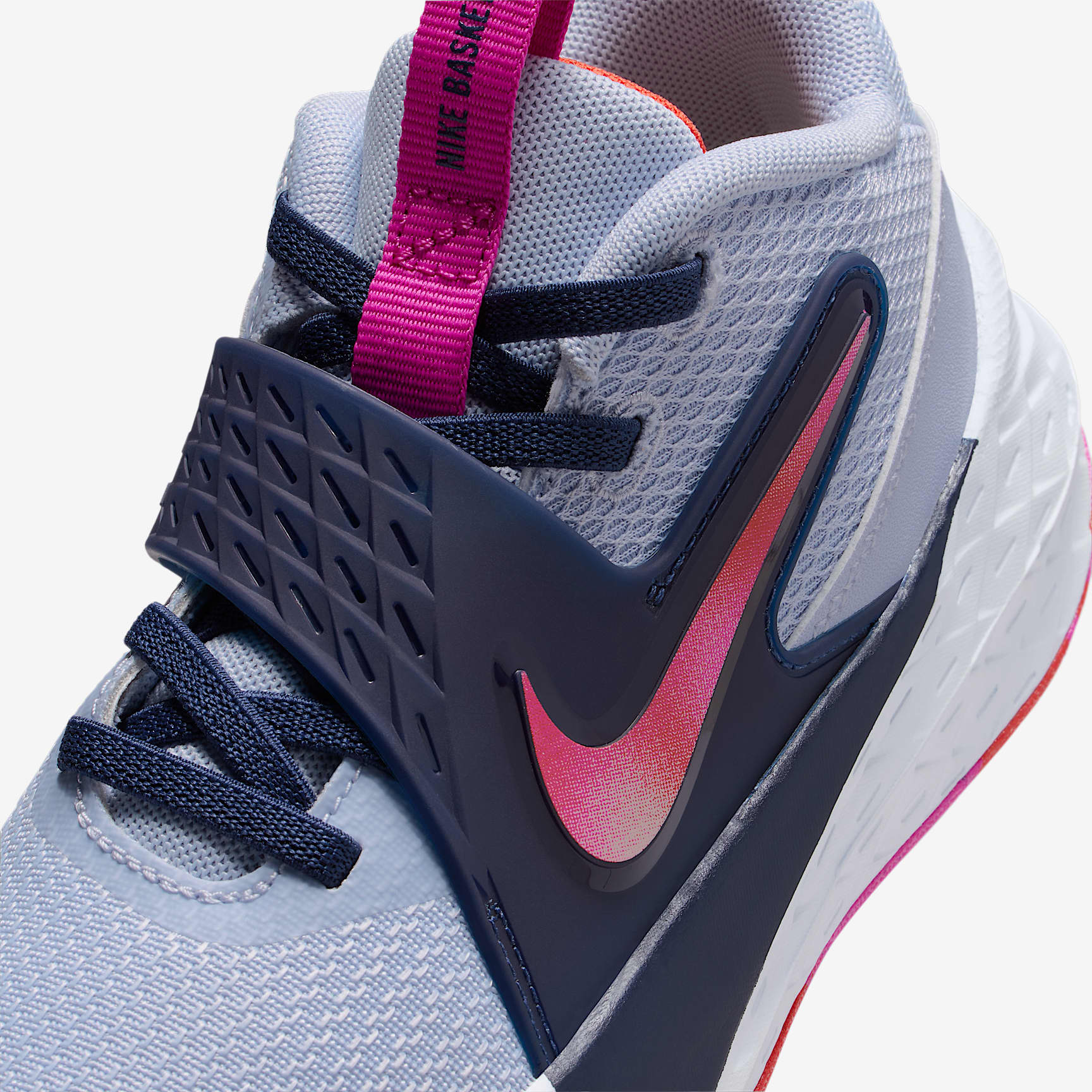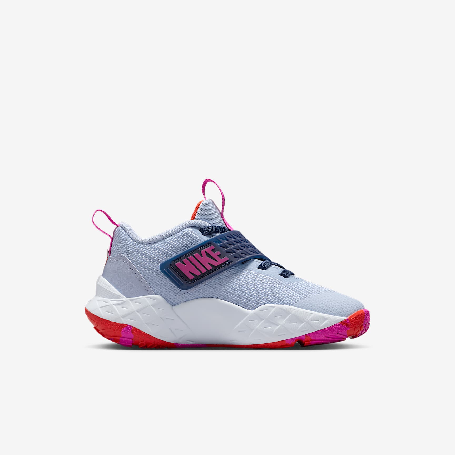 The Nike Team Hustle D is made for kids who love to hoop. Stretchy elastic laces and a strap closure make it easy for kids to secure their fit. Underfoot, plush foam and a durable rubber outsole give them the cushioning and grip they need to confidently play on outdoor courts. Easy to Secure Stretchy elastic laces pair with a hook-and-loop strap to help give kids a secure, contained fit. We added oversized loops to the tongue and heel to help make these easy to pull on. Blacktop Ready A flexible, full-length rubber outsole offers the durability and grip kids need to bring their best on outdoor courts and playgrounds. Plus, soft foam in the midsole cushions every step and jump they take. Keep Cool Breathable mesh in the upper helps keep little feet from overheating. Product Details * Elastic laces * Pull tabs on tongue and heel