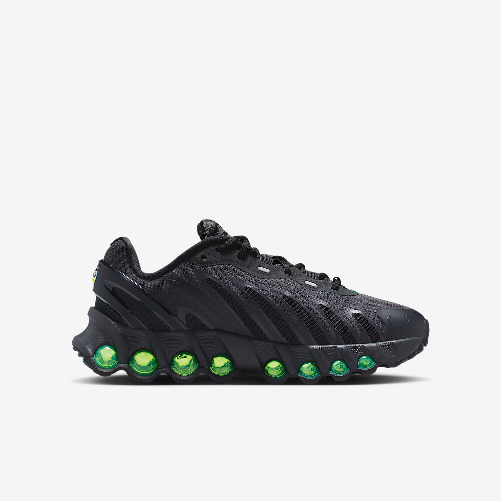 More Air, less bulk. The Dn8 takes our Dynamic Air system and puts it into a sleek, low-profile package. Powered by eight pressurised Air tubes, it gives you a bouncy sensation with every step. Enter an unreal experience of movement. Unreal cushioning Our Dynamic Air system features dual-chambered tubes with tuned pressure levels. This means air shifts within each set of tubes as you step, providing a cushioning experience that feels custom made. Unreal motion The Dynamic Air system sits directly on top of the rubber outsole to get you as close to the ground as possible for a smoother transition. Plush foam is placed underfoot for added comfort. Unreal flow The sculpted upper is made with lightweight closed mesh on top, while slashes at the sides reveal open mesh for more breathability. Design lines help radiate energy throughout your look. More benefits * Flex grooves in the outsole help every step feel natural. * The plastic heel clip helps hold your foot in place for added containment. * The extra layer across the toe tip adds durability. Product details * Classic laces * Reflective accents * Not intended for use as personal protective equipment (PPE)