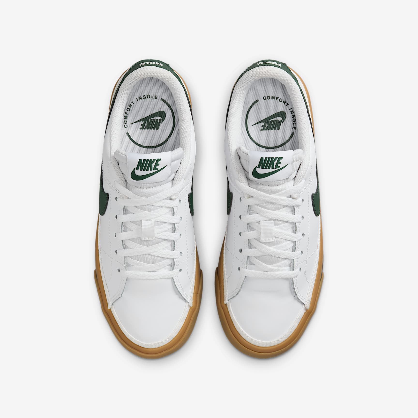 OLD-SCHOOL TENNIS CULTURE. The Nike Court Legacy serves up style rooted in tennis culture. They are durable and comfy with heritage stitching and a retro Swoosh. When you pull these on—it’s game, set, match. Benefits * Durable leather has classic tennis style. * The rubber sole with herringbone pattern provides traction and heritage looks. * Soft foam cushioning brings lightweight comfort. Product Details * Plush foam insole * Swoosh license plate on back heel tape * Debossed "NIKE" block lettering on heel tab