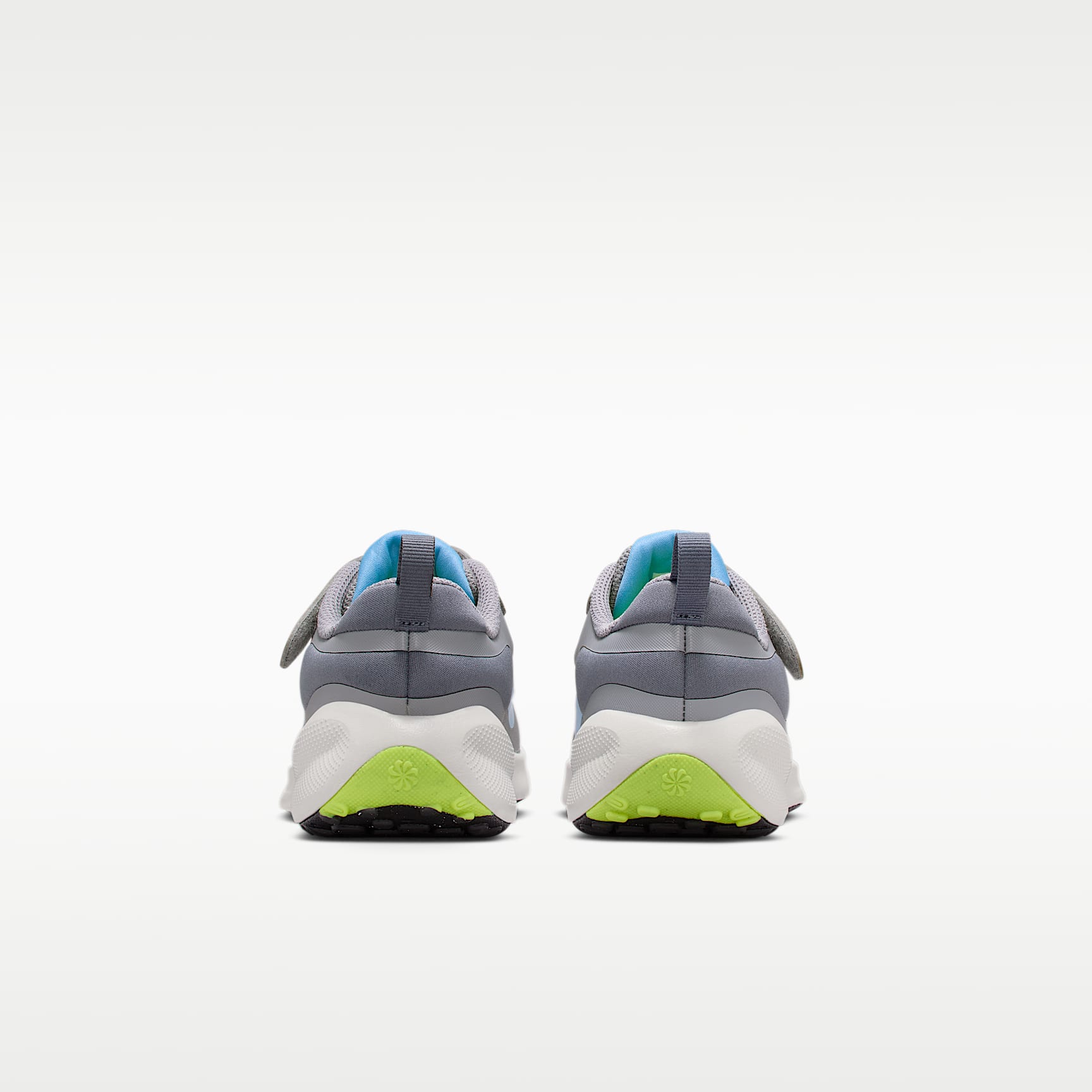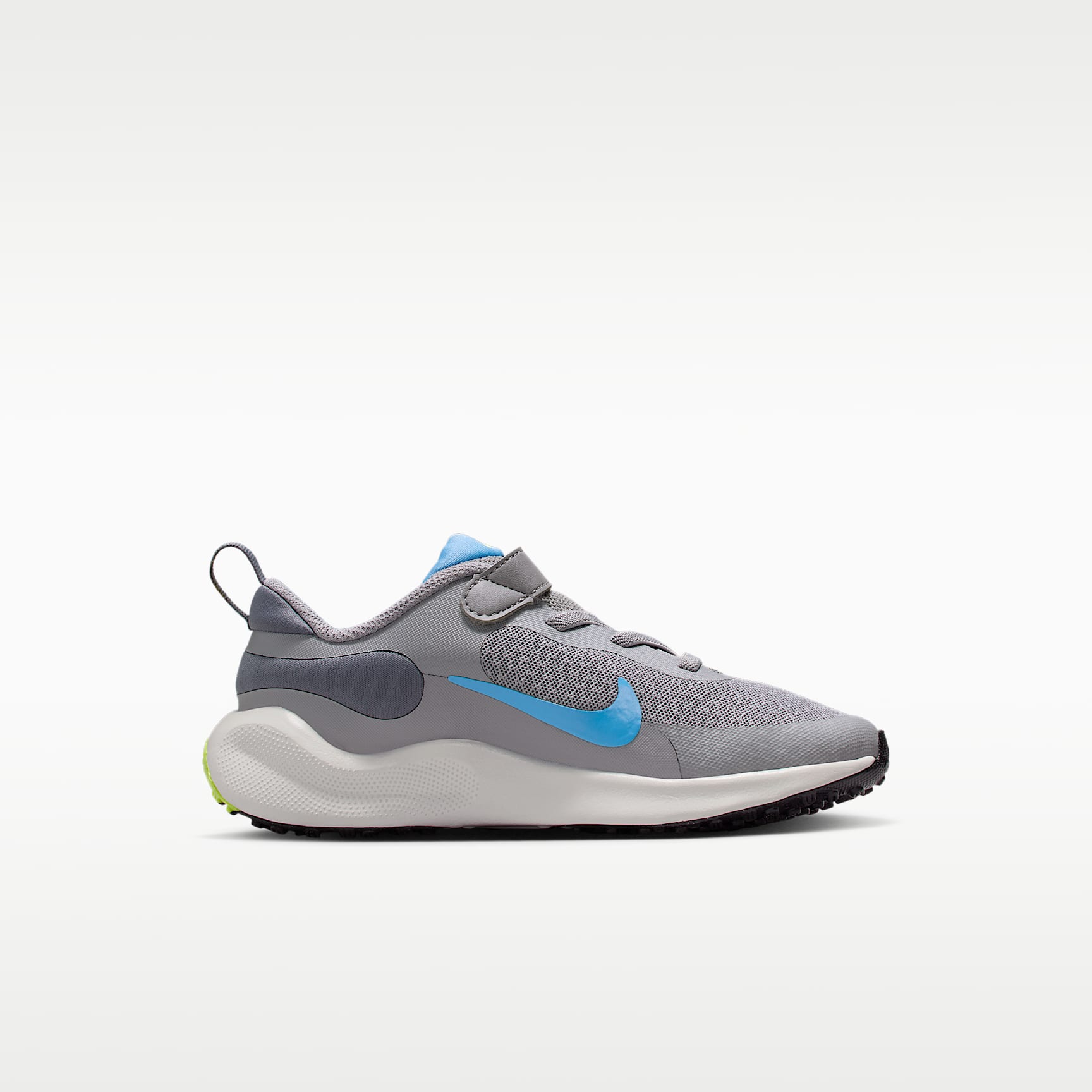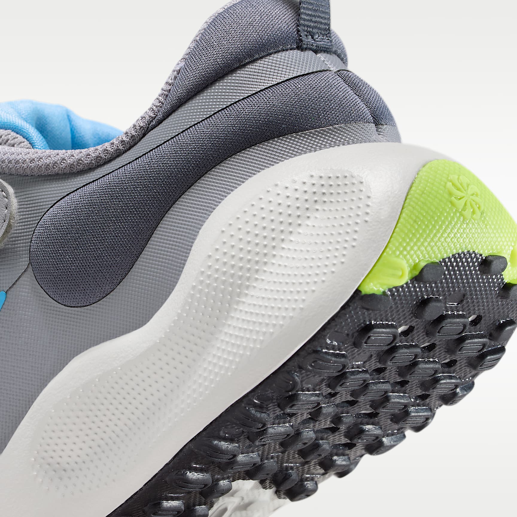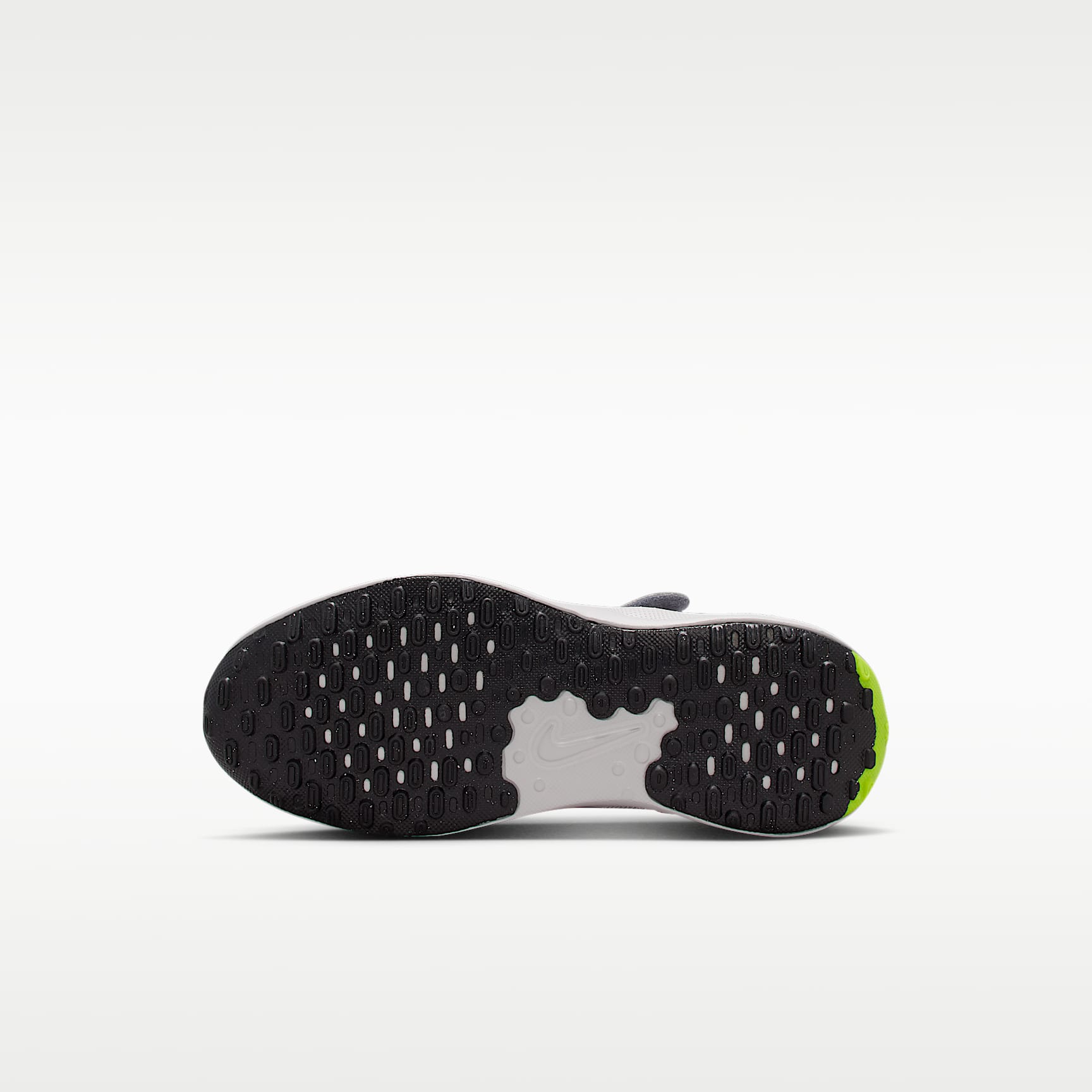 Let your kiddo flash, dash and blast to the finish line in the Nike Revolution 7. Made for days filled with fun, it features springy foam and a durable, Waffle-inspired outsole for all the cushioning and traction kids need to race into play. What's New We added more foam to the midsole and extra cushioning around the heel for a truly comfortable feel. Easy to Put On Elastic laces and a hook-and-loop strap make these shoes easy to take on and off. Reinforced Upper Lightweight textiles up top help keep these shoes breathable. We reinforced high-wear areas like the toe for added durability. Soft Foam Midsole Soft, springy foam in the midsole helps cushion their every stride as run and play the day away. Padded Collar Pillow-soft foam around the collar and heel adds another layer of comfortable cushioning. Durable Traction Durable rubber outsole features a Waffle-inspired tread pattern to help give kids grippy traction. Product Details * Elastic laces * Foam midsole * Rubber toe tip