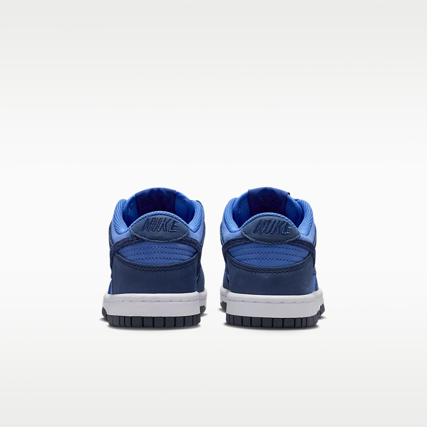 Add a classic to your collection. Once an '80s icon, the Nike Dunk returns with a special edition design that mixes smooth leather with sturdy canvas. How will you wear your Dunks? Benefits * Genuine leather in the upper softens and gains vintage character with wear. * Foam midsole offers lightweight cushioning. * Rubber outsole with classic pivot circle adds durable traction and heritage style. Product Details * Classic laces * Padded collar * Cupsole construction Nike Dunk Born from a series of mash-ups, hacks and tight deadlines, the Nike Dunk landed on college basketball courts during the '85–'86 season. While the original College Colors designs helped you stay true to your school, the Dunk didn't prove to be popular. But it was this humble sneaker's lack of popularity—and flat, grippy soles—that helped it jump the rails to captivate skateboarders. Decades later, this everyday favorite continues to be snatched up in countless colorways, proving its influence is undeniable.