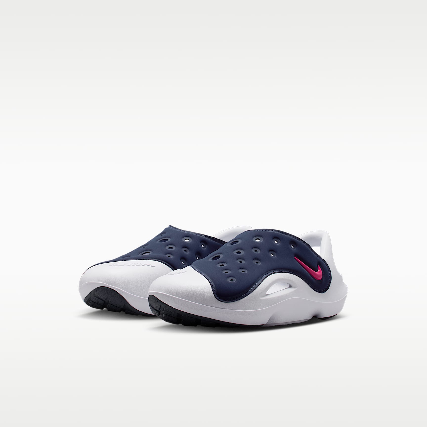 Help your little explorer stay ready for adventure with the Nike Aqua Swoosh. Soft fabric up top and plush foam underfoot help make for comfortable steps while a heel strap secures the fit. Plus, drainage holes on the upper and cutouts along the sides help make these ideal for splash pads, pool days and other water activities. Benefits * Soft and smooth upper helps provide stretchy support. * Fixed heel strap helps secure the fit. * Durable rubber outsole features a tread pattern to help give little feet the traction they need.