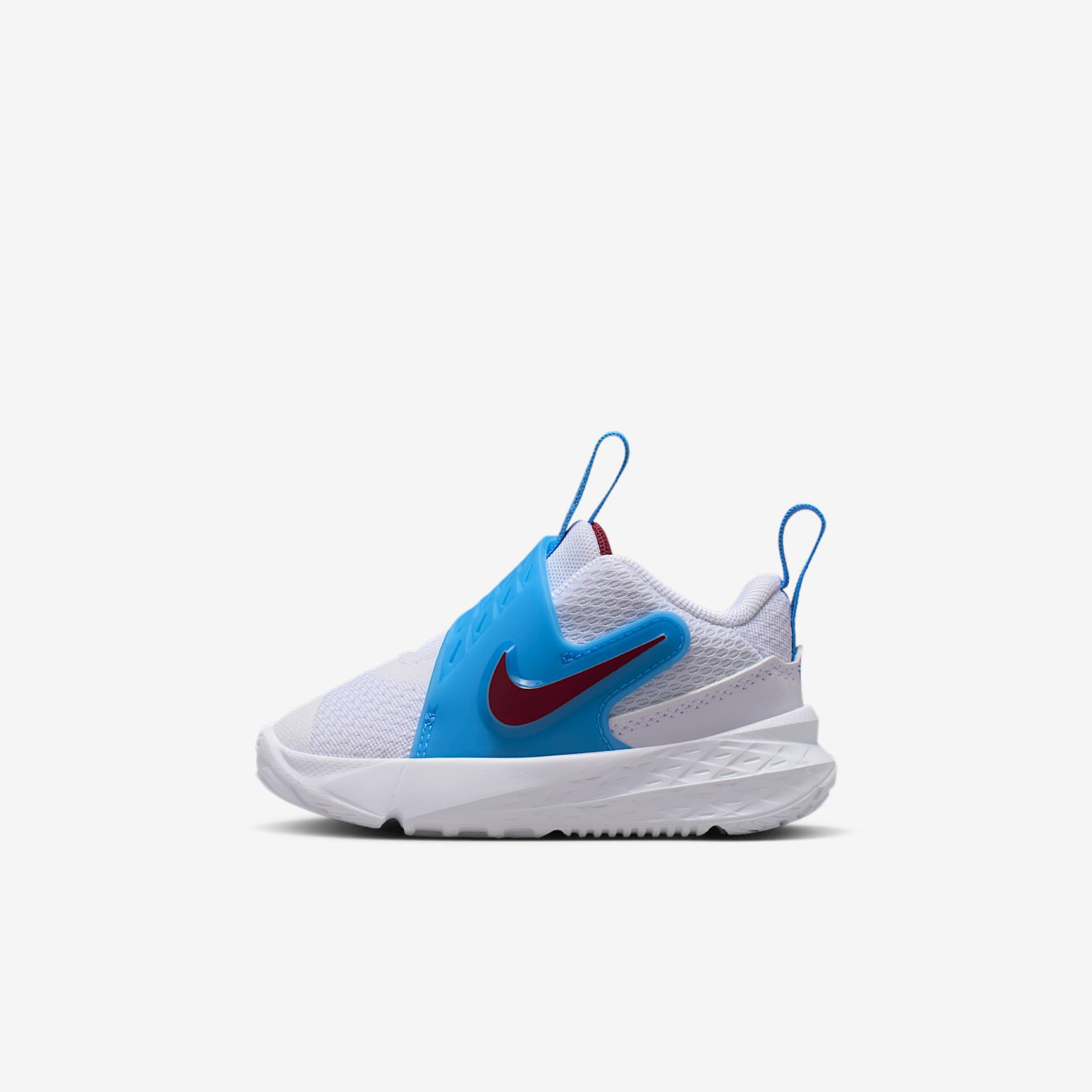 This Nike Team Hustle D is made for future hoopers. A strap closure system makes it easy to secure their fit fast. Underfoot, soft foam gives kids the cushioning they need to find their footing. Easy to secure A wide opening, oversized pull tabs and a hook-and-loop strap help make it easy to slip these on little feet. Early steps The sturdy foam outsole helps provide the flexibility and traction little feet need as they find their footing. Stay cool Breathable mesh in the upper helps keep little feet from overheating.