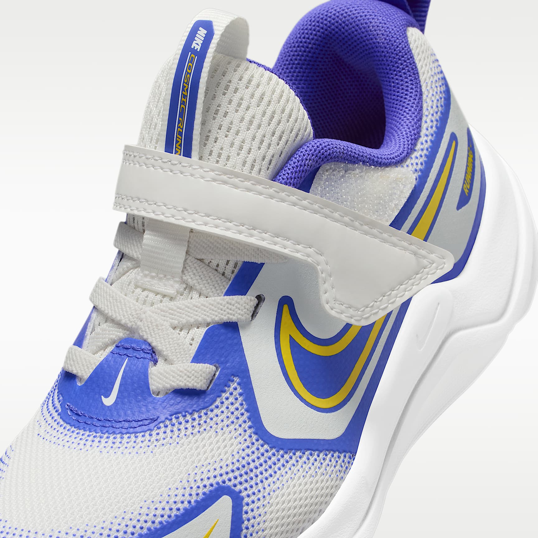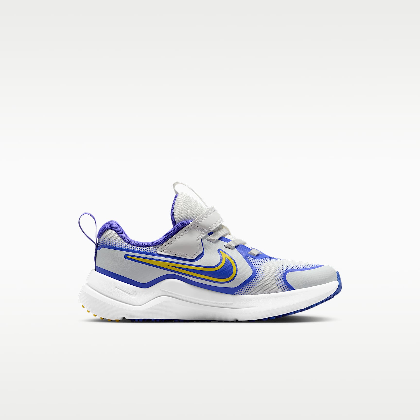 Meet the shoe built for kids who treat the world as their racetrack. Loaded with stable cushioning and durable features, the Nike Cosmic Runner helps support your little one's every stride. Elastic laces and a hook-and-loop strap let them get ready fast. Breathability Meets Durability Lightweight mesh in the upper helps keep little feet cool. We reinforced the toes, sides and heels for added durability. Cushioning That Keeps Up Springy foam helps cushion kids' every stride, giving them the soft and supportive feel they need to go the distance. Ready, Set, Run! Durable two-part rubber outsole helps gives kids the grip they need to confidently run on multiple surfaces. Product Details * Elastic laces * Pull tabs on tongue and heel