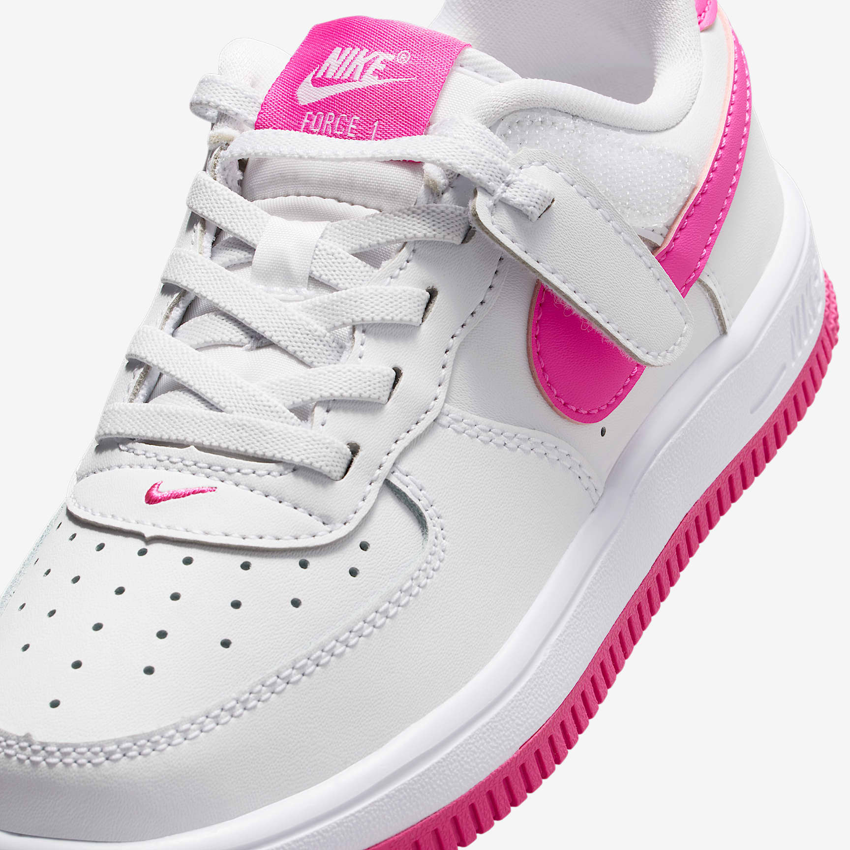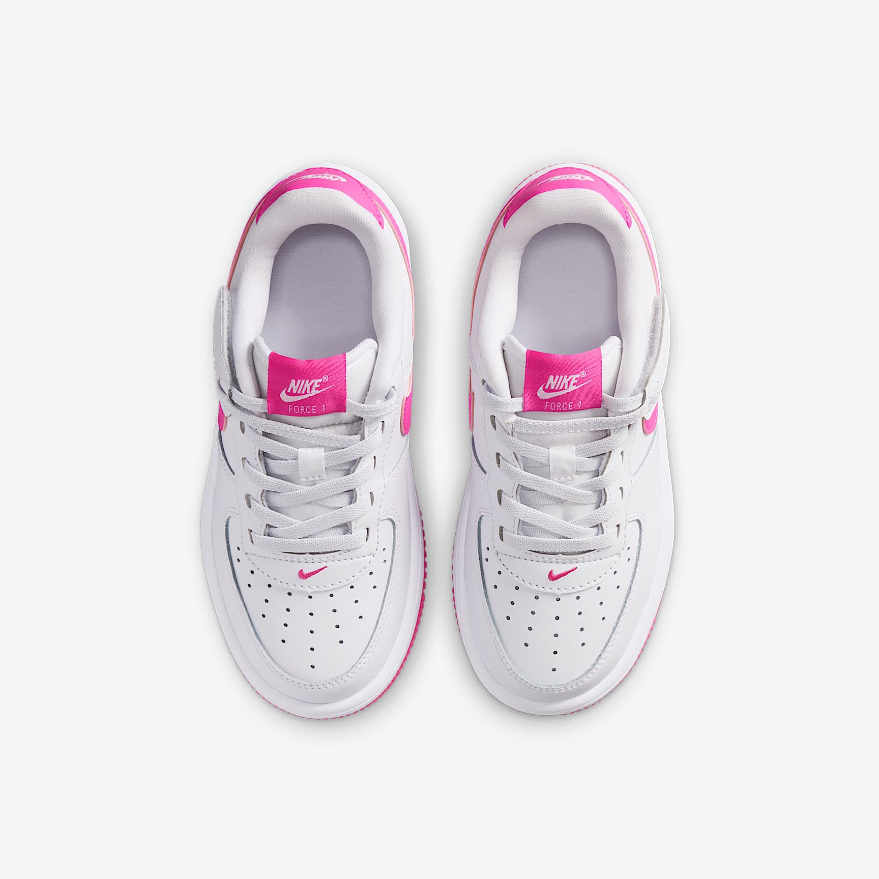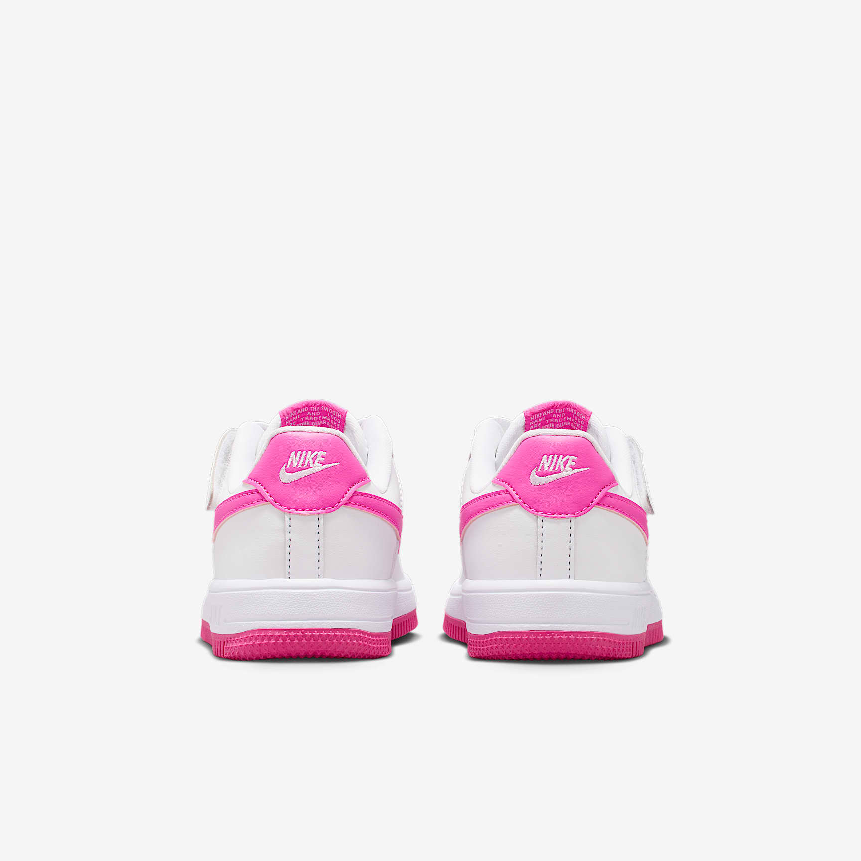 Get out the door fast without struggling with shoelaces. The top lace loops on these sneakers are attached to hook-and-loop straps, helping kids secure their fit fast while still enjoying classic AF1 style. Benefits * Our helpful Nike EasyOn features empower kids to do it themselves so they can focus on what matters most: play. * Elastic laces and a hook-and-loop strap make these shoes easy to take on and off. * Real and synthetic leather offers durability and structure. * Soft foam in the midsole helps cushion every step. * Rubber outsole adds durable traction with a circular tread pattern originally designed to help basketball players pivot on the court. Product Details * Elastic laces * Perforations on toe