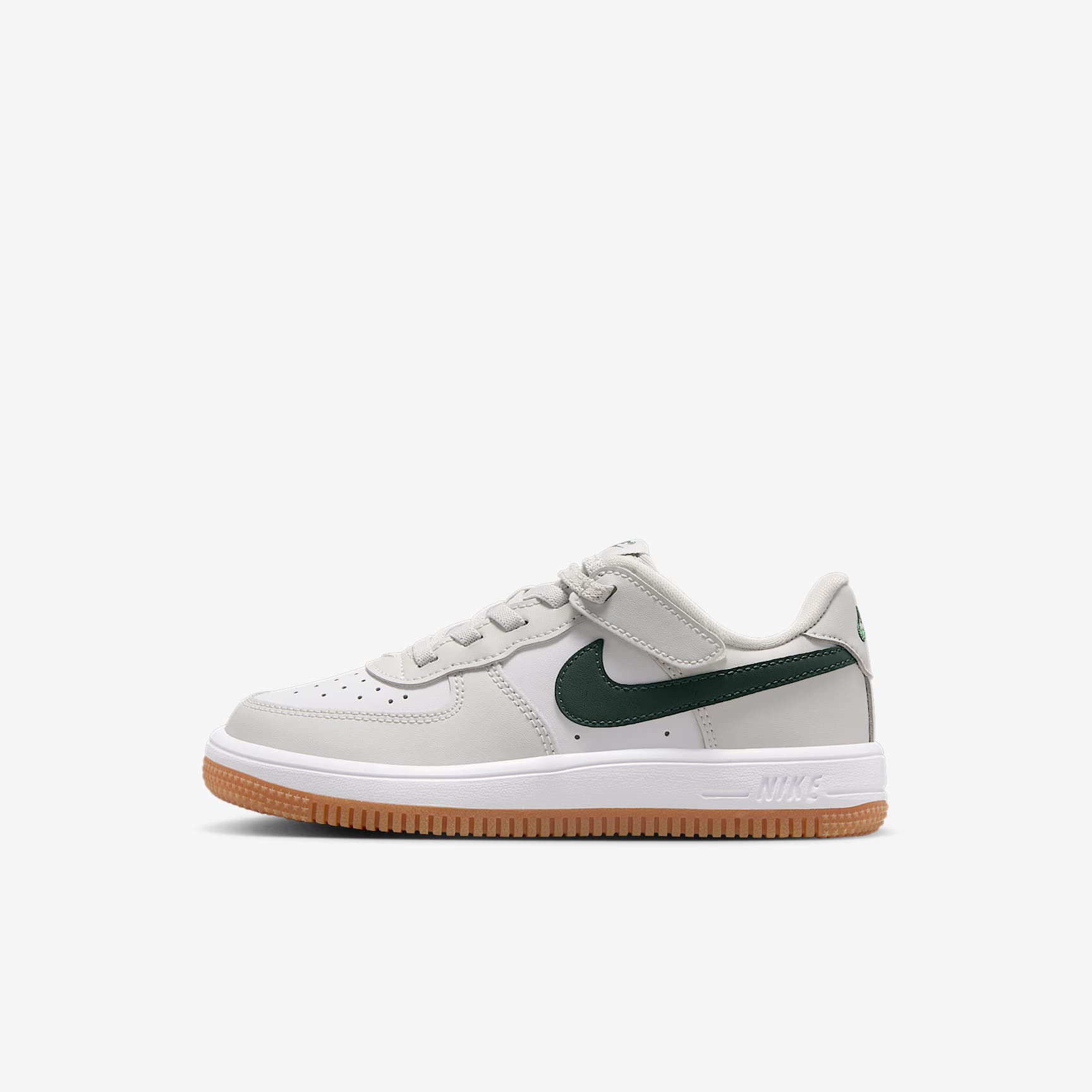 Get out the door fast without struggling with shoelaces. The top lace loops on these sneakers are attached to hook-and-loop straps, helping kids secure their fit fast while still enjoying classic AF-1 style. Benefits * Our helpful Nike EasyOn features empower kids to do it themselves so they can focus on what matters most: play. * Elastic laces and a hook-and-loop strap make these shoes easy to get on and off. * Real and synthetic leather offers durability and structure. * The soft foam in the midsole helps cushion every step. * A rubber outsole adds durable traction with a circular tread pattern originally designed to help basketball players pivot on the court. Product details * Elastic laces * Perforations on the toe