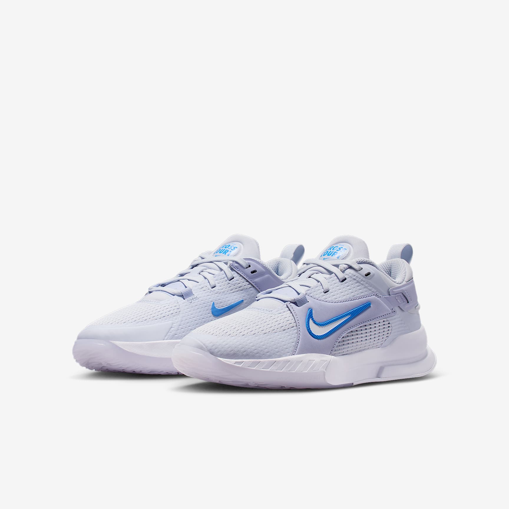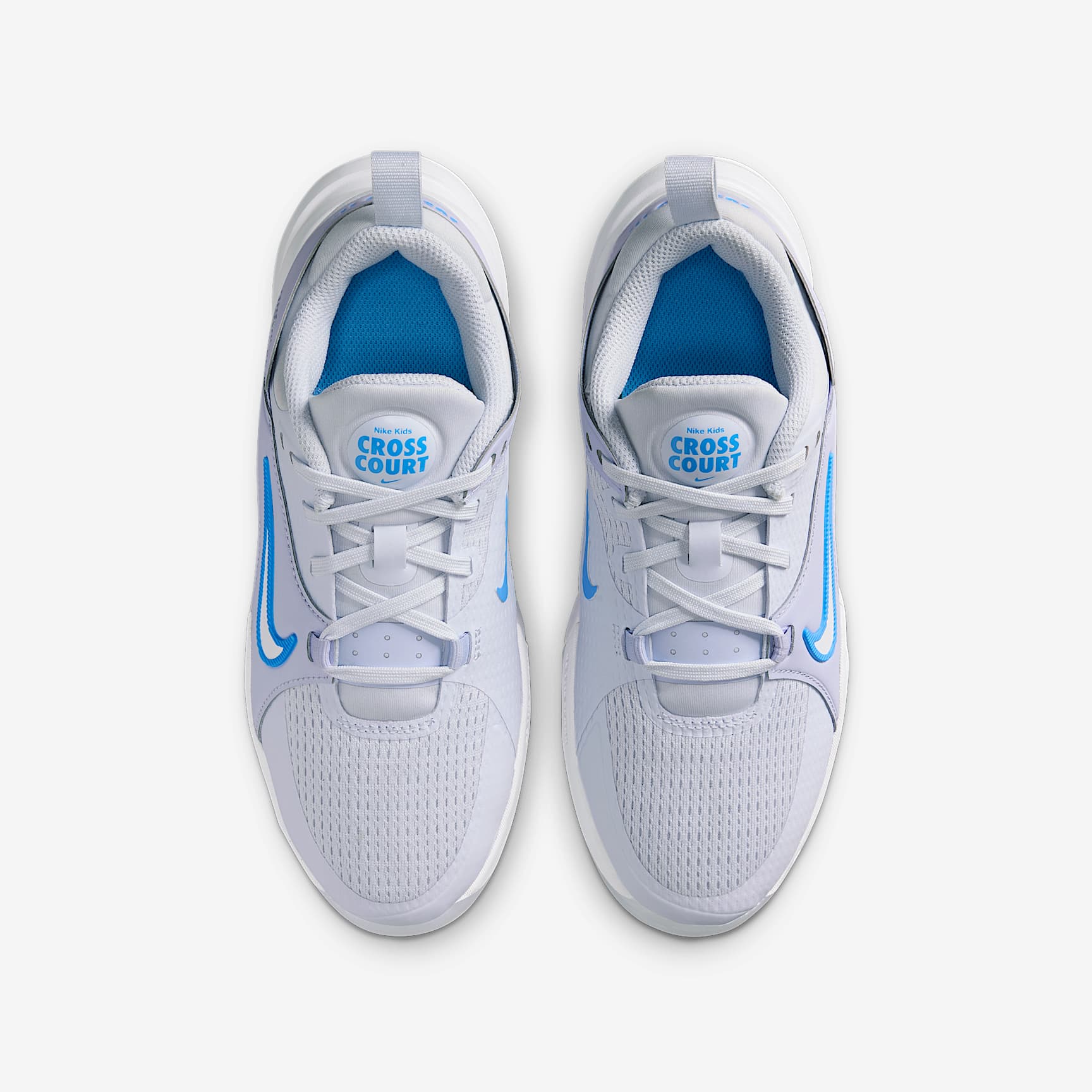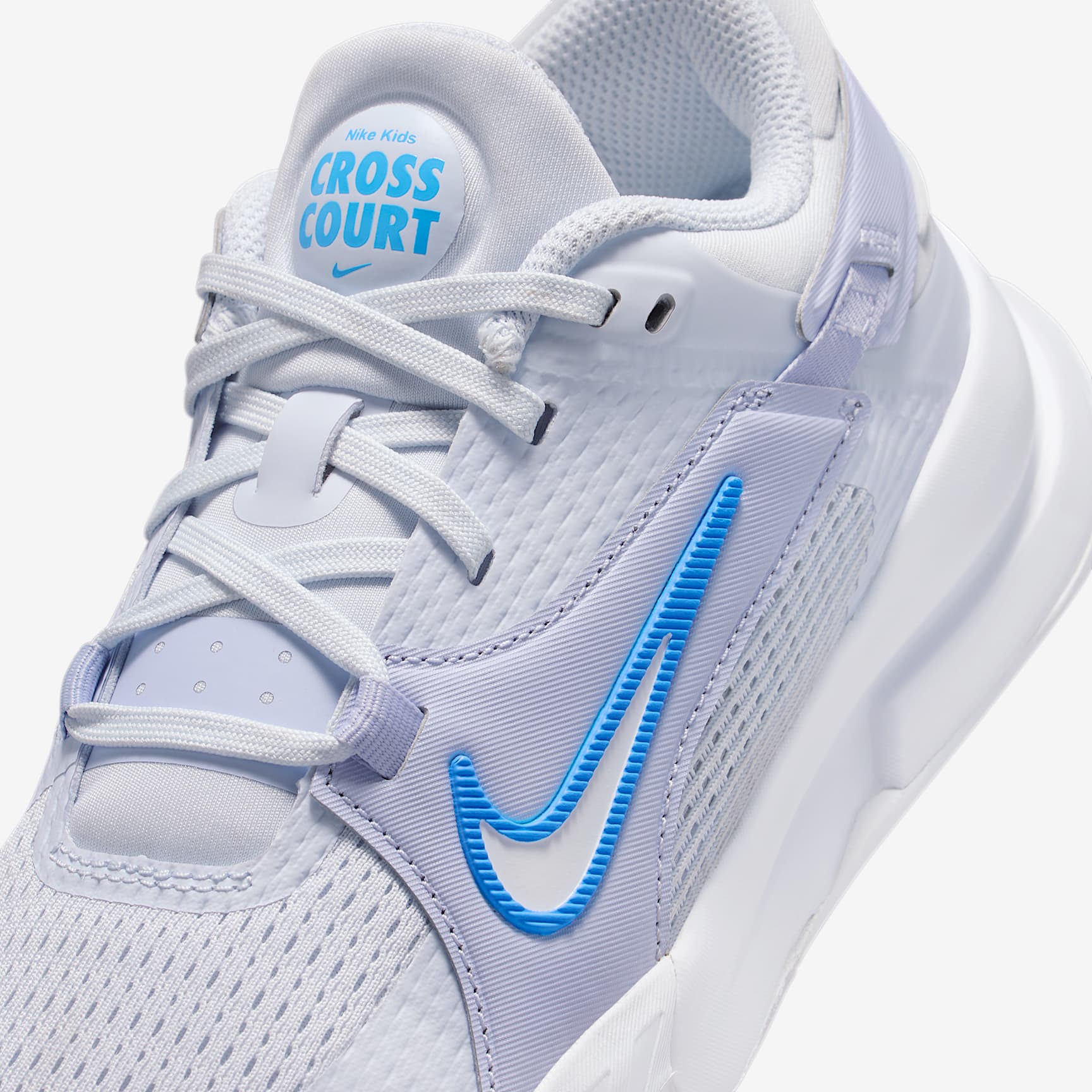 Squeak! That's the sound your shoes make when you're hustling on the court. Made specifically for indoor courts, the Nike Crosscourt uses multi-directional traction to help you stop in an instant and change direction fast. Plus, springy foam underfoot and breathable mesh up top help keep your feet cushioned and cool. Total Support Durable nylon overlays connect to the laces and act as a strap that wraps around the heel to help keep your foot contained as you move and change directions. Grip the court The rubber outsoles feature two different patterns to provide durable traction on indoor courts, helping you grip the ground so you can stop quickly and change directions fast. Stay cool The airy mesh on the upper adds breathability to help keep your feet cool and comfortable. Soft landings Foam underfoot helps cushion every step you take. Product details * Classic laces * Pull tab on heel