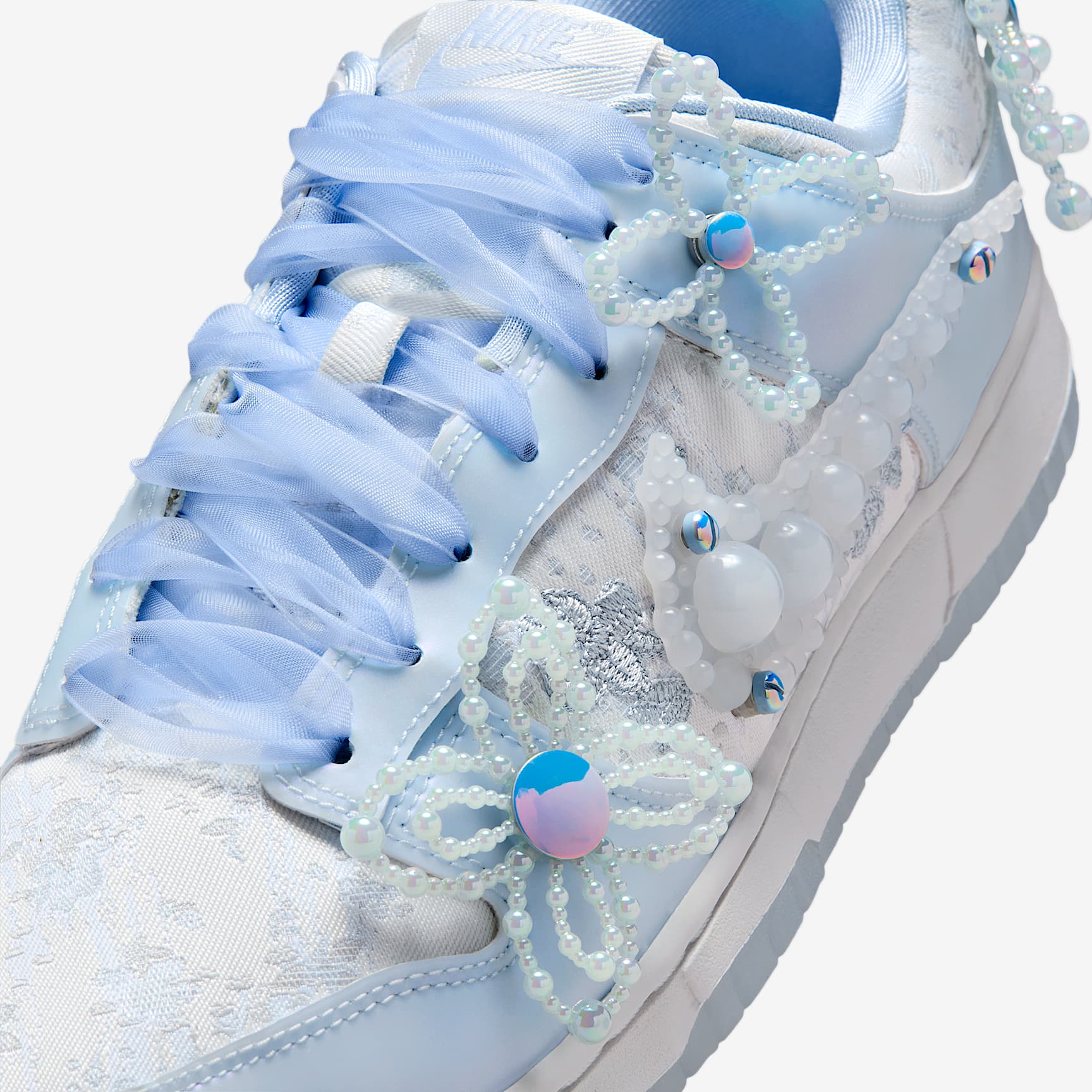 Nike and SUSAN FANG have come together to create an elegant and surprising Dunk Low, rooted in Fang's admiration for beauty and the instinctive allure of nature. Synthetic leather is mixed with jacquard textiles featuring Fang's original designs. Together, the materials create a stunning backdrop for the ethereal 3D floral embellishments, highlighting the elite craftsmanship and artisanal skill for which SUSAN FANG is known. Benefits * The synthetic leather and textile upper softens and gains vintage character with wear. * Foam midsole offers lightweight cushioning. * The rubber outsole with classic pivot circle adds durable traction and heritage style.