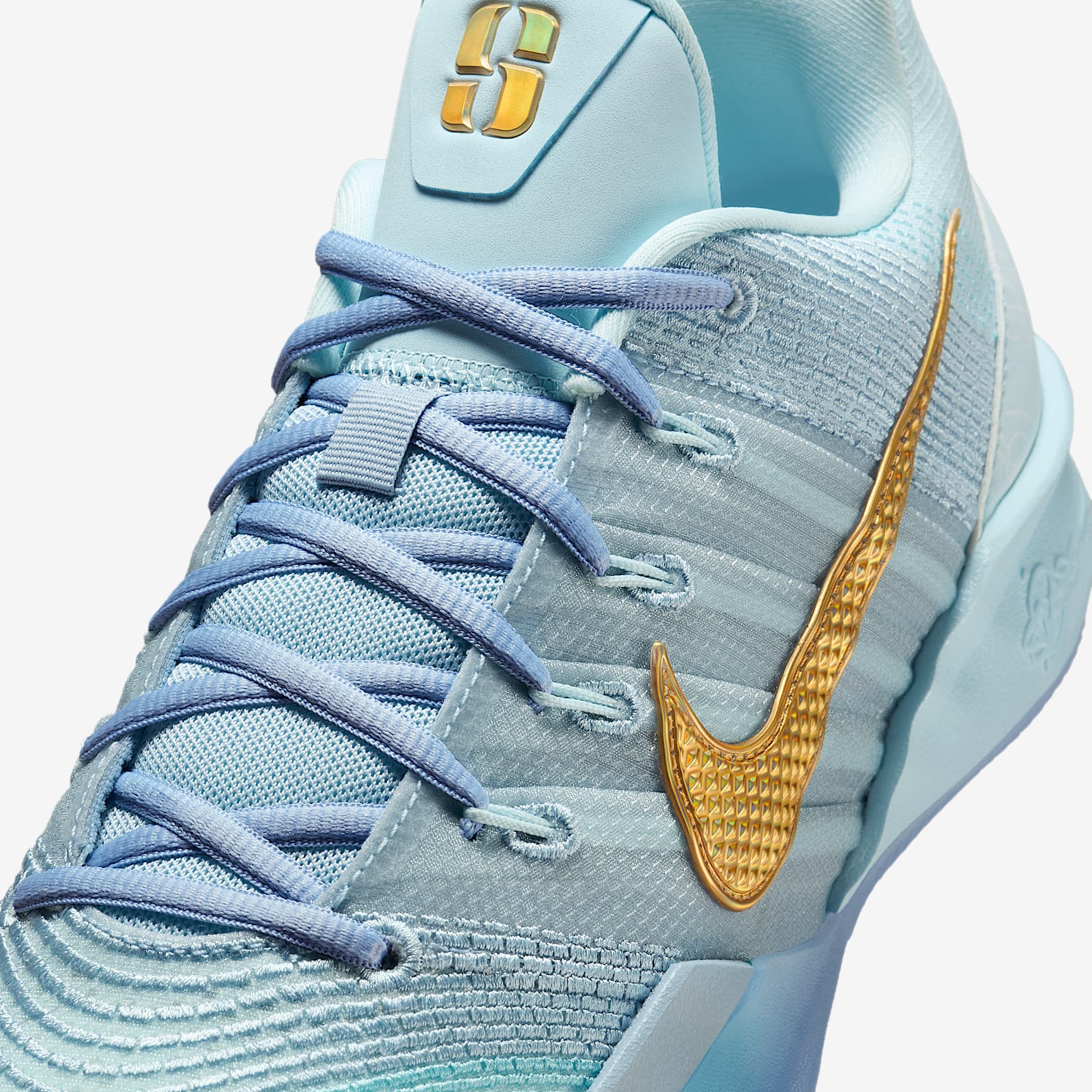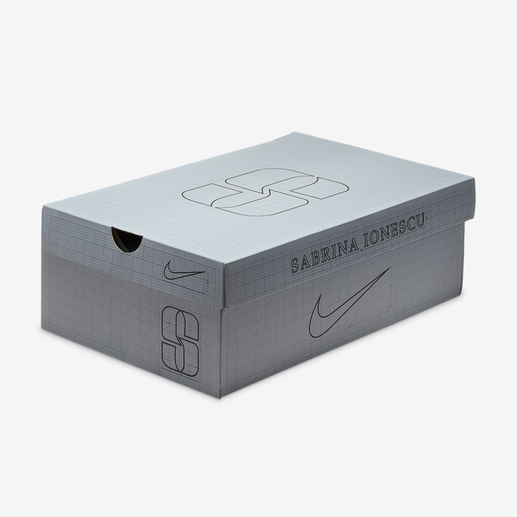 Sabrina Ionescu's pursuit of excellence requires a shoe that can keep up with both her work ethic and will to win. Enter the Sabrina 3. Its lightweight, secure upper helps keep her supported with cables, allowing her to shift, slide and step back with confidence. This Light Blue design with precise white hits speaks to Sabrina's blueprint that all hoopers can abide by. Behind the design Sabrina's keys for success? Simple. Master the fundamentals through meticulous work and then keep grinding as your game grows. The graphics of drawn-up plays and blueprint paper on the heel, the shoe box and the tissue paper in the box serve as her template for getting better. Lock in The pleats on the sides create channels that cables run through, making the shoe even stronger for optimal lock-down. The cables and pleats wrap over the midfoot to further enhance that feeling of a glove-like fit. Hit the accelerator A forefoot Air Zoom unit gives you responsive pop and speed. Feel fresh The midsole has two types of foam: Cushlon 3.0 foam gives you a plush underfoot sensation, so your feet feel fresh throughout the fourth quarter, while a firmer foam wraps around it to provide stability. The low-to-the-ground midsole helps Sabrina make quick cuts and create separation off the dribble. Keep cutting The squeaky multi-directional traction pattern helps you change direction at a moment's notice, whether you're on or off the ball. It offers great bite on the floor while maintaining ultimate court feel.