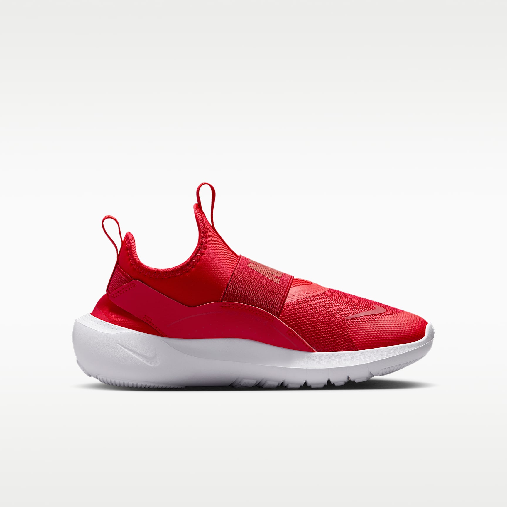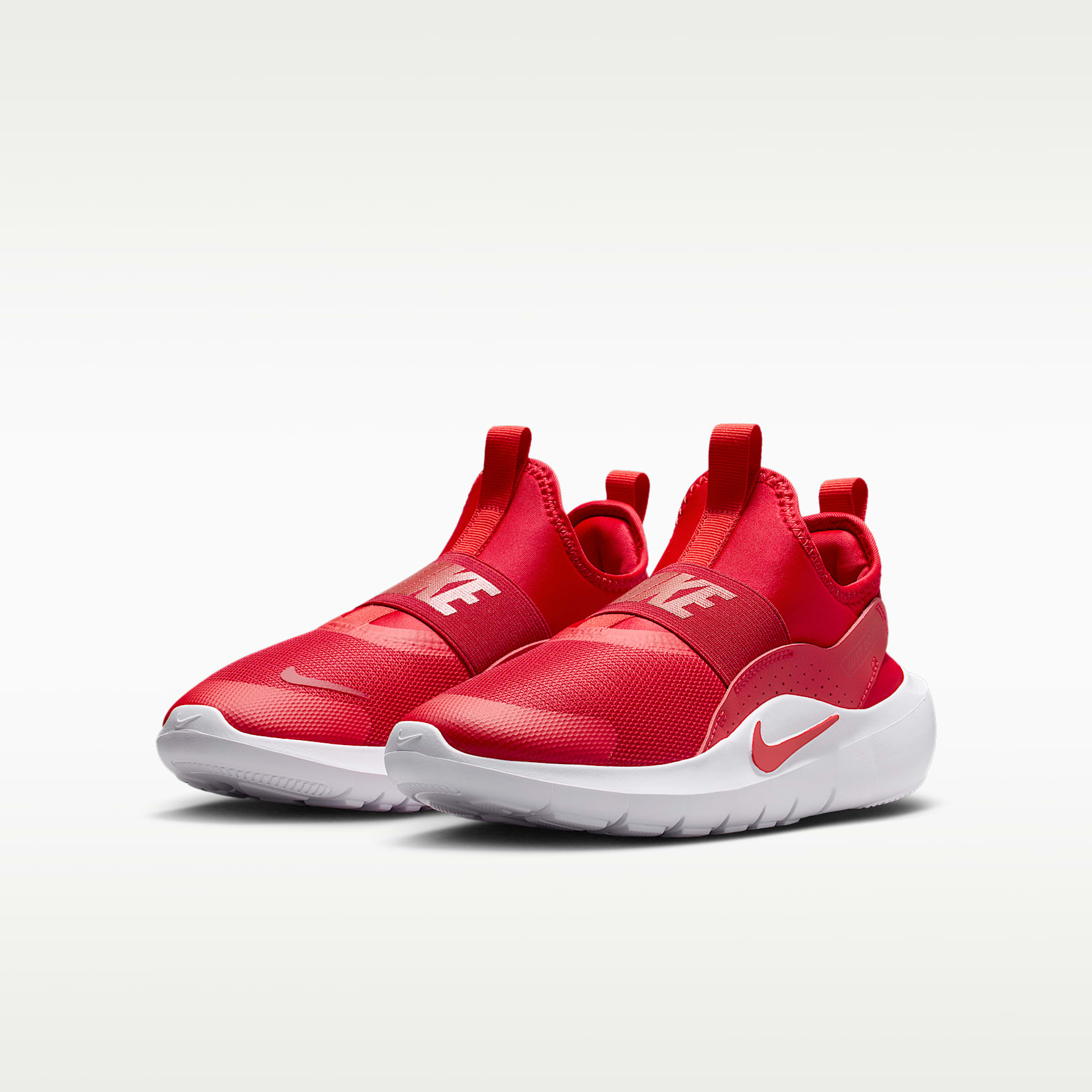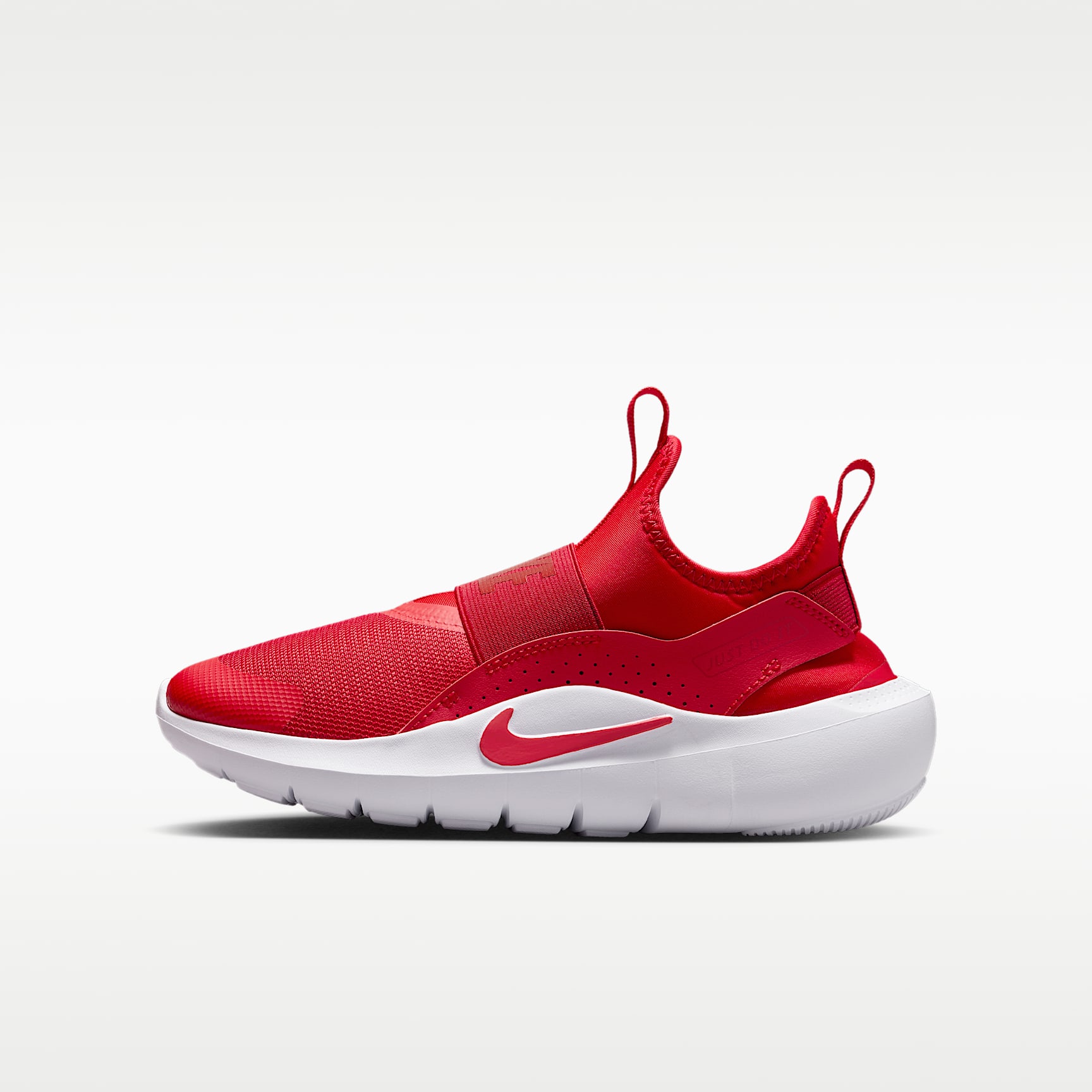With the Flex Runner 4, you're always ready to race into fun. A flexible, bootie-like design makes it easy to pull on, while stretchy straps help secure your fit. Flex grooves in the outsole let your feet move naturally, helping you find your stride. What's New You spoke and we listened. For the Flex Runner 4, we updated the fit of the midfoot strap and the collar to help make these easy to slip on and comfortable enough to wear all day. Pull on and Go Pull tabs on the heel and tongue work with a stretchy inner sleeve to help make these shoes easy to put on. Elastic straps run behind your heel and across the top of your foot to provide a snug, secure feel. Play Anywhere Flex grooves in the outsole add flexibility, helping every step feel natural. Multisurface traction works with sturdy foam that wraps around the heel to provide grip and stability when you shift directions. Durable Comfort We reinforced the toe box and used durable materials throughout to help these kicks stand up to how kids like you play. Soft, springy foam in the midsole helps cushion your every step.