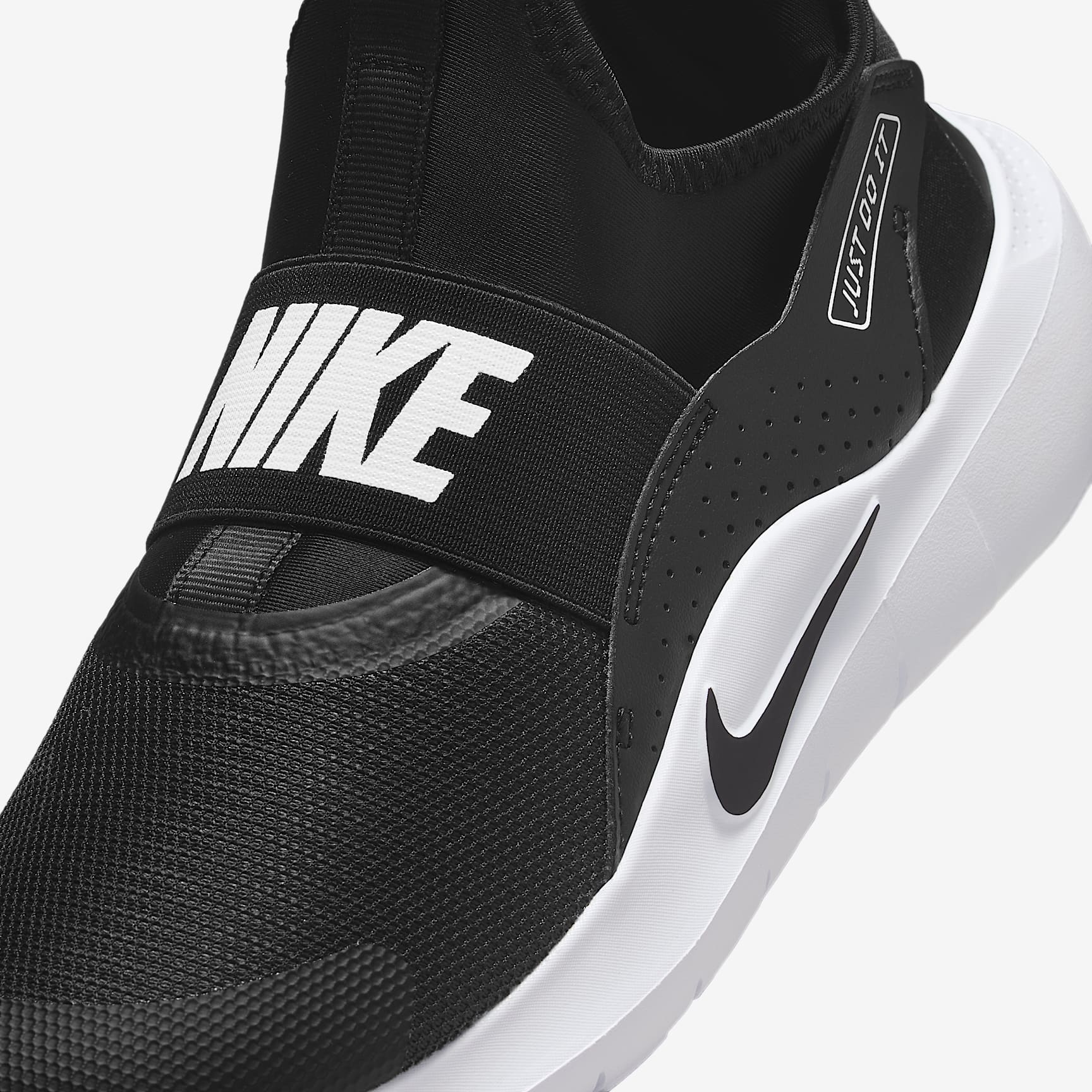 With the Flex Runner 4, you're always ready to race into fun. A flexible, bootie-like design makes it easy to pull on, while stretchy straps help secure your fit. Flex grooves in the outsole let your feet move naturally, helping you find your stride. What's new You spoke and we listened. For the Flex Runner 4, we've updated the fit of the midfoot strap and the collar to help make these easy to slip on and comfortable enough to wear all day. Pull on and go Pull tabs on the heel and tongue work with a stretchy inner sleeve to help make these shoes easy to put on. Elastic straps run behind your heel and across the top of your foot to provide a snug, secure feel. Play anywhere Flex grooves in the outsole add flexibility, helping every step feel natural. Multi-surface traction works with sturdy foam that wraps around the heel to provide grip and stability when you shift directions. Durable comfort We reinforced the toe box and used durable materials throughout to help these kicks stand up to how kids like you play. Soft, springy foam in the midsole helps cushion your every step.
