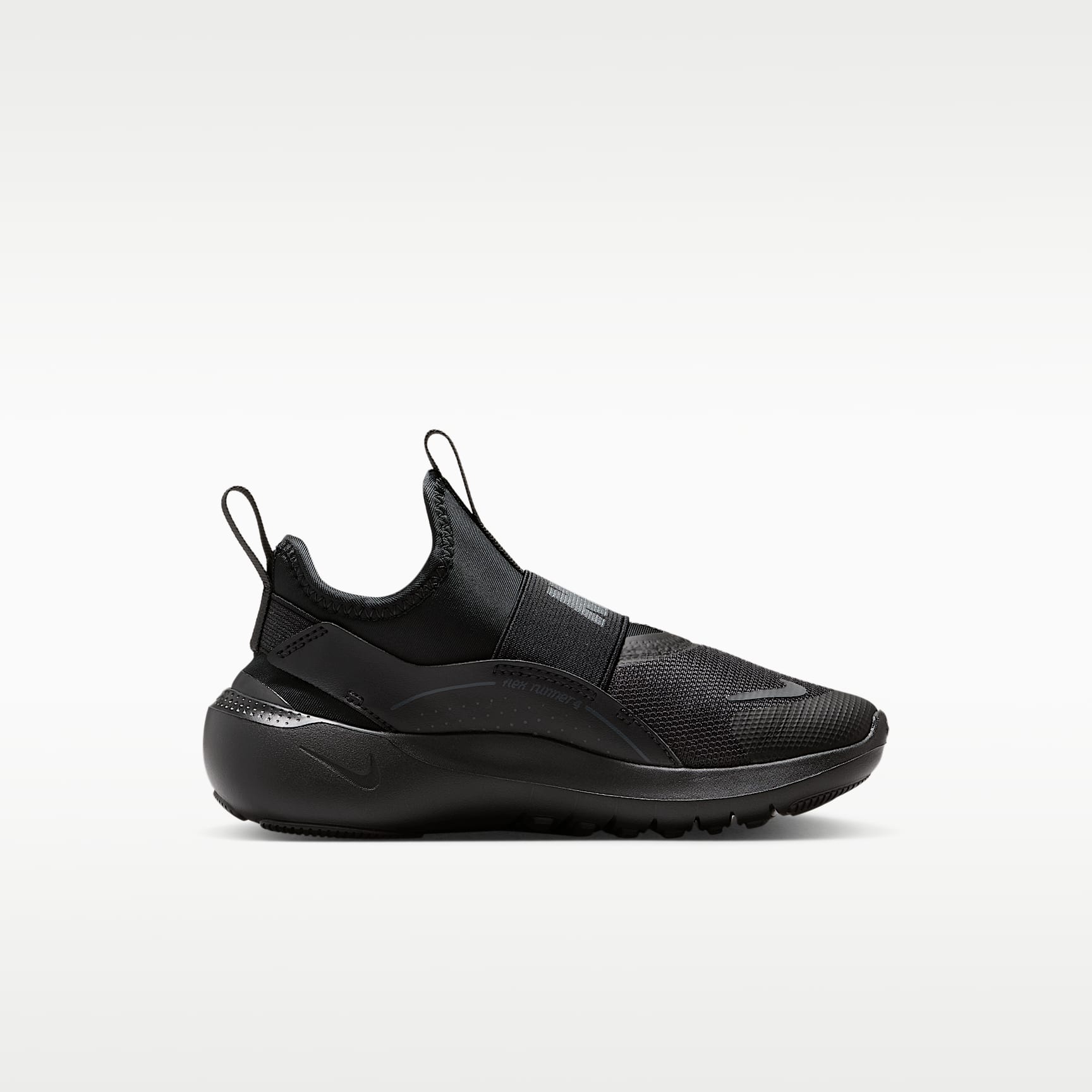 Designed for getting into fun fast, the Flex Runner 4 is made to be easy for kids to pull on. Its bootie-like design is flexible with stretchy straps that secure their fit. Flex grooves in the outsole allow little feet to move naturally, helping little ones find their footing. What's New You spoke and we listened. For the Flex Runner 4, we've updated the fit of the midfoot strap and the collar to help make these easy for kids to slip on and comfortable enough to wear all day. Pull on and go Pull tabs on the heel and tongue work with a stretchy inner sleeve to help make these shoes easy for kids to put on themselves. Elastic straps run behind the heel and across the top of the foot to provide a snug, secure feel. Play anywhere Flex grooves in the outsole add flexibility, helping every step feel natural. Multi-surface traction works with sturdy foam that wraps around the heel to provide grip and stability when kids shift directions. Durable comfort and support We reinforced the toe box and used durable materials throughout to help these kicks stand up to how kids play. Soft, springy foam in the midsole helps cushion their every step.