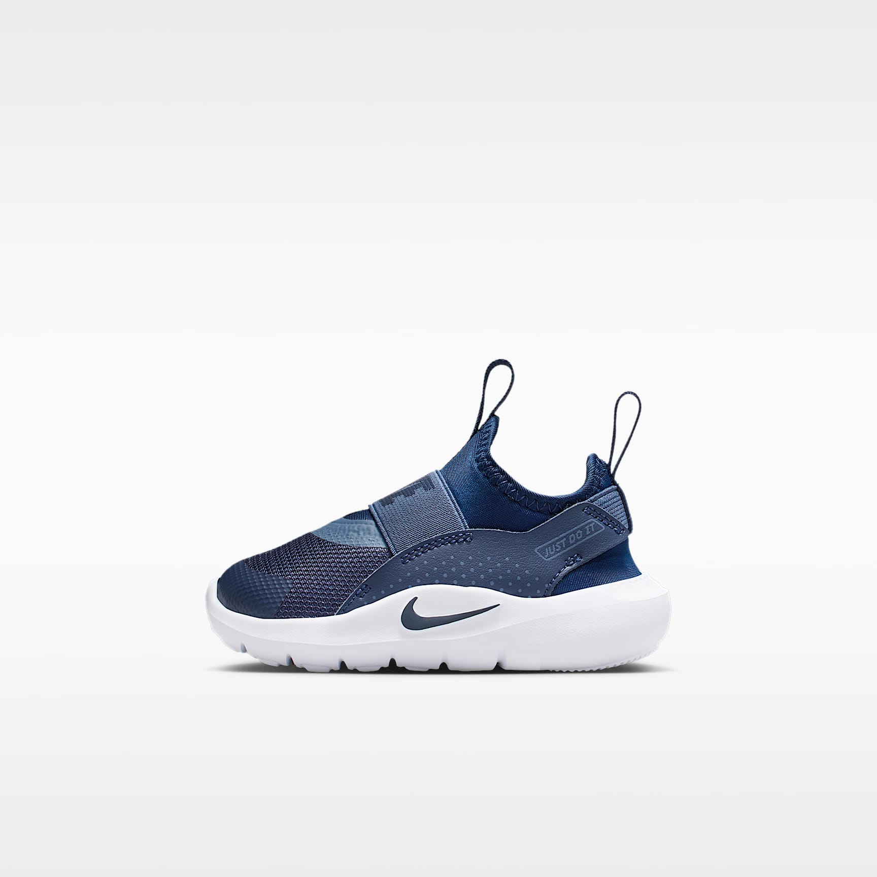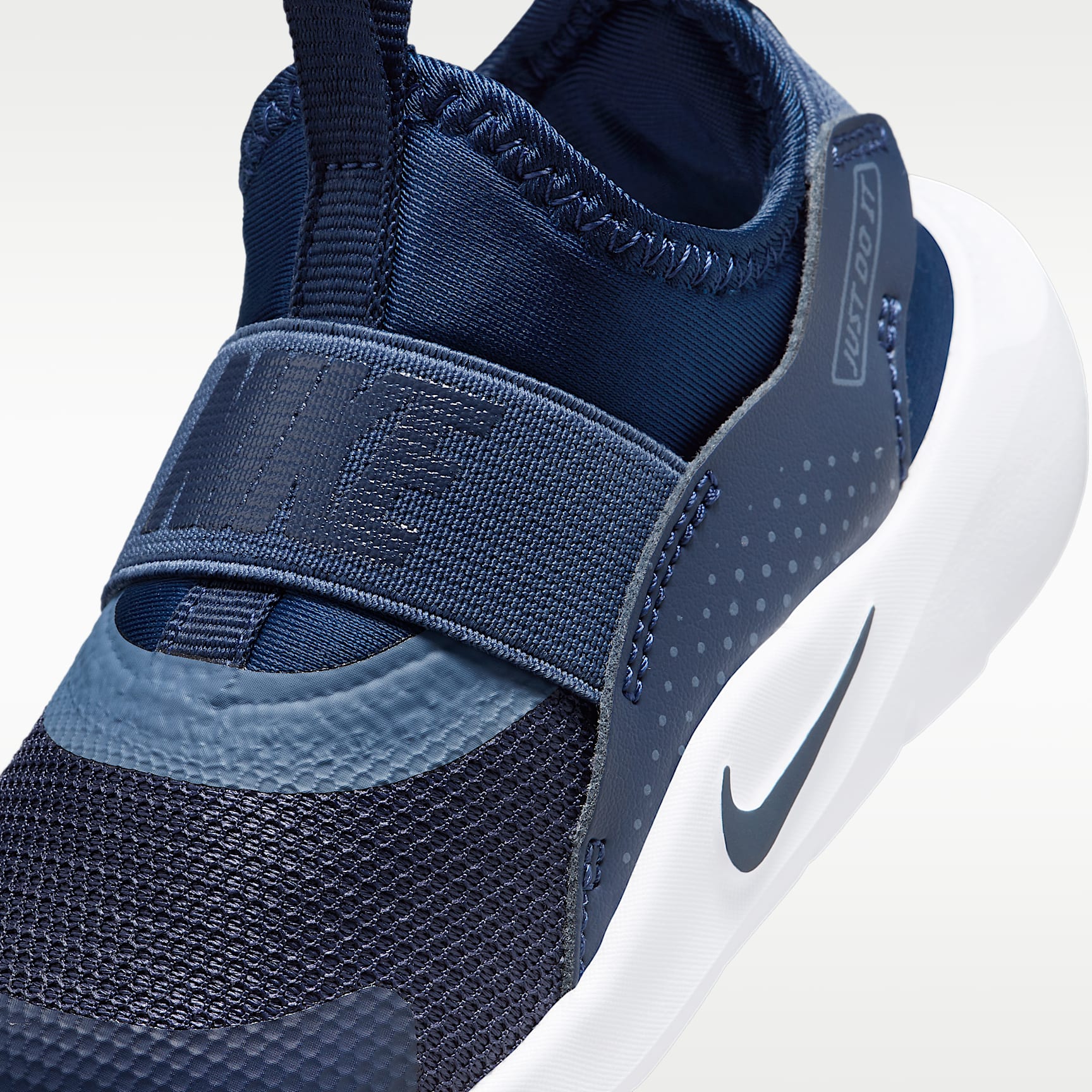 Designed for getting into fun fast, the Flex Runner 4 is easy to pull on. Its bootie-like design is flexible with stretchy straps that secure kids' fit. Flex grooves in the outsole allow little feet to move naturally, helping kiddos find their footing. What's New You spoke and we listened. For the Flex Runner 4, we updated the fit of the midfoot strap and the collar to help make these easy to slip on and comfortable enough to wear all day. Pull on and Go Pull tabs on the heel and tongue work with a stretchy inner sleeve to help make these shoes easy to put on. Elastic straps run behind the heel and across the top of the foot to give kids a snug, secure feel. Play Anywhere Flex grooves in the outsole add flexibility, helping every step feel natural. Multisurface traction works with sturdy foam that wraps around the heel to provide grip and stability when kids shift directions. Durable Comfort and Support We reinforced the toe box and used durable materials throughout to help these kicks stand up to how kids play. Soft, springy foam in the midsole helps cushion their every step.