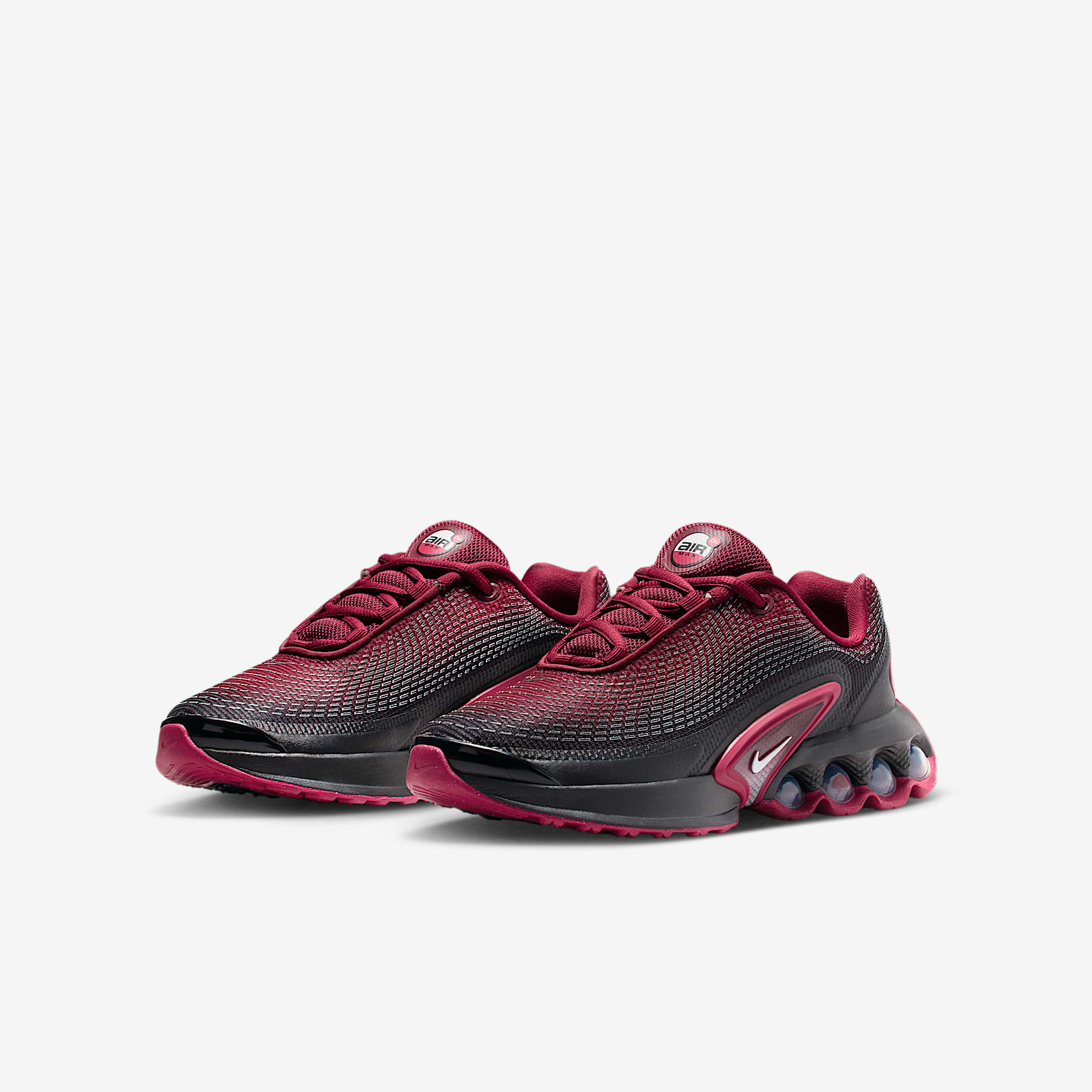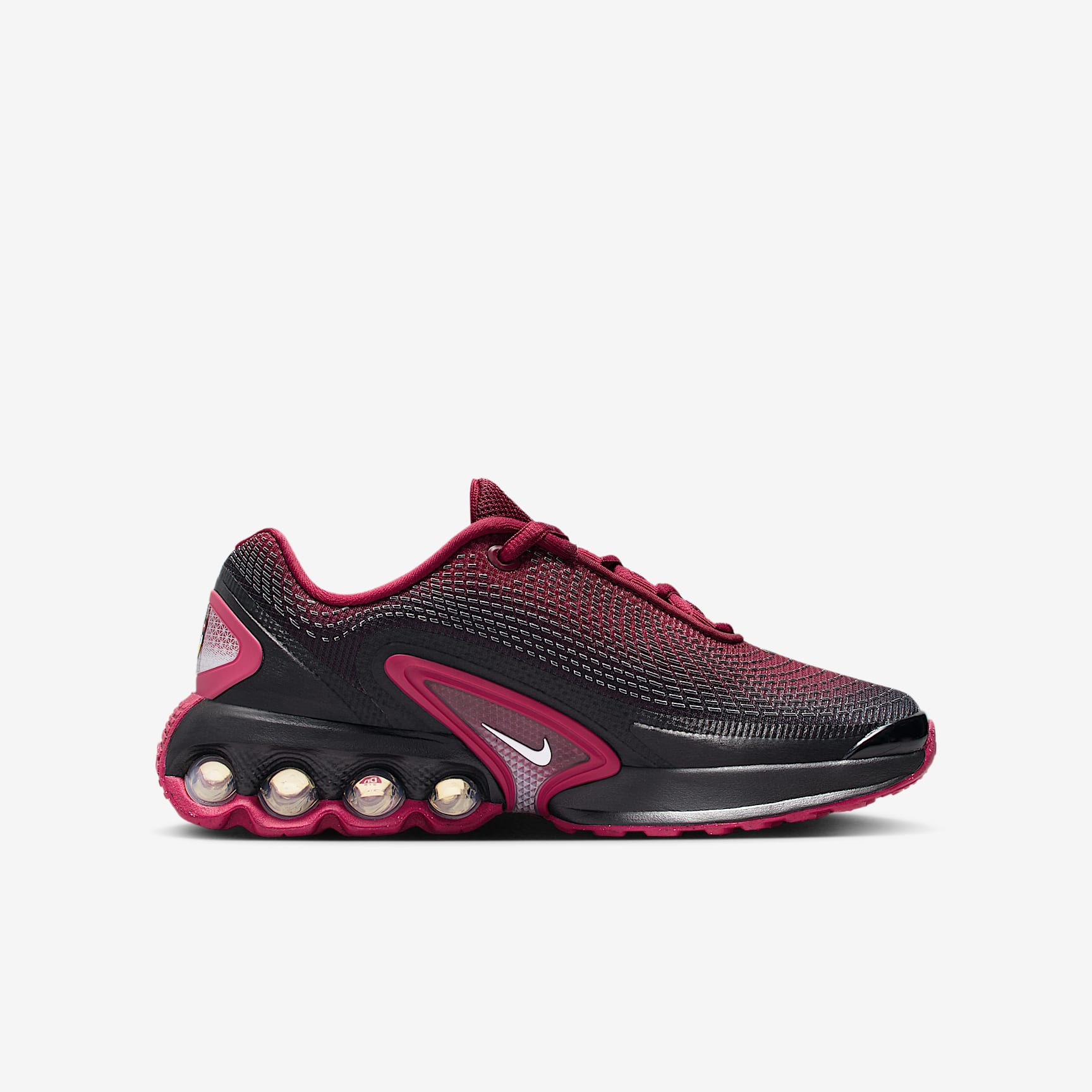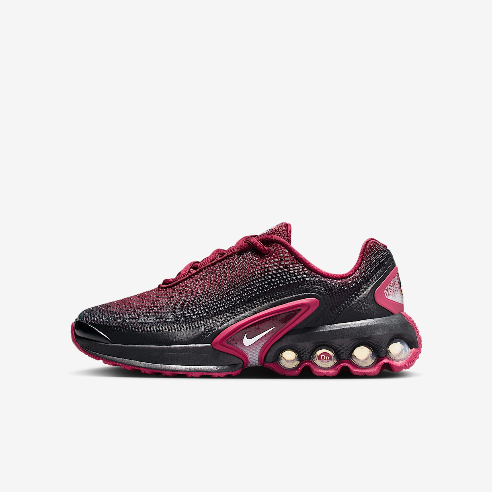 Say hello to the next generation of Air technology. The Air Max Dn features our Dynamic Air unit system of dual-pressure tubes, creating a bouncy sensation with every step. The result is a futuristic design that's comfortable enough to wear all day. Go ahead—Feel The Unreal. Maxxed Out motion Our Dynamic Air unit system features two sets of dual-pressure tubes. With the firmest amount of pressure in the heel and the softest amount of pressure towards your midfoot, the air levels shift within each set for a smooth transition as you step. Maxxed Out comfort The multi-layered mesh on the upper is lightweight and breathable. A dimensional print adds a fun textured look. Plush foam surrounds our Dynamic Air unit system to create uniquely soft support. Maxxed Out energy Providing comfort from top to bottom, these sneakers boast performance-level bounce to energise your every move. After all, who said going to a concert isn't a sport? Product details * Foam midsole * Rubber outsole * Matt accents Nike Air Max Origins Revolutionary Air technology first made its way into Nike footwear in 1978. In 1987, the Air Max 1 debuted with visible Air technology in its heel, allowing fans more than just the feel of Air cushioning—suddenly they could see it. Since then, next-generation Air Max shoes have become a hit with athletes and collectors by offering striking colour combinations and reliable, lightweight cushioning.