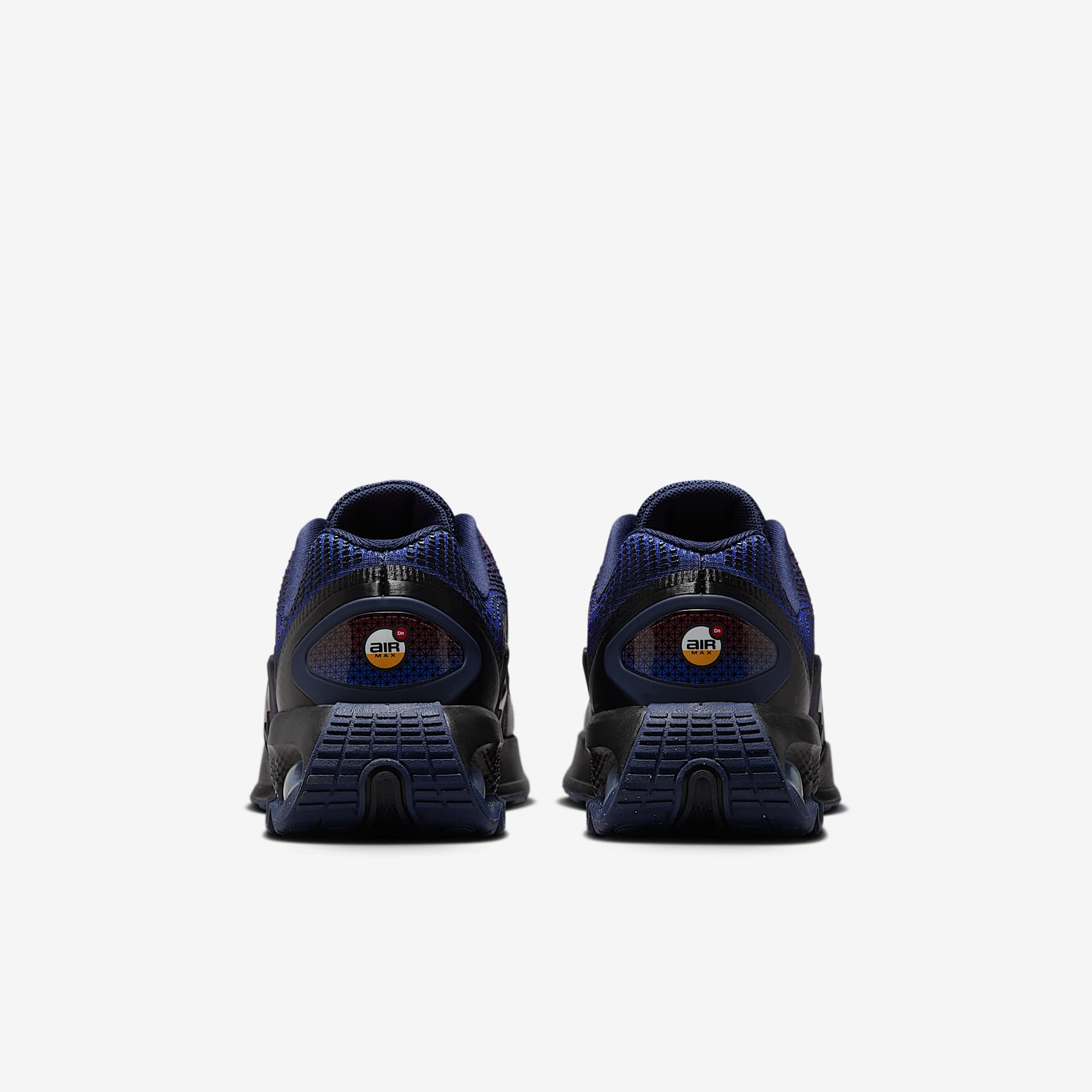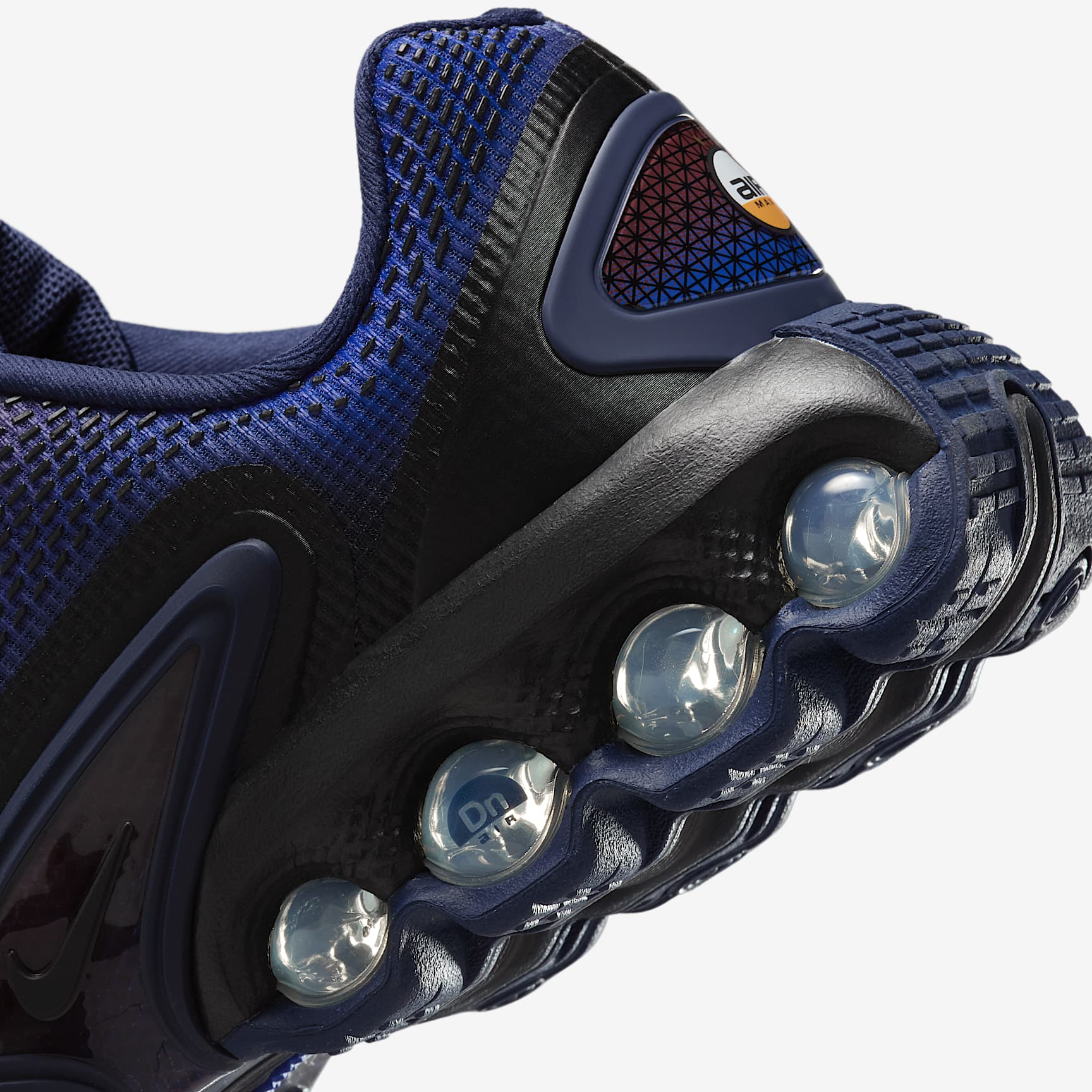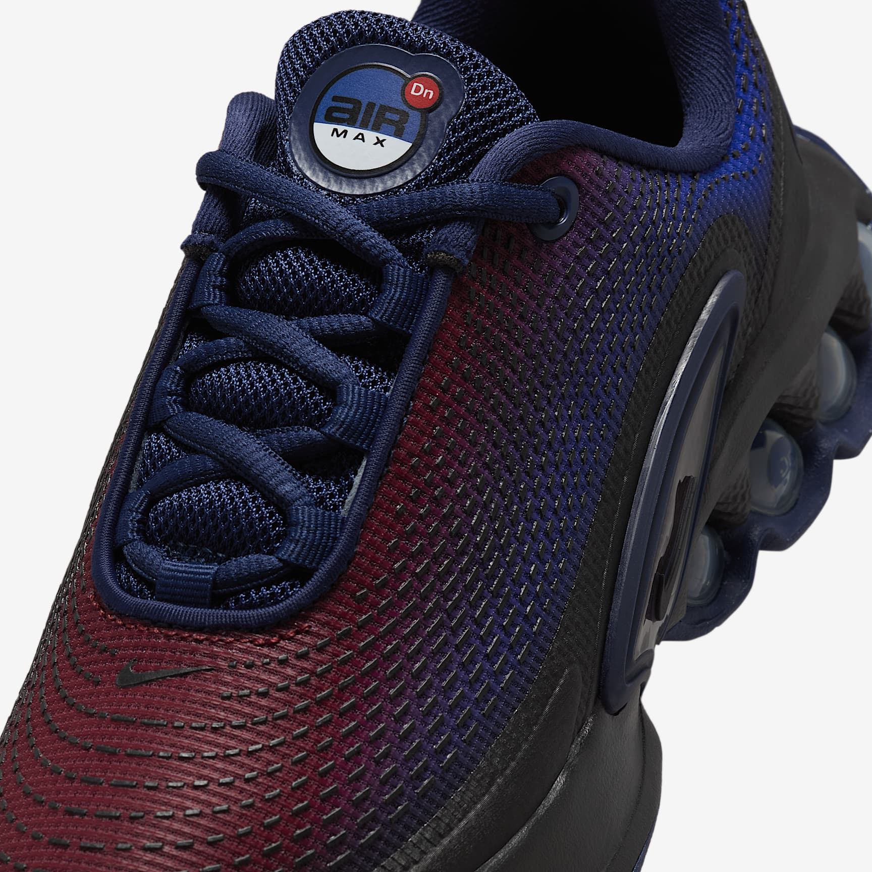 Say hello to the next generation of Air technology. The Air Max Dn features our Dynamic Air unit system of dual-pressure tubes, creating a bouncy sensation with every step. The result is a futuristic design that's comfortable enough to wear all day. Go ahead—Feel The Unreal. Maxxed Out motion Our Dynamic Air unit system features two sets of dual-pressure tubes. With the firmest amount of pressure in the heel and the softest amount of pressure towards your midfoot, the air levels shift within each set for a smooth transition as you step. Maxxed Out comfort The multi-layered mesh on the upper is lightweight and breathable. A dimensional print adds a fun textured look. Plush foam surrounds our Dynamic Air unit system to create uniquely soft support. Maxxed Out energy Providing comfort from top to bottom, these sneakers boast performance-level bounce to energise your every move. After all, who said going to a concert isn't a sport? Product details * Foam midsole * Rubber outsole * Matt accents