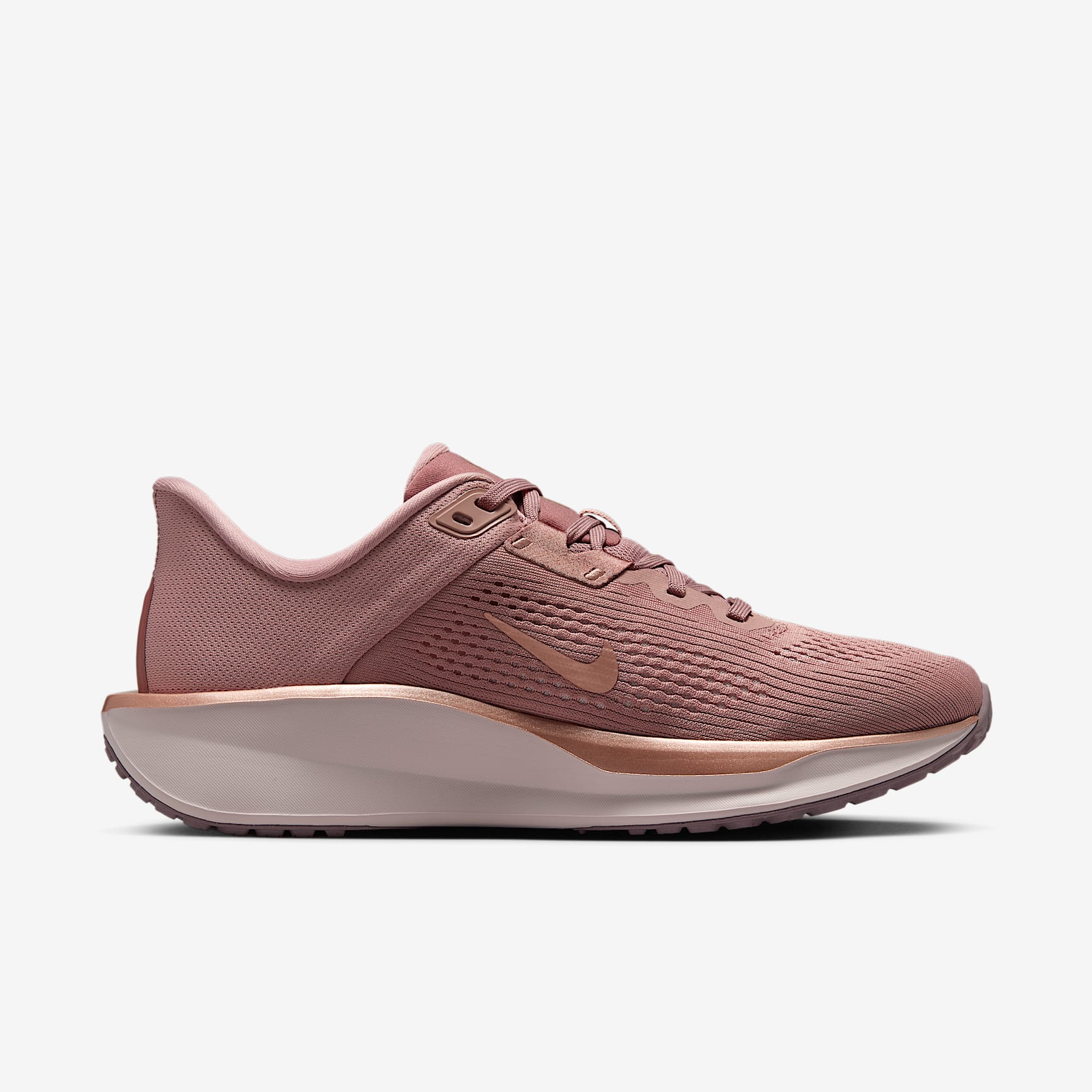 A high foam stack and secure fit for your everyday miles. The Nike Quest 6 is for runners of all levels. But make no mistake, it's anything but entry-level. A supercomfortable and supportive midfoot fit band helps keep you stable for your miles. Plus, a supersoft midsole foam helps cushion each step. Secure Fit Midfoot fit band helps keep your foot more secure the tighter your laces are. Softer, More Responsive Increased midsole height means a softer and more responsive ride compared to the Quest 5. Grippy Traction Rubber outsole has the traction to help keep your feet gripped to the pavement. Product Details * Weight: Approx. 247g/8.7oz (Women’s US 8) * Heel-to-toe drop: 10mm