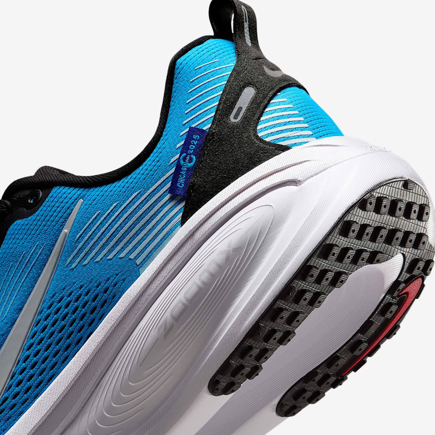 Maximum cushioning in the Nike Vomero 18 provides a comfortable ride for everyday runs. Experience optimal comfort with lightweight ZoomX foam stacked on top of responsive ReactX foam in the midsole. And a redesigned traction pattern offers a smooth heel-to-toe transition. Engineered Mesh Upper The upper is made of engineered mesh, which offers soft breathability. Dual-Density Midsole Our dual-density midsole sports ZoomX foam stacked on top of ReactX foam, 13% more responsive than previous React technology, for a comfortable ride. Podular Outsole We placed pods around the outsole to help enhance agility and smoother heel-to-toe transitions. Plush Tongue A plush tongue and lining give you a comfortably snug feel. What's New? Newly stacked foam midsole with premium ZoomX on top of ReactX foam amplifies cushioned comfort. Product Details * Weight: Approx. 325 g/11.5 oz (Men's US 10) * Heel-to-toe drop: 10 mm * MR-10 Last - Our best, most consistent fit * Reflective details * Not intended for use as Personal Protective Equipment (PPE)