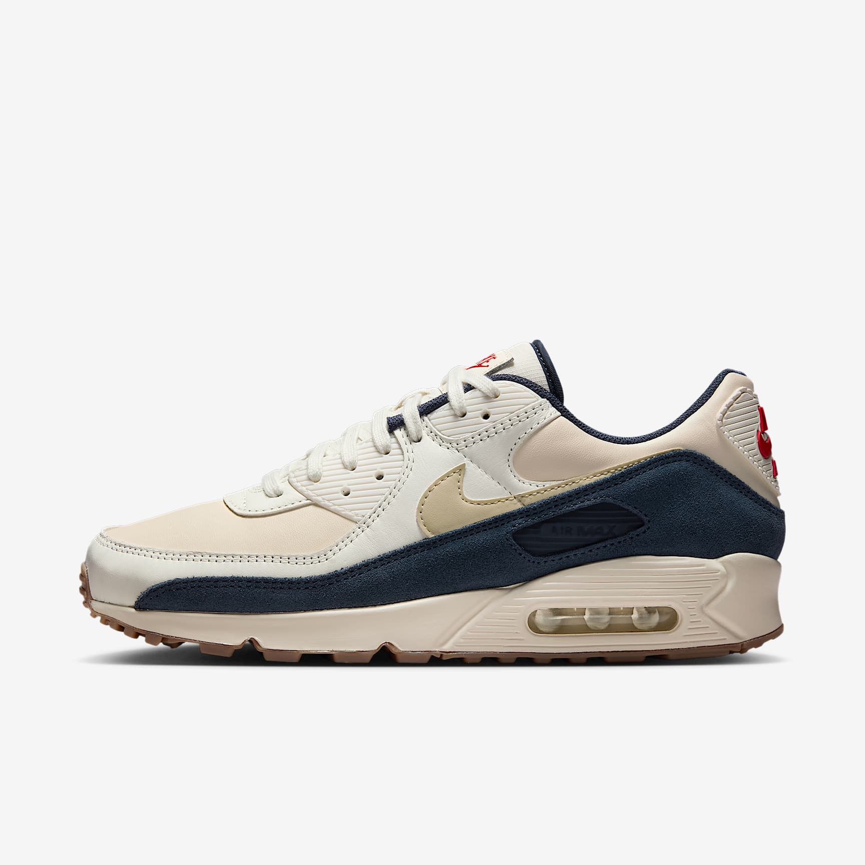 Elevated by premium leather, these Air Max 90's stay true to their running roots with the iconic Waffle sole and textured accents for that classic '90s look. Finished with easy-to-style colours, the visible cushioning adds comfort to your journey. Benefits * Premium-leather upper with synthetic overlays creates a layered look that lasts. * Nike Air technology absorbs impact for cushioning with every step. * Rubber Waffle outsole delivers durable traction and heritage style. Product details * Padded collar * Foam midsole
