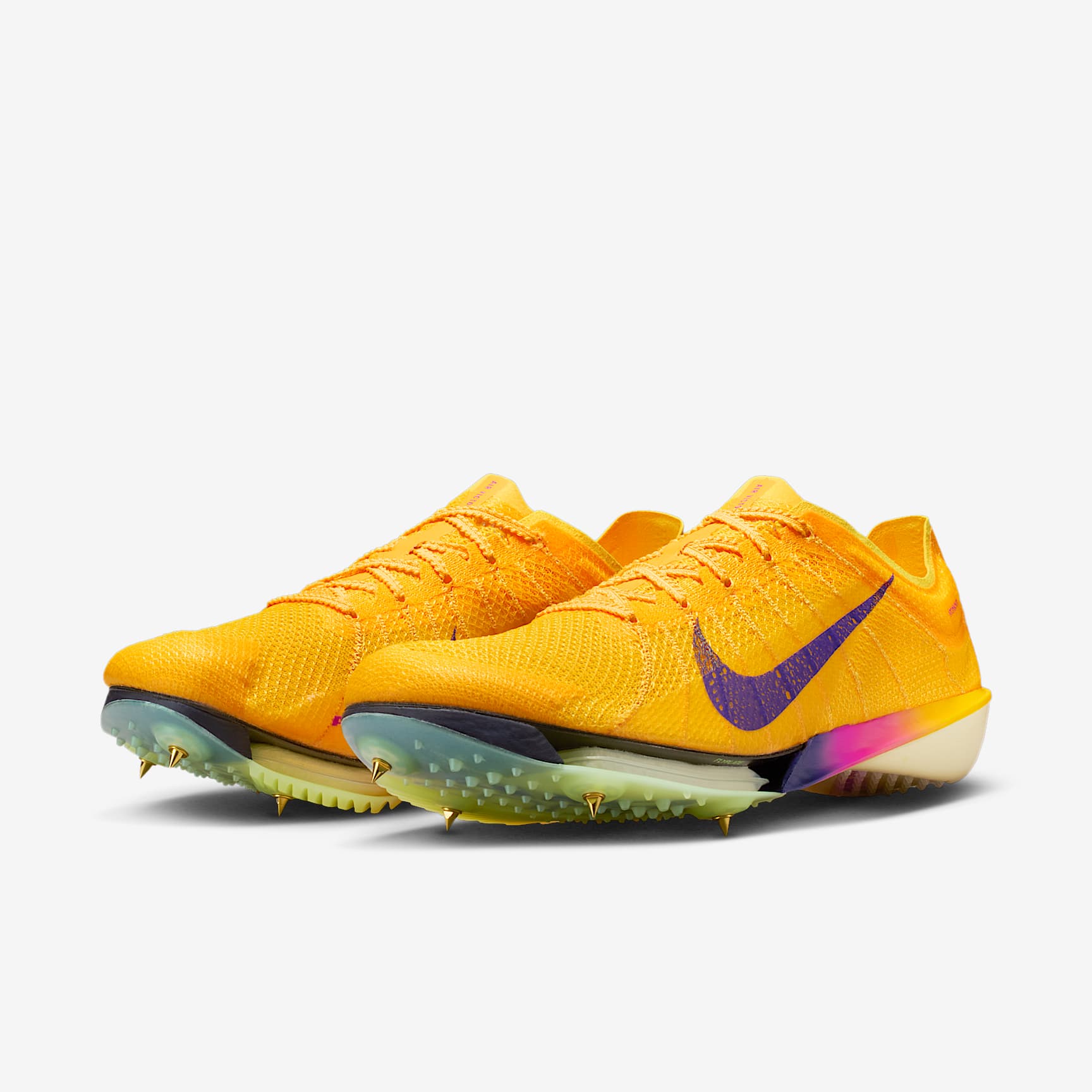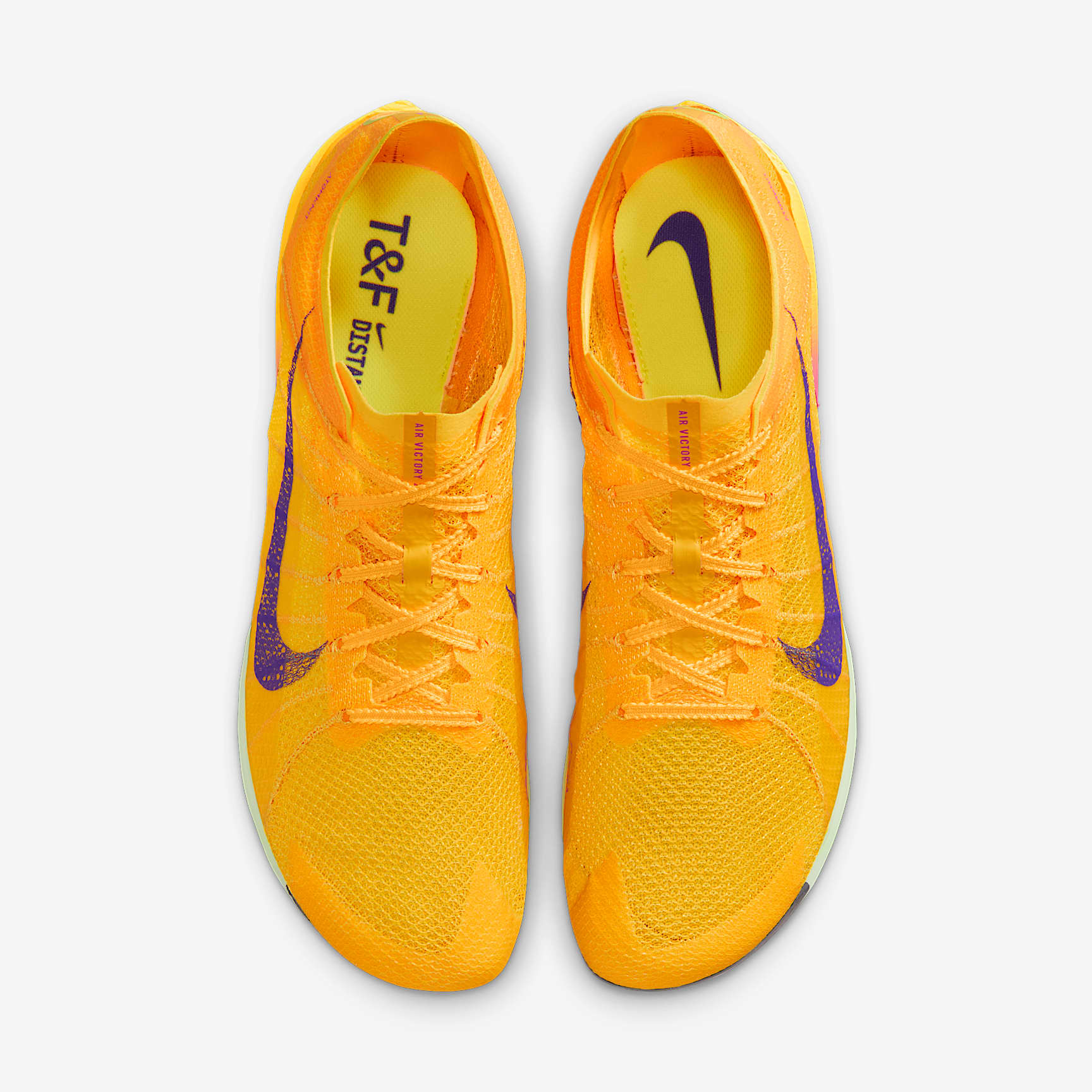 Carbon fiber, Air Zoom unit, ZoomX foam help push your speed. The Victory 2 is tested and validated by the best middle-distance runners sprinting the planet. It sports every speed component you need to smash records, from a carbon fiber Flyplate to Air Zoom unit to a lightweight, responsive ZoomX midsole. Atomknit on the upper and midfoot containment cables combine with a supportive base that delivers improved stability and control of the shoe, especially around the turns. Zoom, Zoom The forefoot Air Zoom unit has two chambers to give you a propulsive feel and stability from takeoff to the tape. Stable for Straightaways Focused on helping keep you stable, the supportive base creates a wider flat area compared to the original Victory on the bottom of the plate. We removed two spikes seen on the original in favor of a four-spike design. And we elevated the big-toe side platform to help the spikes feel more stable on the straightaways and especially around the turns. Built for Speed The full-length carbon fiber Flyplate is tuned to match the base of the support system. Its shape and stiffness give a propulsive feel to help keep you on your toes and minimize deceleration. The new plate material is lighter and more responsive than the previous version. It also improves the durability of the outer traction plate. Lightweight Upper Atomknit, an updated version of Flyknit, has a lightweight, contoured fit and enhanced breathability. It works with a new knit structure and midfoot containment cables to give you an ultralightweight upper.