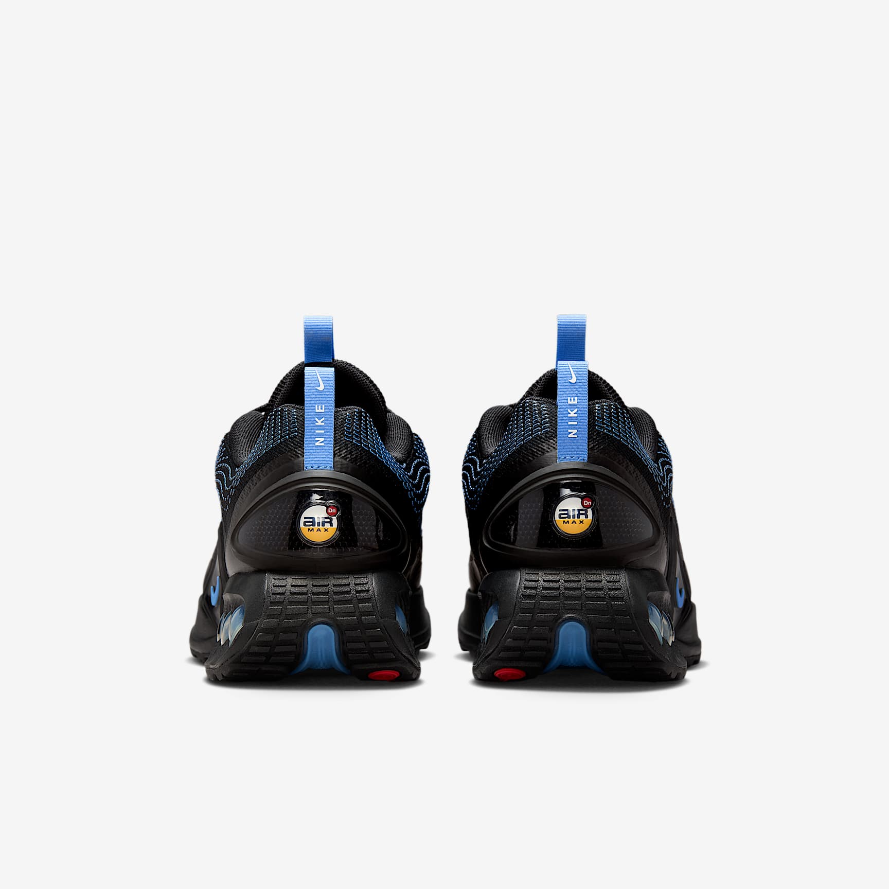 Say hello to the next generation of Air technology. The Air Max Dn features our Dynamic Air unit system of dual-pressure tubes, creating a reactive sensation with every step. This results in a futuristic design that's comfortable enough to wear from day to night. Go ahead—Feel The Unreal. Maxxed Out Motion Our Dynamic Air unit system features 2 sets of dual-pressure tubes. With the firmest amount of pressure in the heel and the softest amount of pressure towards your midfoot, the air levels shift within each set for a smooth transition as you step. Maxxed Out Comfort The multi-layered mesh on the upper feels lightweight and breathable, with a haptic print for a textured look. Plush foam surrounds the cushioning system for an enhanced feel that's uniquely soft and supportive. Maxxed Out Energy Providing comfort from top to bottom, this tactile design boasts performance-level bounce to energise your every move. After all, who said going to a concert isn't a sport? Product details * Matt accents * Foam midsole * Rubber outsole * Not intended for use as personal protective equipment (PPE) Nike Air Max Origins Revolutionary Air technology first made its way into Nike footwear in 1978. In 1987, the Air Max 1 debuted with visible Air technology in its heel, allowing fans more than just the feel of Air cushioning—suddenly they could see it. Since then, next-generation Air Max shoes have become a hit with athletes and collectors by offering striking colour combinations and reliable, lightweight cushioning.
