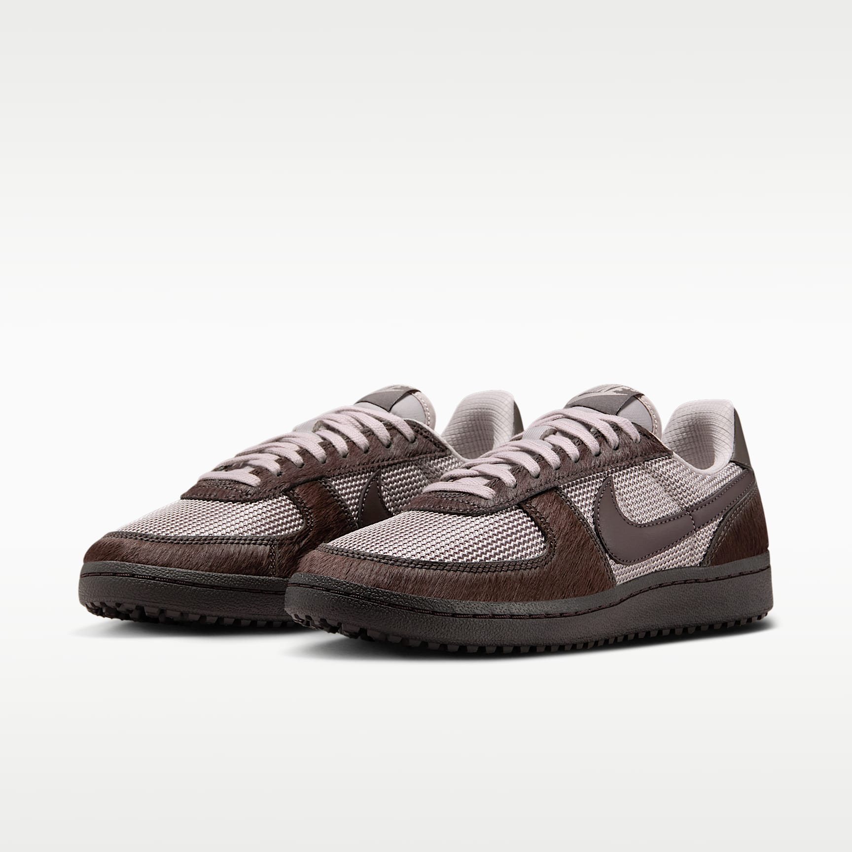 The Field General returns from its gritty American football roots to shake up the sneaker scene. This edition pairs faux fur leather overlays and a textile upper with a nubby Waffle sole to create a unique vintage gridiron look. Benefits * The real and synthetic leather upper creates a retro look that's built to last. * Soft foam underfoot adds lightweight cushioning. * The rubber Waffle outsole provides great grip, while a full cupsole stitch adds durability. Product details * Leather Swoosh logo * Padded collar