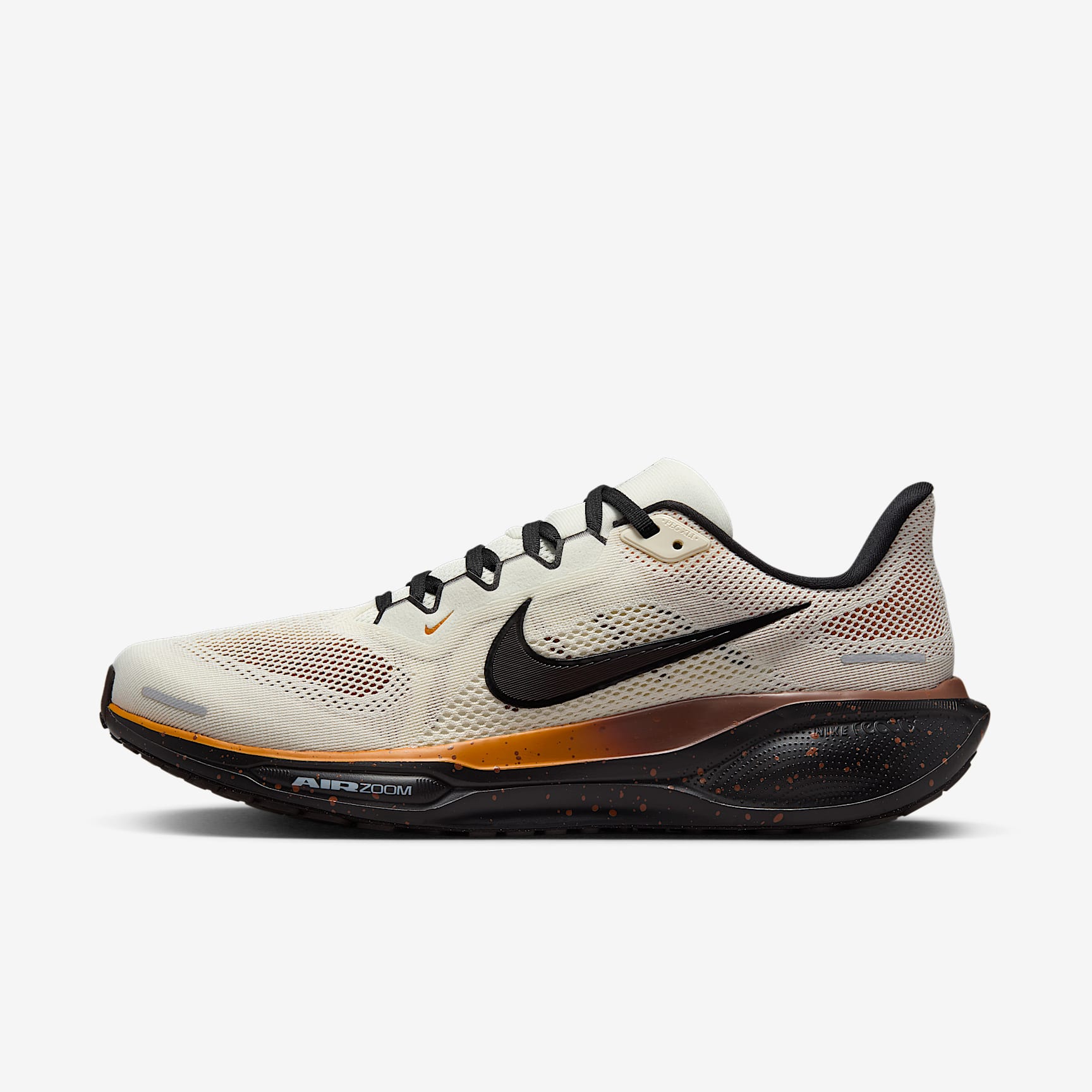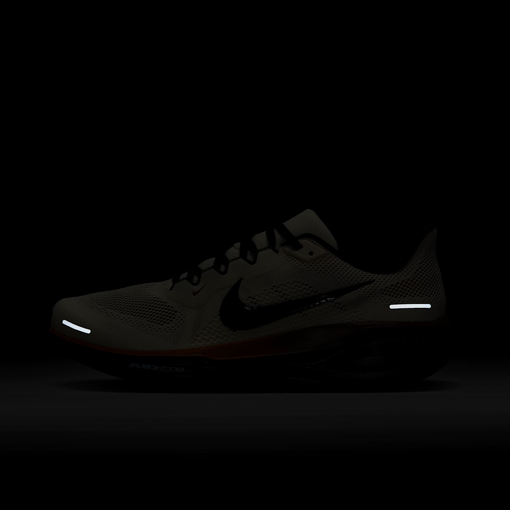 Responsive cushioning in the Pegasus provides an energised ride for everyday road running. Experience lighter-weight energy return with dual Air Zoom units and a ReactX foam midsole. Improved engineered mesh on the upper decreases weight and increases breathability. Springy cushioning We paired Nike ReactX foam with two Air Zoom units (one in the forefoot and one in the heel) to give you a bouncy, springy sensation and an energised feel at toe-off. Waffle-inspired traction Signature waffle-inspired rubber outsole provides traction and flexibility. Plush collar A plush collar, tongue and soft sockliner for a secure and comfortable fit What's new? * The ReactX foam midsole is 13% more responsive than previous React technology. * The engineered mesh upper is lighter and more breathable than the Pegasus 40. Product details * Weight: approx. 297g (men's size 9) * Heel-to-toe drop: 10mm * MR-10 last—our best, most consistent fit (same as Pegasus 40) * Reflective design details * Not intended for use as personal protective equipment (PPE)