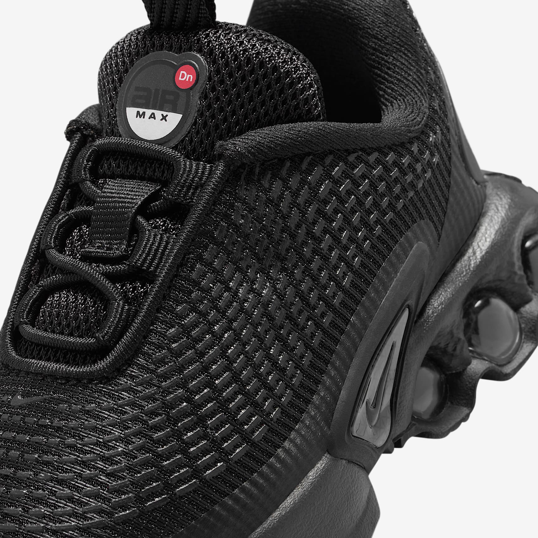 Introduce your little one to the next generation of Air technology. Designed to feel bouncy underfoot, the Air Max Dn features dynamic Air units for a futuristic design that's comfortable enough to wear all day. Plus, the elastic laces help make them easy to get on squirming feet. Maxxed Out motion Nike Air units help cushion every step your little one takes, adding bounce to their day. Maxxed Out comfort Multilayered mesh on the upper is lightweight and breathable, with a dimensional print that adds a fun textured look. Plus, plush foam creates a soft and supportive feeling underfoot. Maxxed Out energy Providing comfort from top to bottom, the design of this sneaker boasts performance-level bounce to energise your little one's every move. Product details * Elastic laces * Rubber outsole