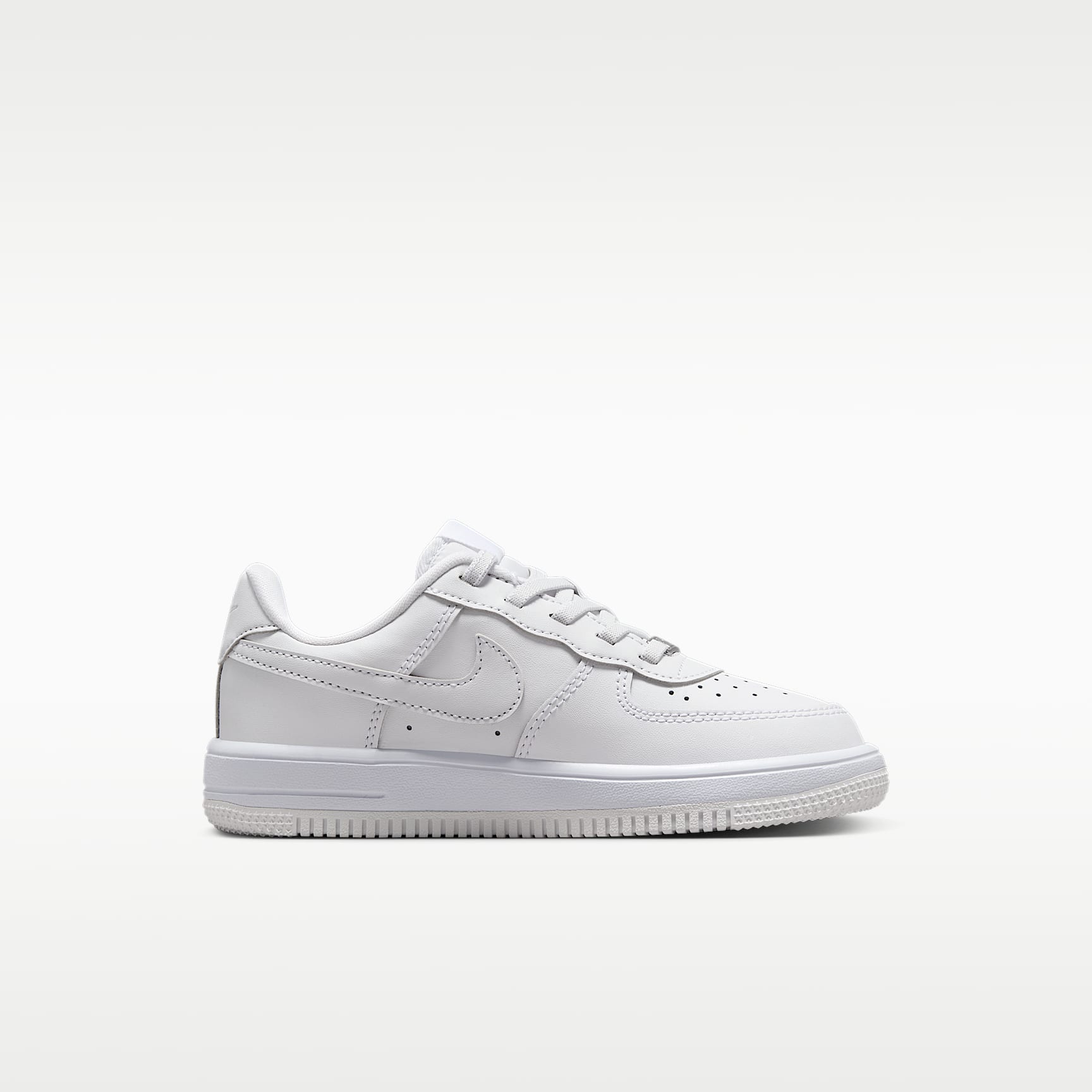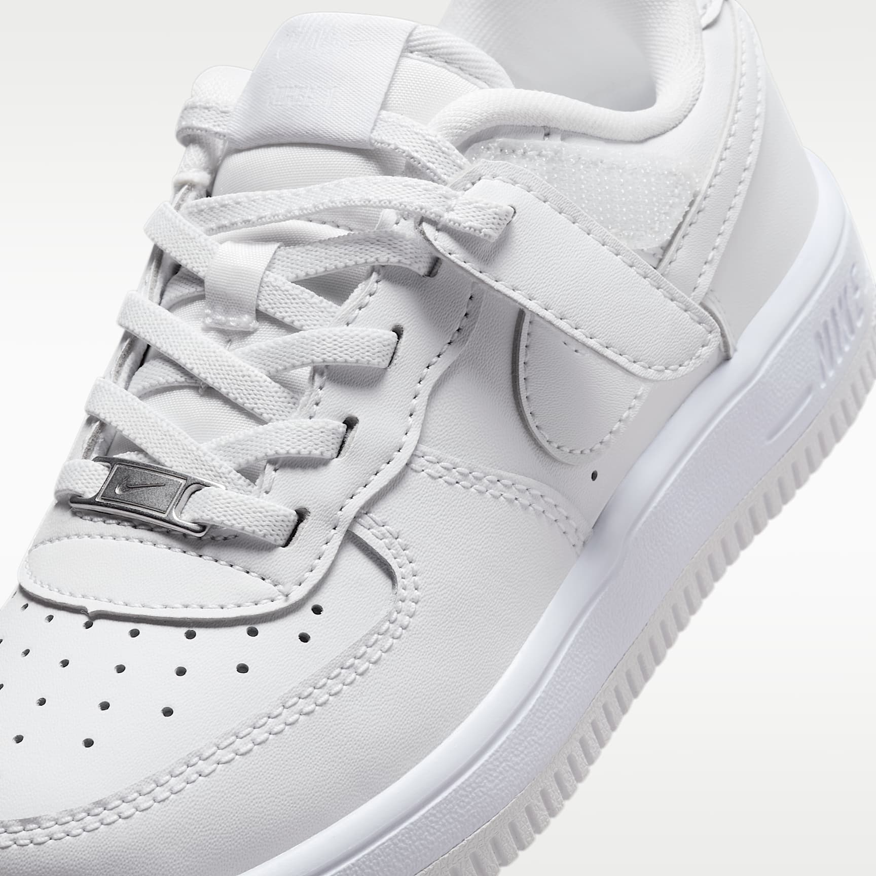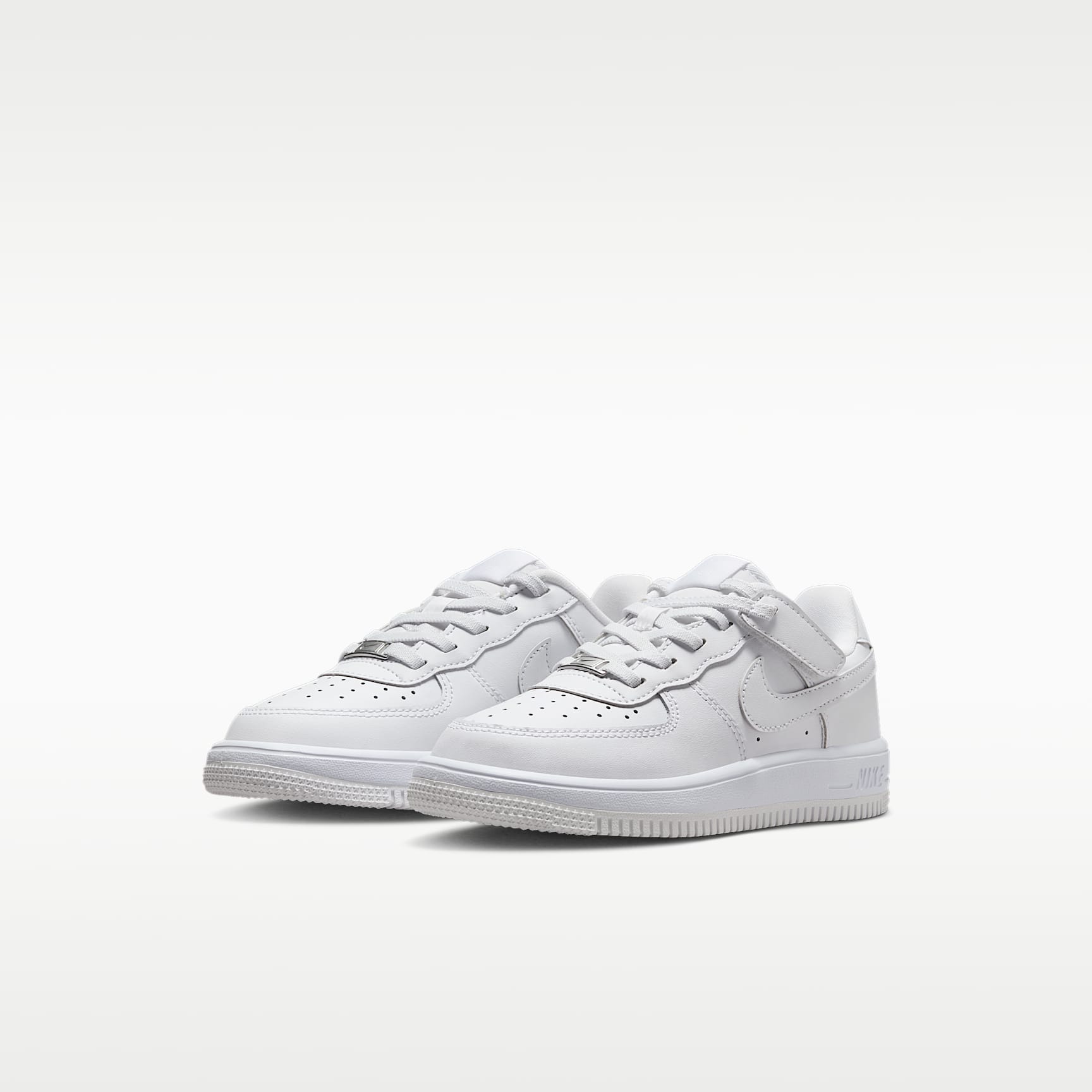 Get out the door fast without struggling with shoelaces. The top lace loops on these sneakers are attached to hook-and-loop straps, helping kids secure their fit fast while still enjoying classic AF-1 style. Benefits * Our helpful Nike EasyOn features empower kids to do it themselves so they can focus on what matters most: play. * Elastic laces and a hook-and-loop strap make these shoes easy to get on and off. * Real and synthetic leather offers durability and structure. * The soft foam in the midsole helps cushion every step. * A rubber outsole adds durable traction with a circular tread pattern originally designed to help basketball players pivot on the court. Product details * Elastic laces * Perforations on the toe