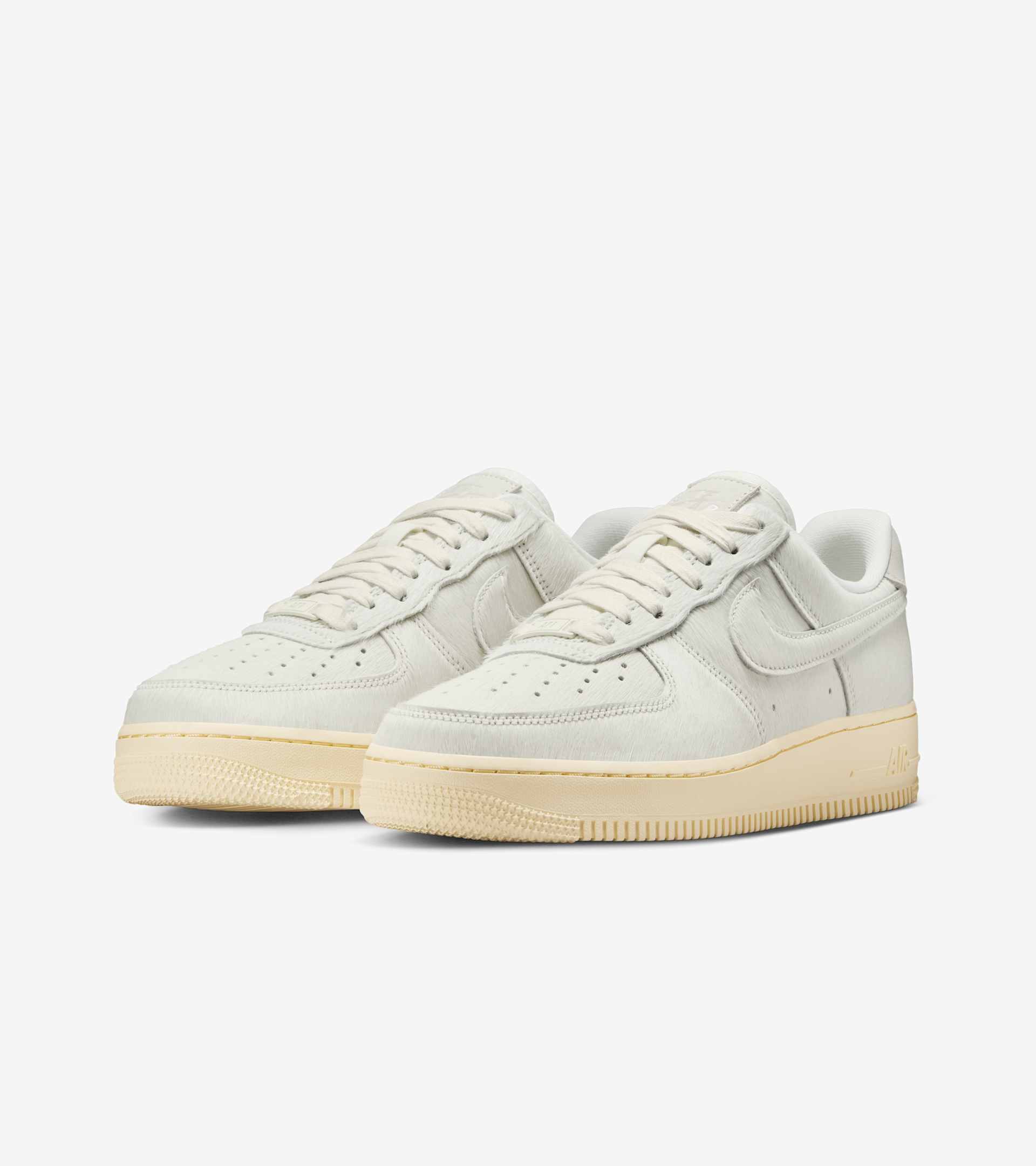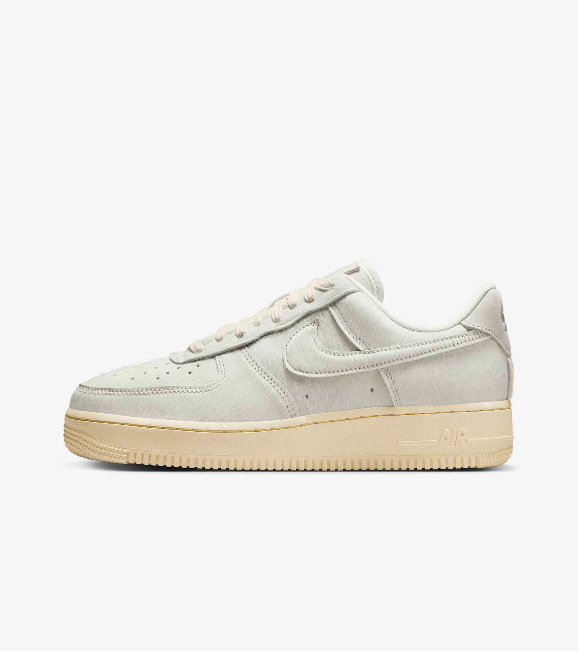 The legendary AF1 gets a luxe pony hair overhaul. The soft, hair-on leather adds depth and texture throughout the reimagined design, creating a new expression for the '82 hoops-turned-streetwear icon. The padded, low-cut collar and Nike Air cushioning keep its comfort as classic as ever. Waxed laces and debossed branding elevate the finish. The Sail colourway features a Muslin midsole and outsole for a clean, neutral look that's easy to style—and hard to resist. SKU: II7398-100