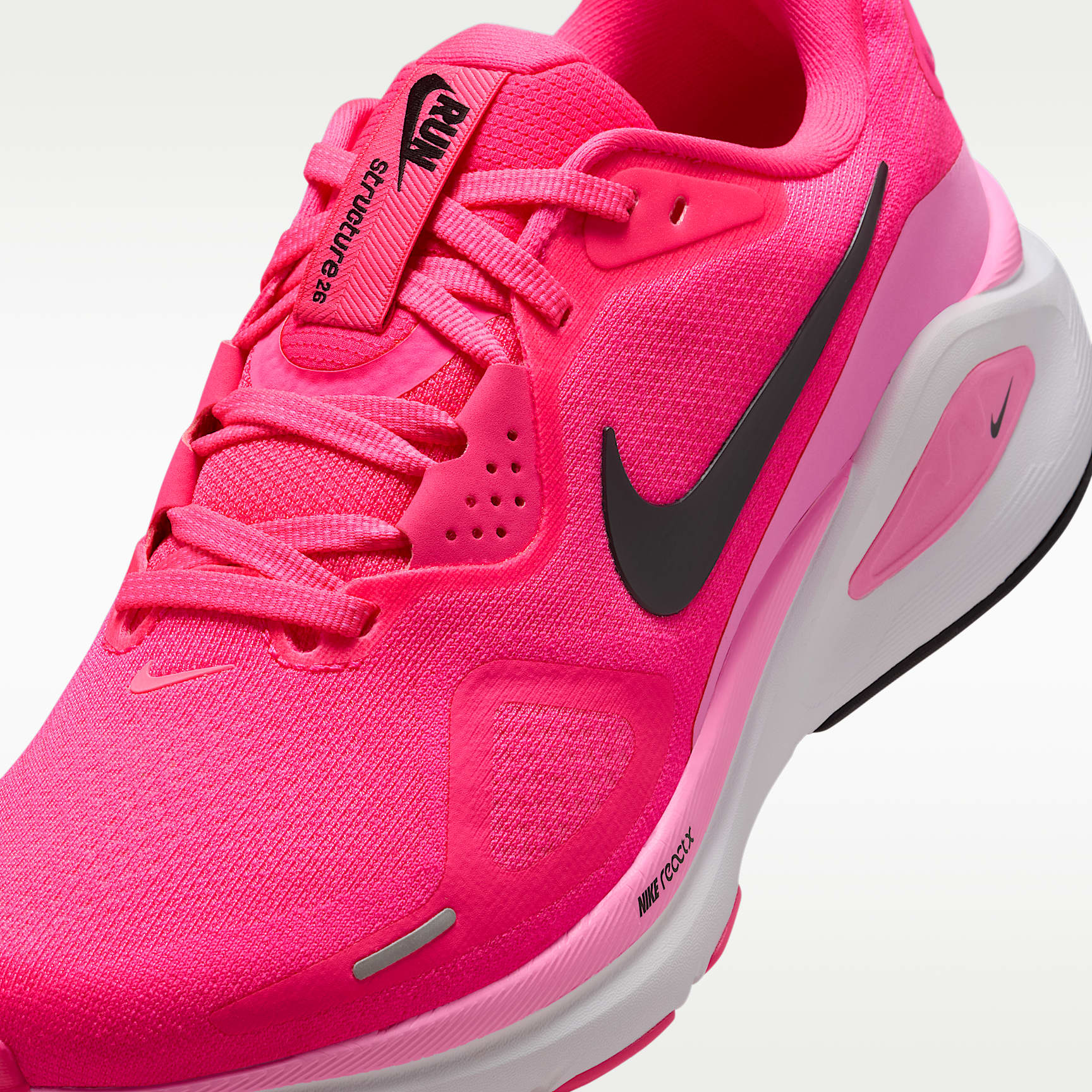 Full-length foam plus arch support equals our most steady ride. Supportive cushioning in the Structure 26 provides steadiness for everyday runs. A full-length ReactX midsole delivers a cushioned, yet stable transition from heel to toe off. Plus, a tried-and-true midfoot support system wraps around your arch and heel to provide a firm platform. Plush Upper The plush collar and tongue, along with the engineered mesh upper, provide comfort, support and an improved fit. Midfoot Support Our midfoot support system helps to slow the rate of ankle eversion and provides a stable platform for transition and toe-off. ReactX Foam The full-length ReactX midsole delivers cushion, comfort and increased energy return. It's 13% more responsive than previous React technology. What's New? * ReactX foam underfoot and higher stack height for stability and support * Lighter, more flexible rubber in forefoot of outsole for cushioning * High-abrasion rubber in heel for increased durability Product Details * Weight: Approx. 262g/9.2oz (Women’s US 8) * Heel-to-toe drop: 10mm * Reflective details * Not intended for use as Personal Protective Equipment (PPE)