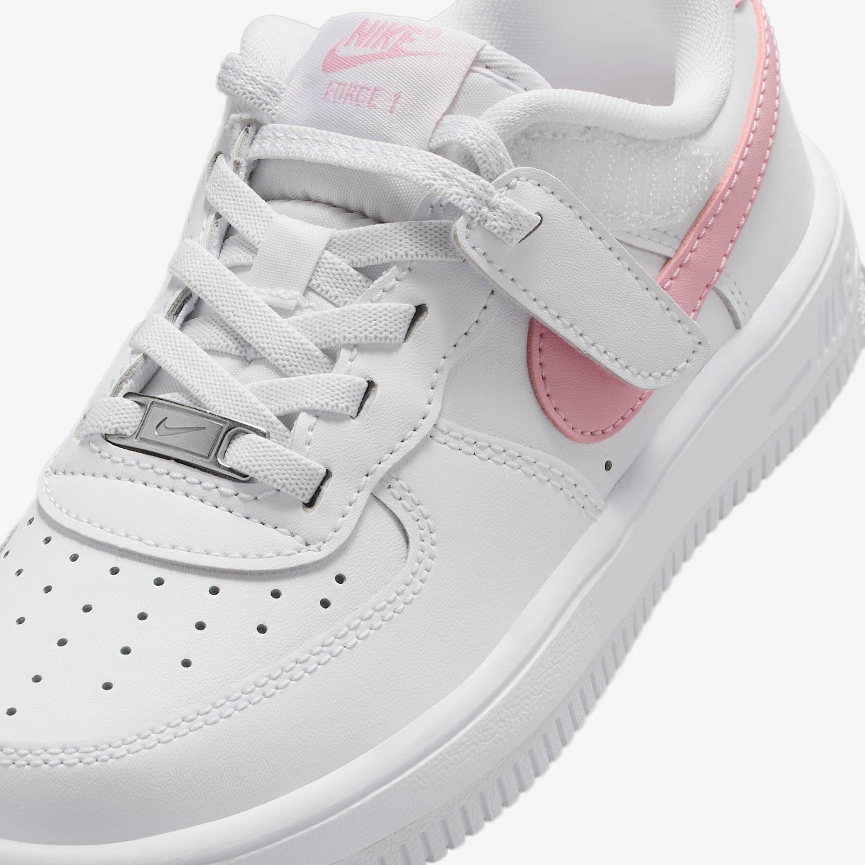 Get out the door fast without struggling with shoelaces. The top lace loops on these sneakers are attached to hook-and-loop straps, helping kids secure their fit fast while still enjoying classic AF-1 style. Benefits * Our helpful Nike EasyOn features empower kids to do it themselves so they can focus on what matters most: play. * Elastic laces and a hook-and-loop strap make these shoes easy to get on and off. * Real and synthetic leather offers durability and structure. * The soft foam in the midsole helps cushion every step. * A rubber outsole adds durable traction with a circular tread pattern originally designed to help basketball players pivot on the court. Product details * Elastic laces * Perforations on the toe