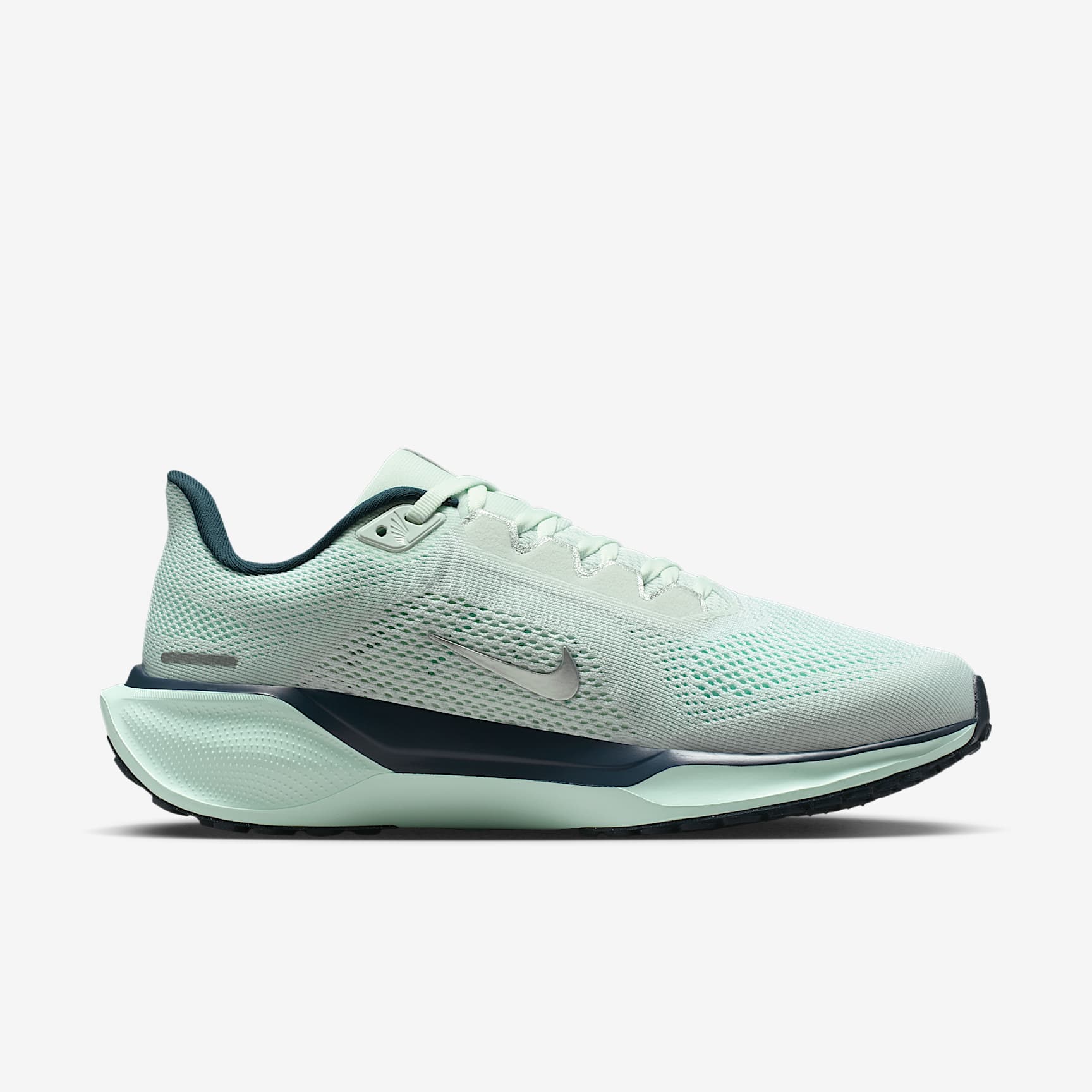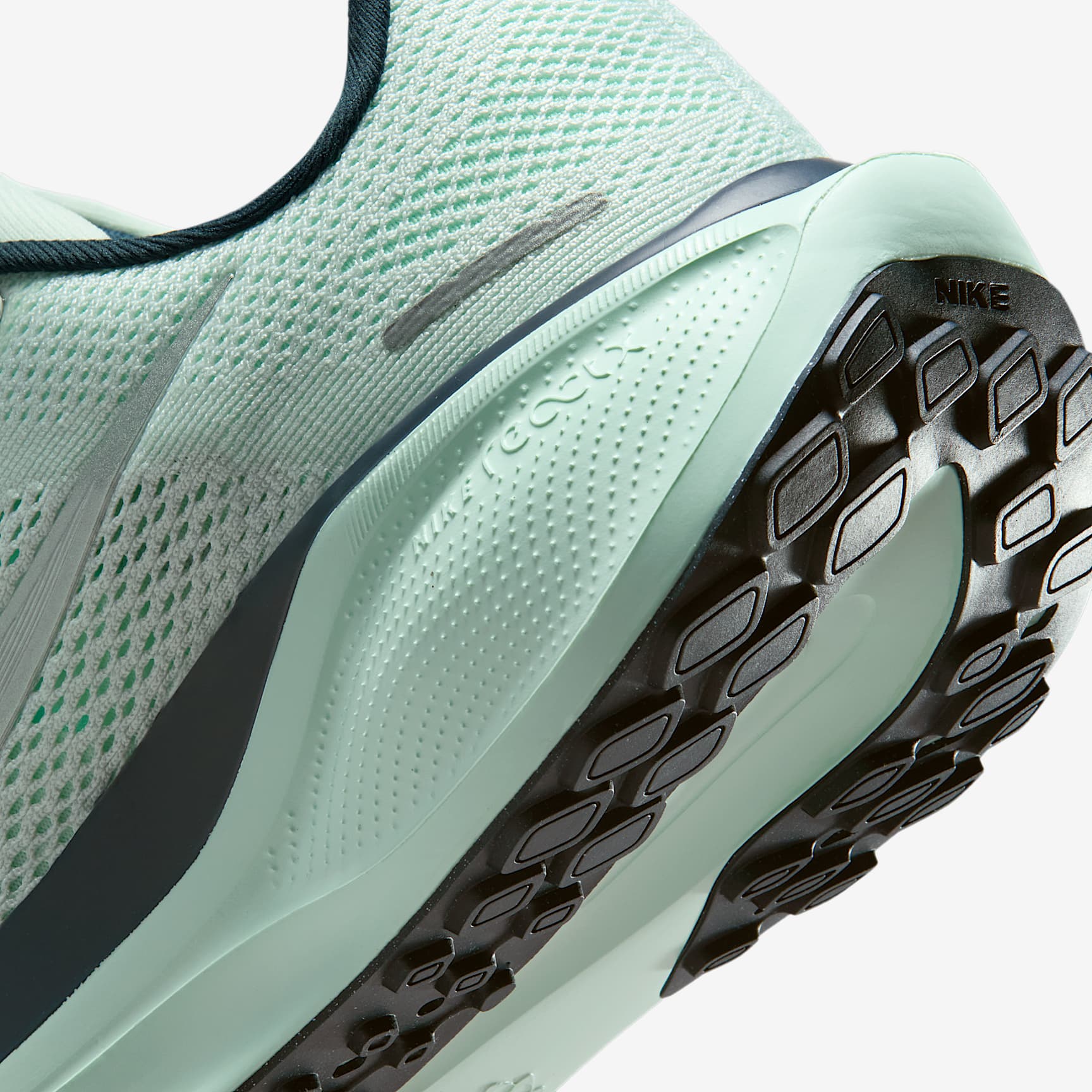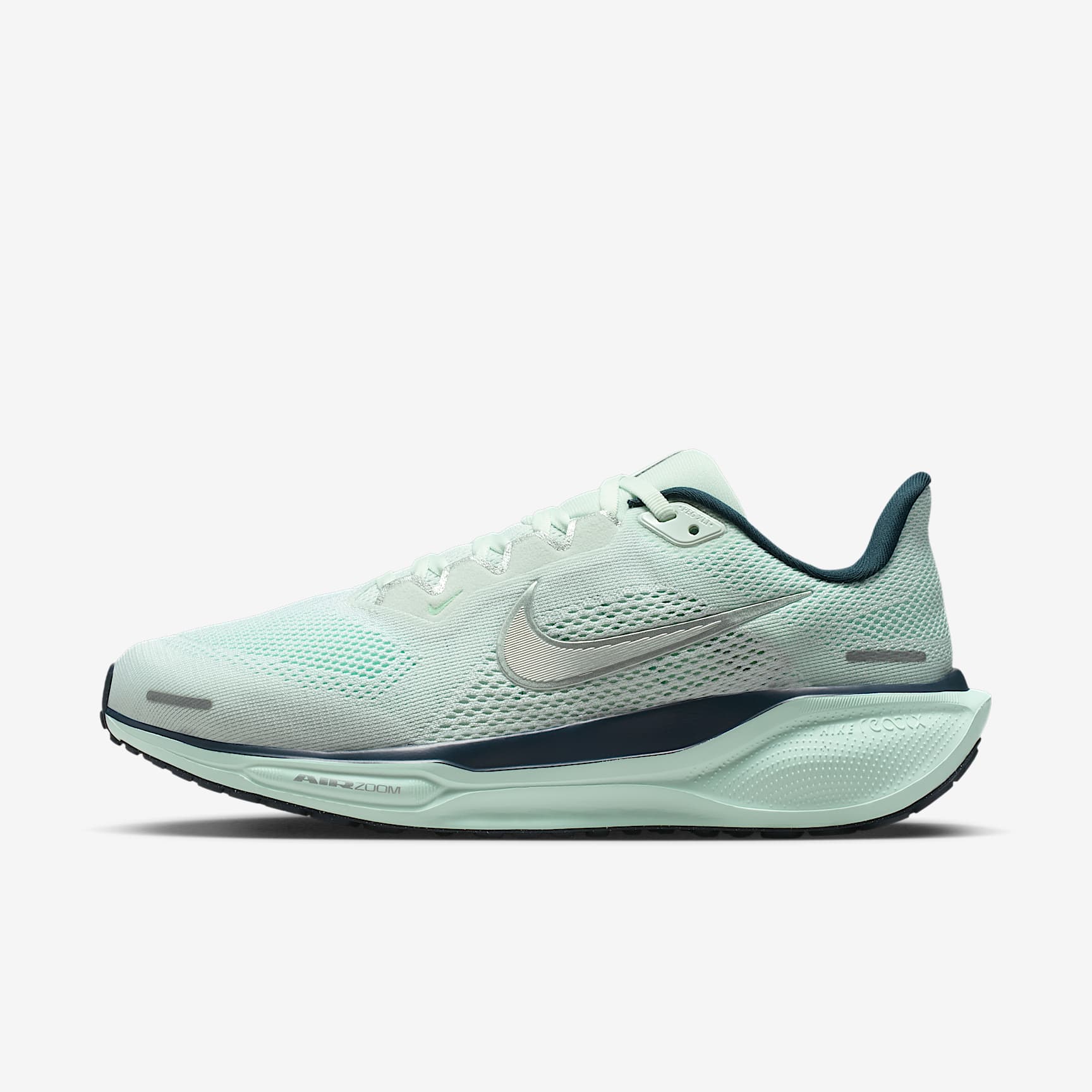 Responsive cushioning in the Pegasus provides an energized ride for everyday road running. Experience lighter-weight energy return with dual Air Zoom units and a ReactX foam midsole. Plus, improved engineered mesh on the upper decreases weight and increases breathability. Springy Cushioning We paired Nike ReactX foam with two Air Zoom units (one in the forefoot and one in the heel) to give you a bouncy, springy sensation and an energized feel at toe-off. Waffle-Inspired Traction Signature waffle-inspired rubber outsole provides traction and flexibility. Plush Padding Plush collar, tongue and sockliner for a secure and comfortable fit What's New? * ReactX foam midsole is 13% more responsive than previous React technology. * Engineered mesh upper is lighter and more breathable than the Pegasus 40. Product Details * Weight: Approx. 251g/8.9oz (Women's US 8) * Heel-to-toe drop: 10mm * MR-10 Last - Our best, most consistent fit (same as Pegasus 40) * Reflective details * Not intended for use as Personal Protective Equipment (PPE)