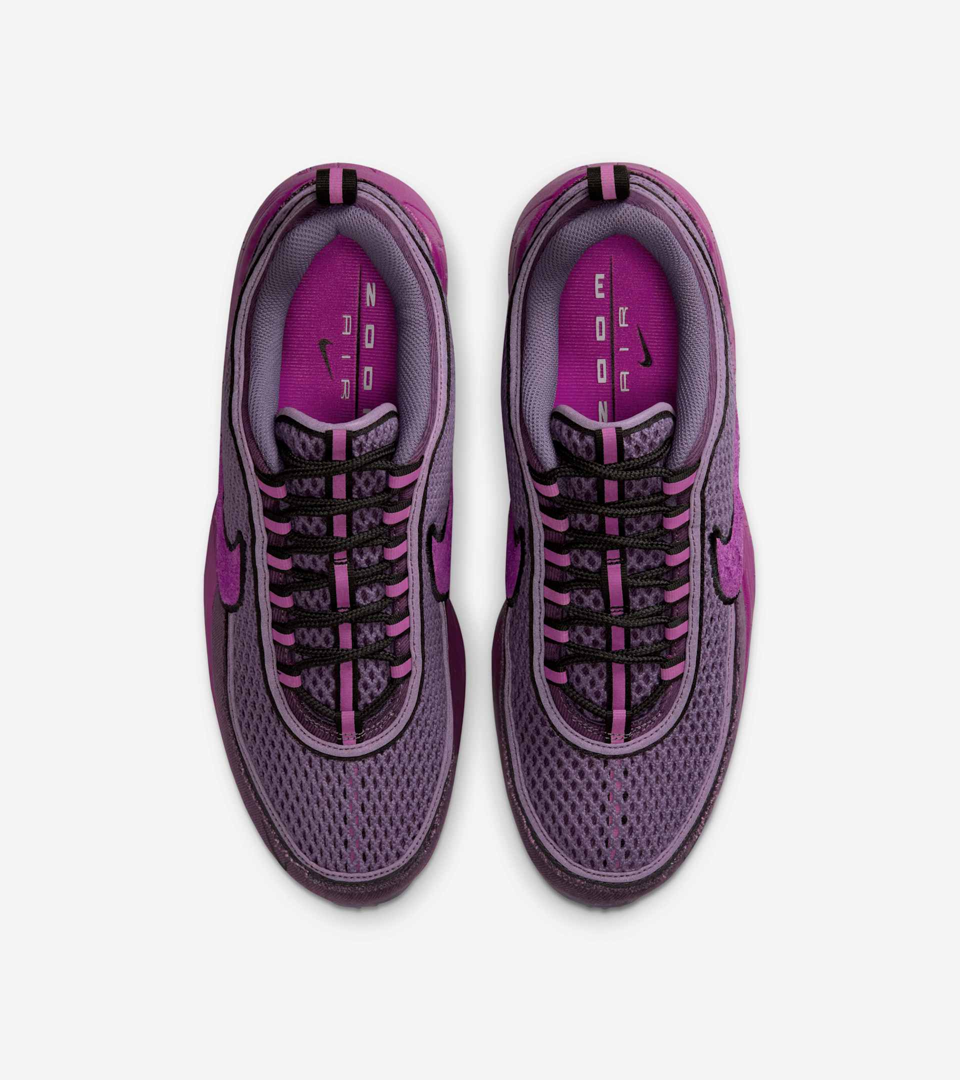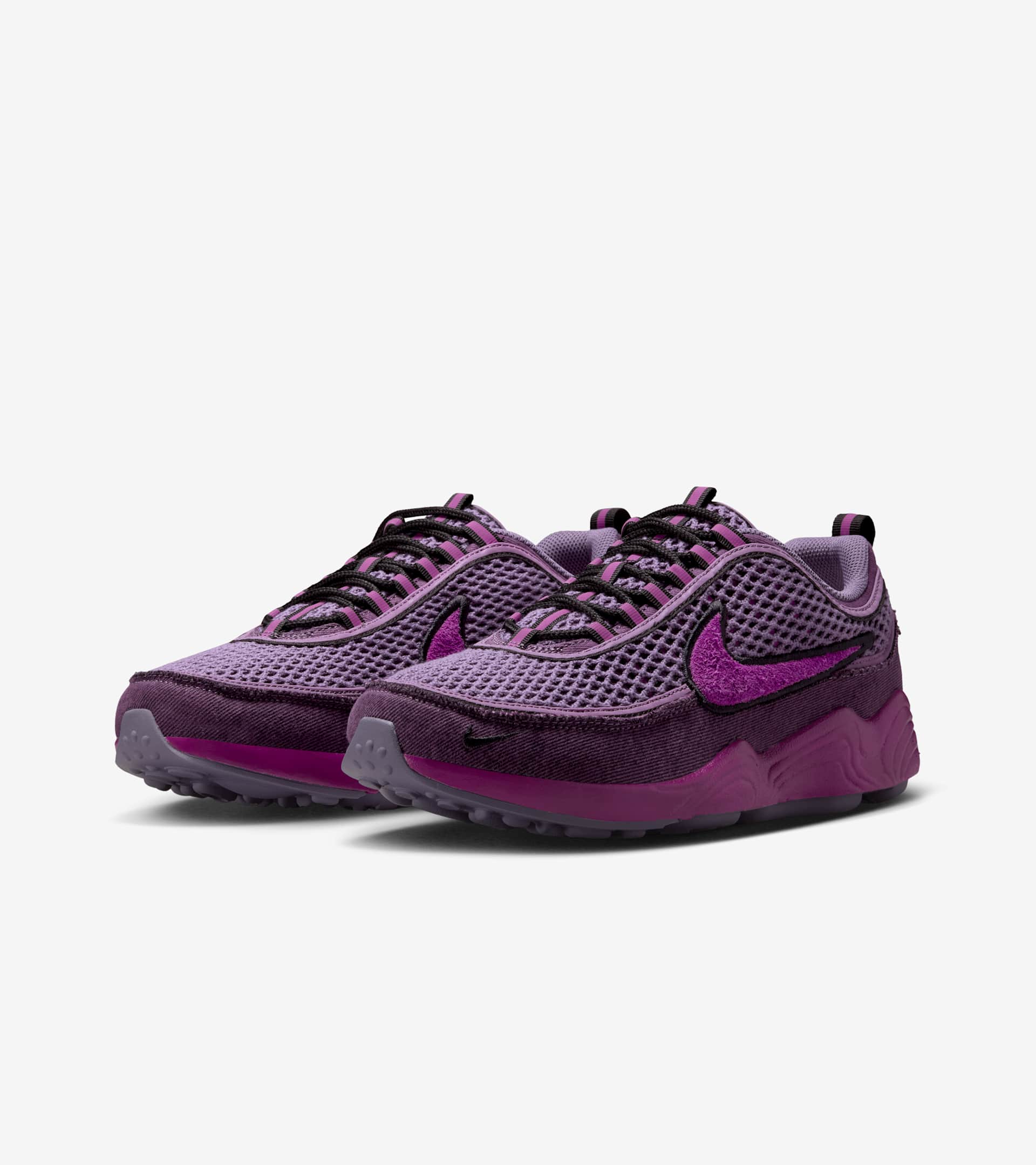 The iconic running silhouette returns—primed and ready for the streets. Introduced in 1997, the Air Zoom Spiridon played a pivotal role in the evolution of Nike's pressure-mapped designs built to improve cushioning for runners. This bold edition takes a departure from more traditional colour combos, opting instead to mix Hot Fuchsia, Viotech and black. Reflective-design piping, airy mesh and that plush foam midsole give a collective nod back to the original. The Spiridon's bouncy, full-length Air Zoom cushioning lets you enjoy the past, present and future of comfort. SKU: IH3360-599