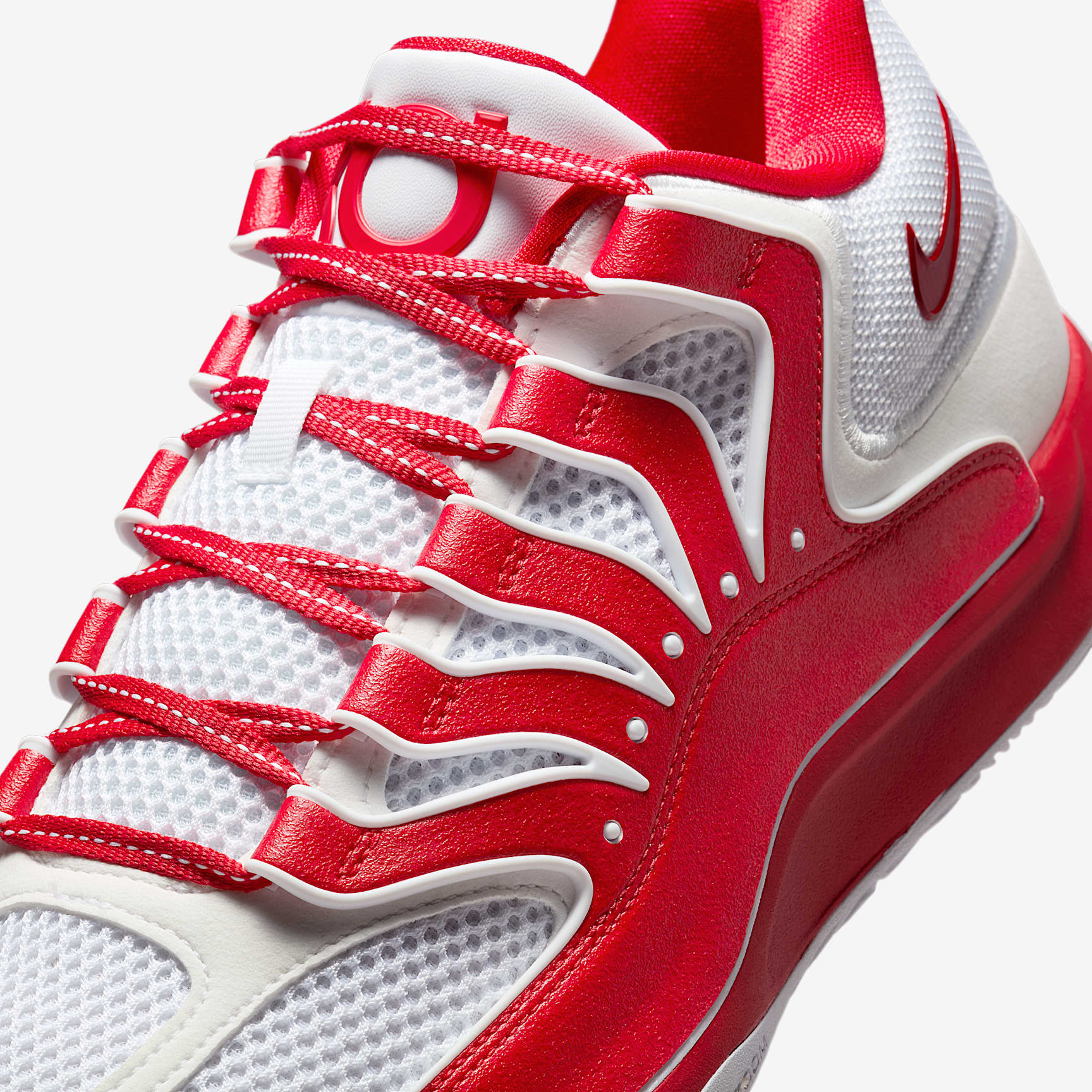 KD’s greatest gift? His stamina. The Slim Reaper never tires, both in terms of passion for the game or energy come crunch time. A combo of Air Zoom cushioning and Nike Air gives him unreal responsive cushioning. And we poked holes all over the upper to help reduce the weight and add breathability, so he can hoop all day. Zoom, Zoom A big forefoot Air Zoom unit offers a different level of velocity when exploding, either on the dead run or out of a standstill position. It offers a different level of snappy pop when the game revs up. Our latest version of Cushlon foam adds a soft, comfortable sensation and freshness for four quarters. Pop Your Steps The bottom layer of the upper has Nike Air cushioning at the heel to add a pop in your step. A strong plastic plate directly underfoot conforms as you flex. It works with the forefoot Air Zoom unit to give you a snappy first step while also providing support and stability. Stay Contained A tough plastic cage offers firmness on both sides of your foot. It helps keep you upright.
