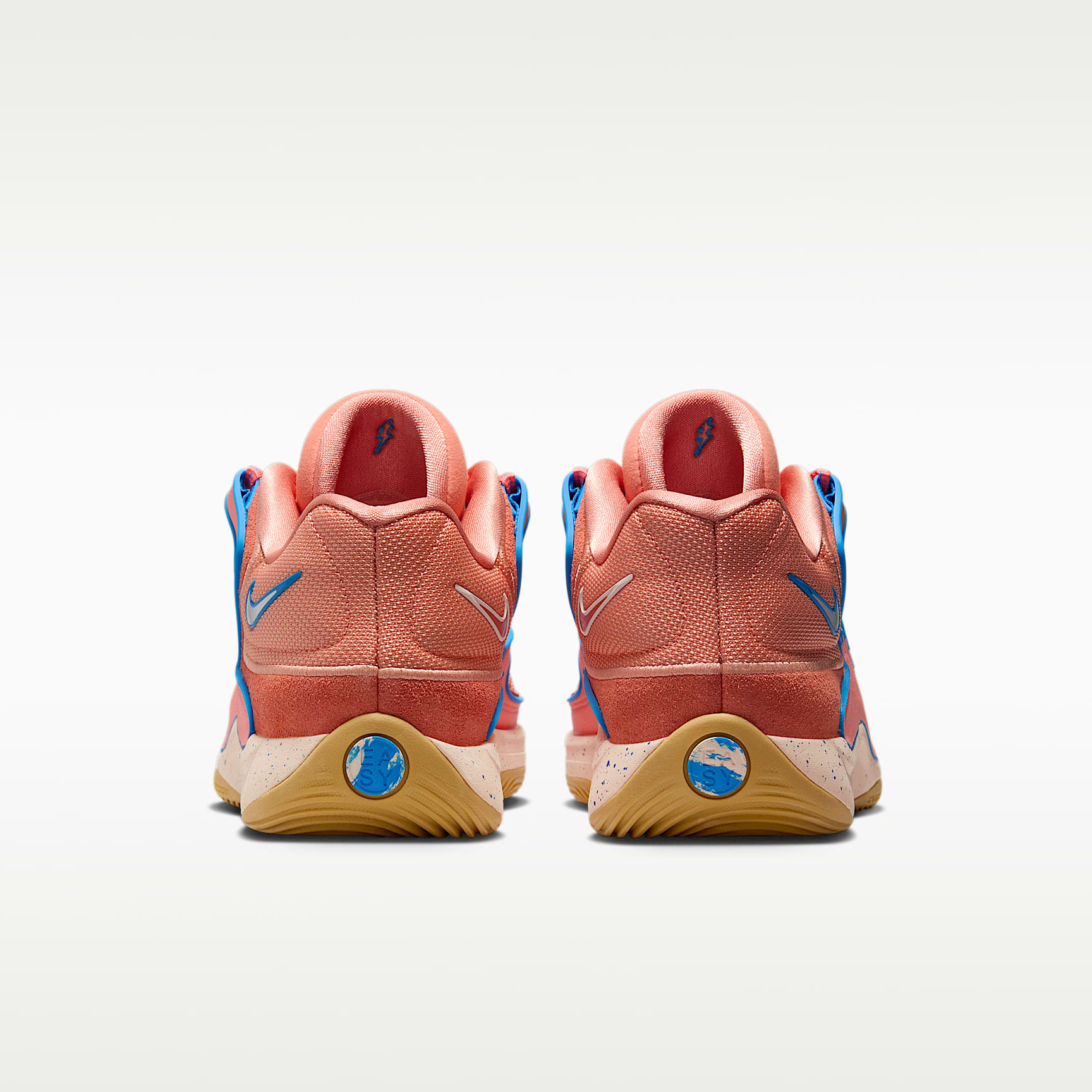 KD's greatest gift? His stamina. The Slim Reaper never tires, both in terms of passion for the game or energy come crunch time. A combo of Air Zoom cushioning and Nike Air gives him unreal responsive cushioning. And we poked holes all over the upper to help reduce the weight and add breathability, so he can hoop all day. Zoom, zoom A big forefoot Air Zoom unit offers a different level of velocity when exploding, either on the dead run or from a standstill position. It offers a different level of snappy pop when the game revs up. Our latest version of Cushlon foam adds a soft, comfortable sensation and freshness for four quarters. Pop your steps The bottom layer of the upper has Nike Air cushioning at the heel to add a pop to your step. A strong plastic plate directly underfoot contours as you flex. It works with the forefoot Air Zoom unit to give you a snappy first step, while also providing support and stability. Stay contained A tough plastic cage helps keep you upright and offers firmness on both sides of your foot.
