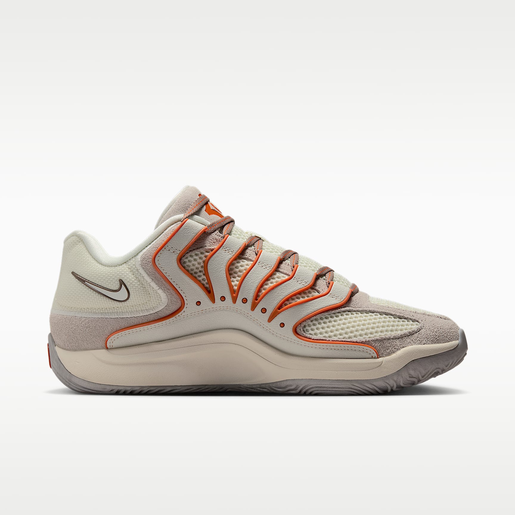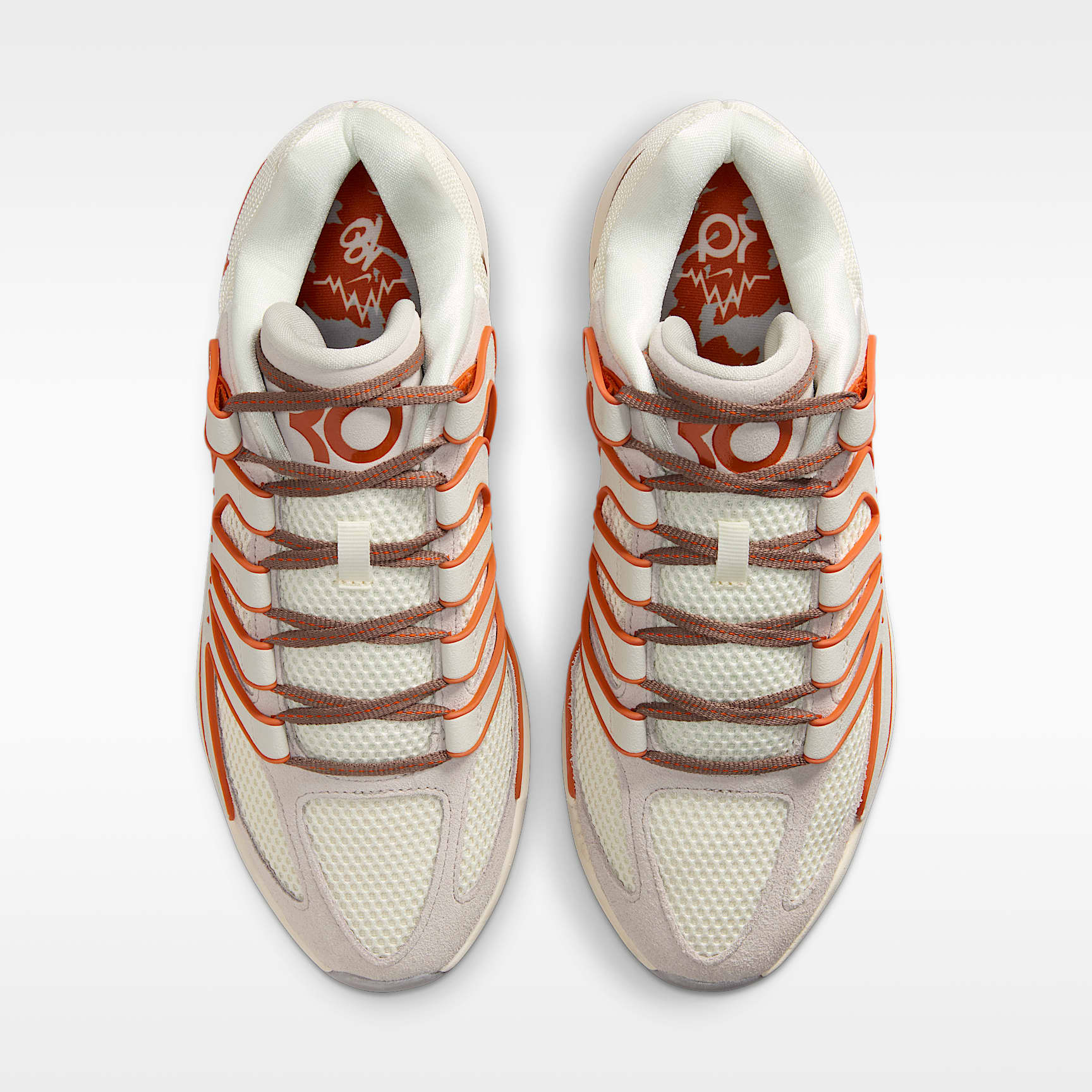With all the eyes of Texas upon him, KD showed up and stood out. He took the uni basketball world by storm. Made every game must-see television. One-and-done, but a Longhorn for life. This special design celebrates the importance of that time in KD's story, complete with a cow skull branded on the back of the tongue and a cow print seared on the sockliner. Zoom, zoom A big forefoot Air Zoom unit offers a different level of velocity when exploding, either on the dead run or from a standstill position. It offers a different level of snappy pop when the game revs up. Our latest version of Cushlon foam adds a soft, comfortable sensation and freshness for four quarters. Pop your steps The bottom layer of the upper has Nike Air cushioning at the heel to add a pop to your step. A strong plastic plate directly underfoot contours as you flex. It works with the forefoot Air Zoom unit to give you a snappy first step, while also providing support and stability. Stay contained A tough plastic cage helps keep you upright and offers firmness on both sides of your foot.