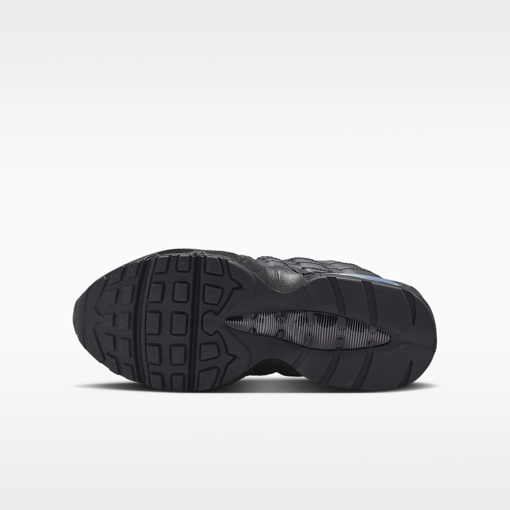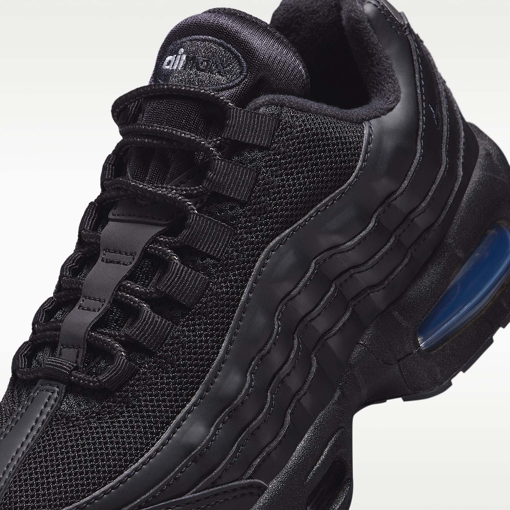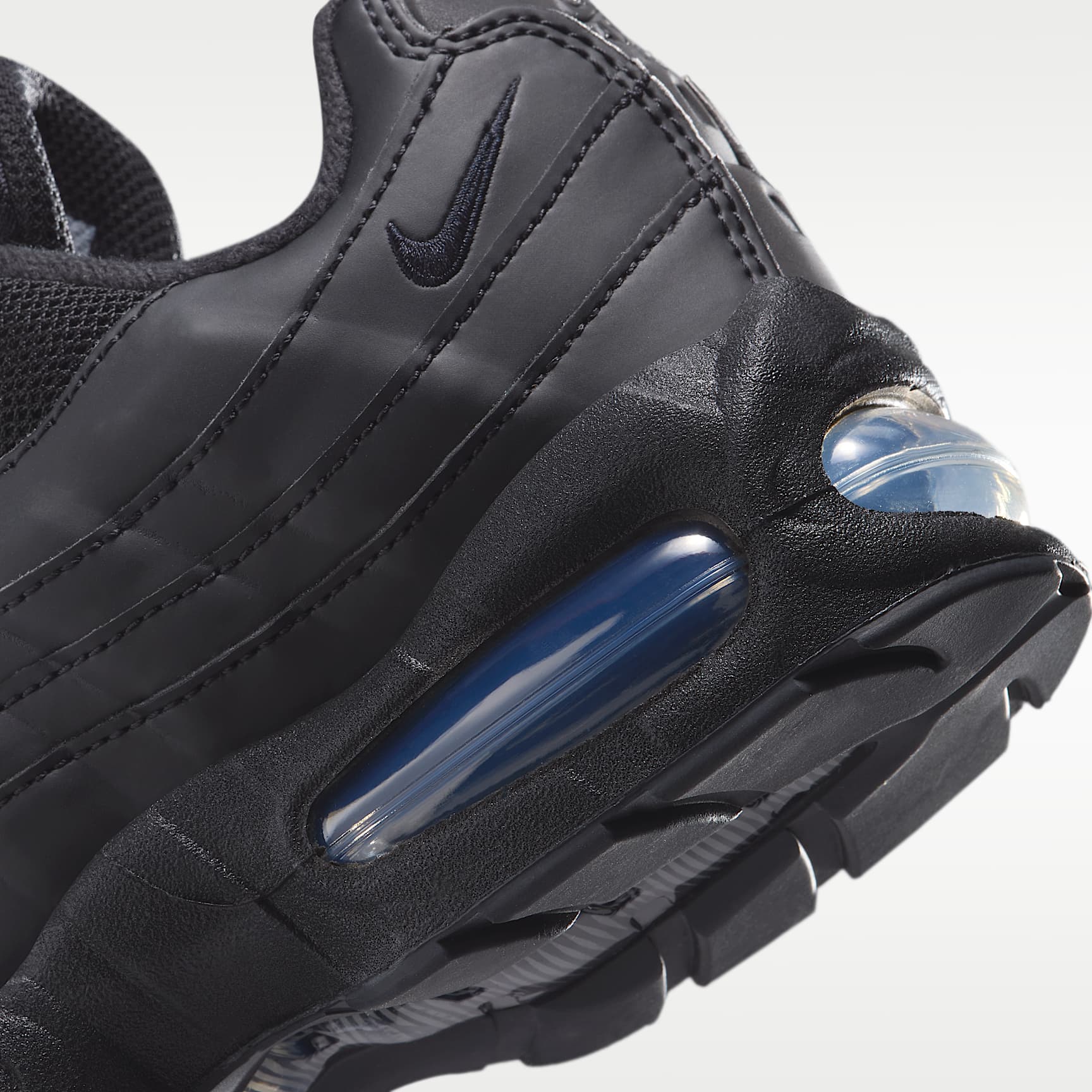 The AM95 doesn't follow trends—it sets them. First in the Air Max line-up to break from the established AM look, the '95's airy mesh and rippling layers of synthetic leather are meant to mimic the human form. Thirty years later it still retains the same rebellious spirit, innovative tech and game-changing comfort. Benefits * The upper draws inspiration from human anatomy with muscles inspiring the side panels and the spine informing the outsole and midsole design. * The upper mixes breathable mesh and other textiles with durable synthetic leather for a layered look that's built to last. * The visible Max Air unit helps provide lightweight cushioning. * The rubber outsole with flex grooves gives you durable traction. Product Details * Classic laces * Foam midsole