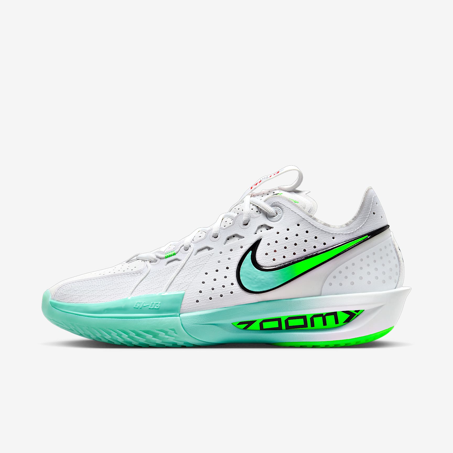 How can you separate your game when it’s winning time? Start by lacing up in the G.T. Cut 3. Designed to help you create space for stepback jumpers and backdoor cuts, its sticky multicourt traction helps you stop on a dime and shift gears at will. And when you're making all those game-changing plays, the newly added, ultra-responsive ZoomX foam helps keep you fresh for four quarters. Traction: Super High The more traction you have underfoot, the more separation you can create from your opponent. It can help you stop on a dime and shift gears at will. Giving you stop-and-go traction from heel to toe, the pattern on the G.T. Cut 3 is ideal for lateral cuts and quick changes in movement. Responsiveness: Super High The more responsive the shoe, the more energy return you can get back with each cut, pivot and move to the hoop. Responsive shoes help give you more spring in your step so you can feel fast for four quarters. Full-length ZoomX foam adds more bounce into every step without overloading it with ounces, so you can run the floor or race from side to side when the action ramps up. Cushioning: High The more cushioning that you have underfoot, the more comfortable your game can be. Cushioning helps soften impact as your feet hit the ground. We paired the ZoomX foam with a foam midsole to help you stay fresh for 4 quarters. What's New About the G.T. Cut 3? For the first time in our Basketball history, we implemented full-length ZoomX foam that delivers Nike’s highest energy return. A smaller plastic plate on the pinky-toe side of the forefoot helps keep your foot stable when making sudden movements. Secure Feel Flywire cables integrate with the laces to help secure your forefoot. More Benefits * Stretchy, breathable material up top is super lightweight and helps keep you cool. * Padded collar at the Achilles helps your ankle feel comfortable, yet secure.