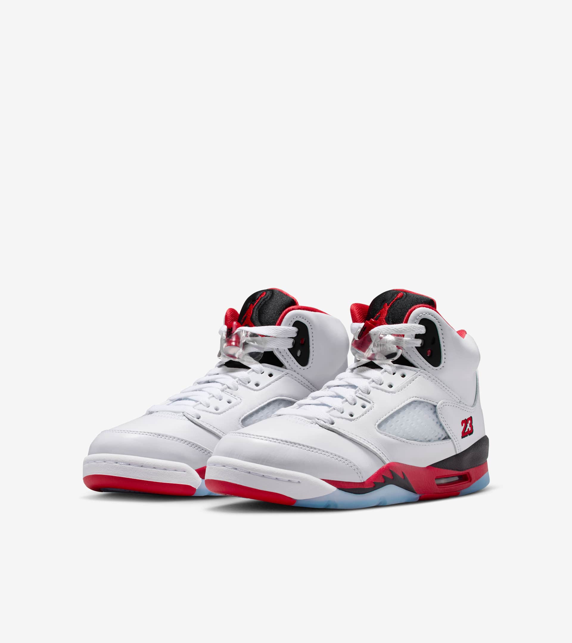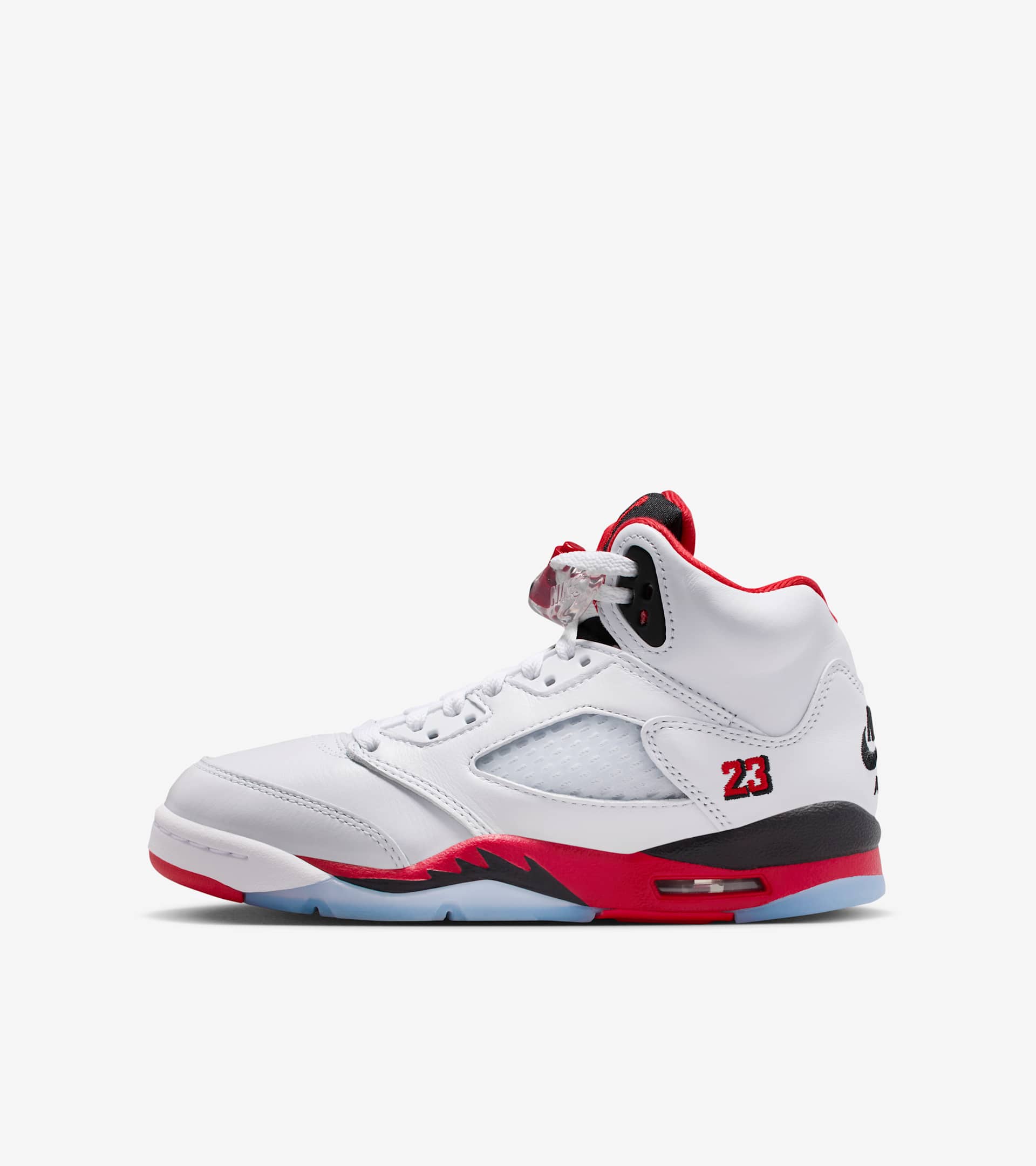 Big Kids' Air Jordan 5 Fire Red 'Black Tongue'