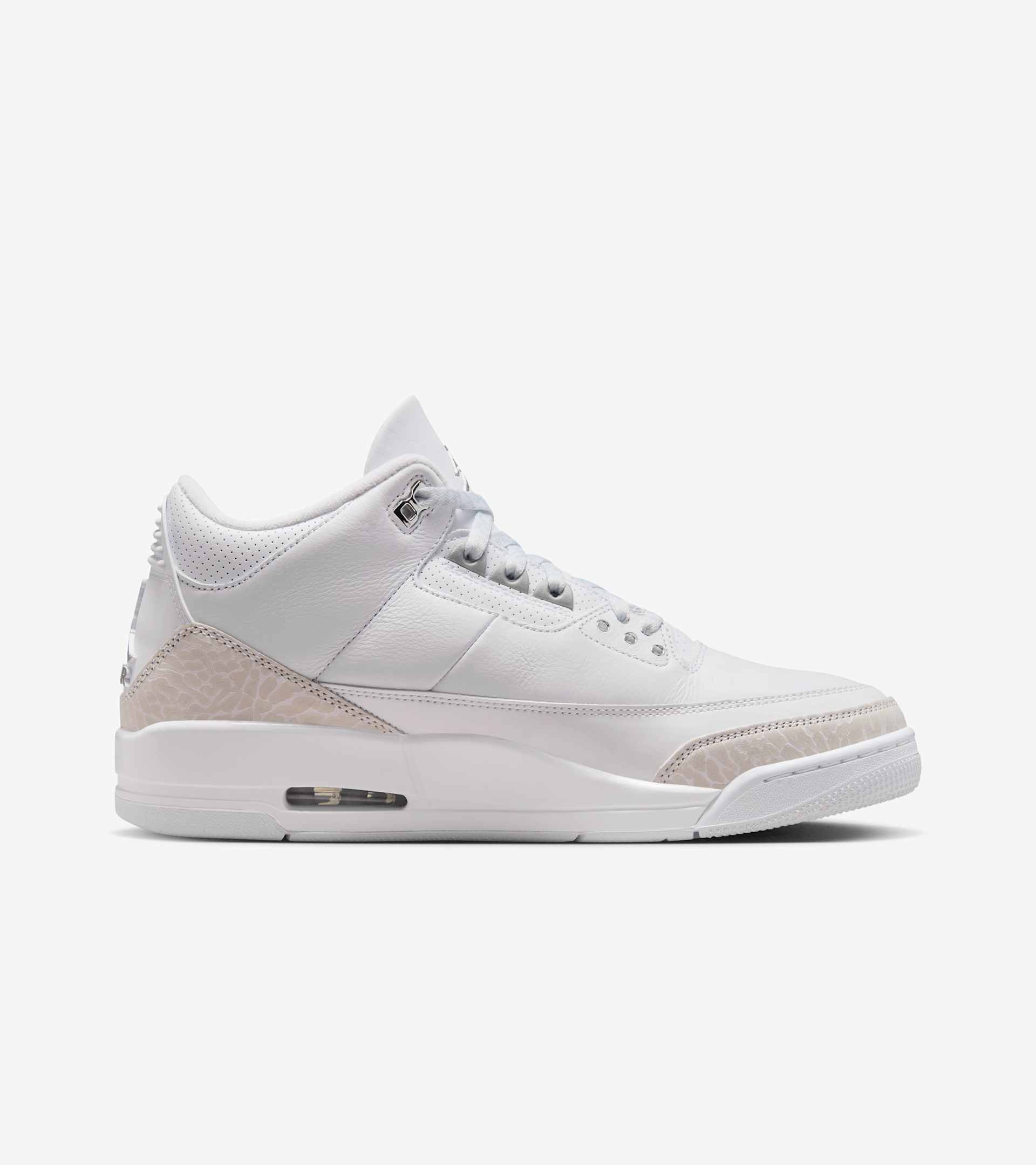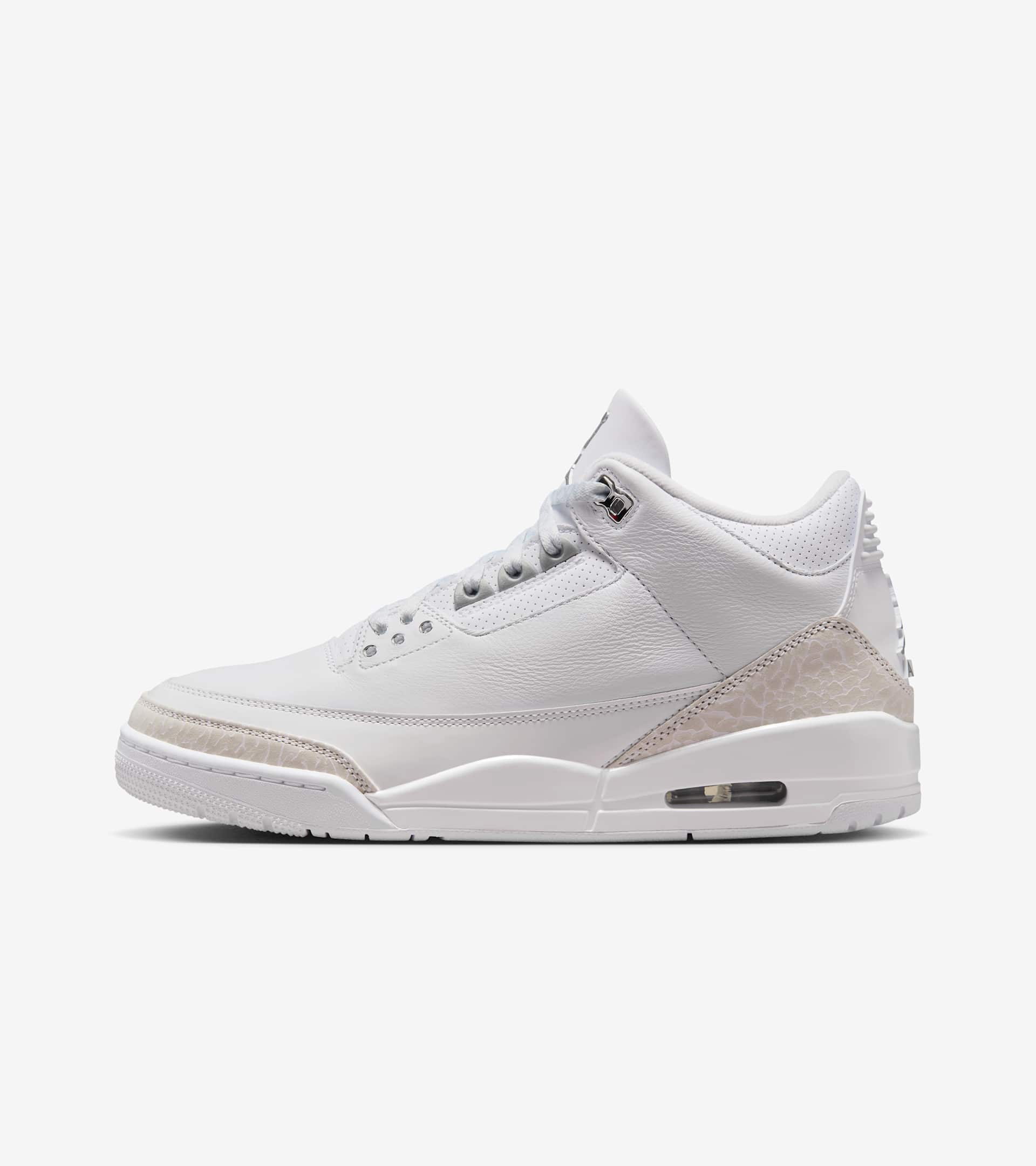Pure Money. Nothing better. This iconic AJ3 colorway returns to cash another check. Clean and minimalistic, the premium white leather and nubuck elephant print overlays combine with Metallic Silver accents and "Pure $" embroidery. Cha-ching! SKU: CT8532-111