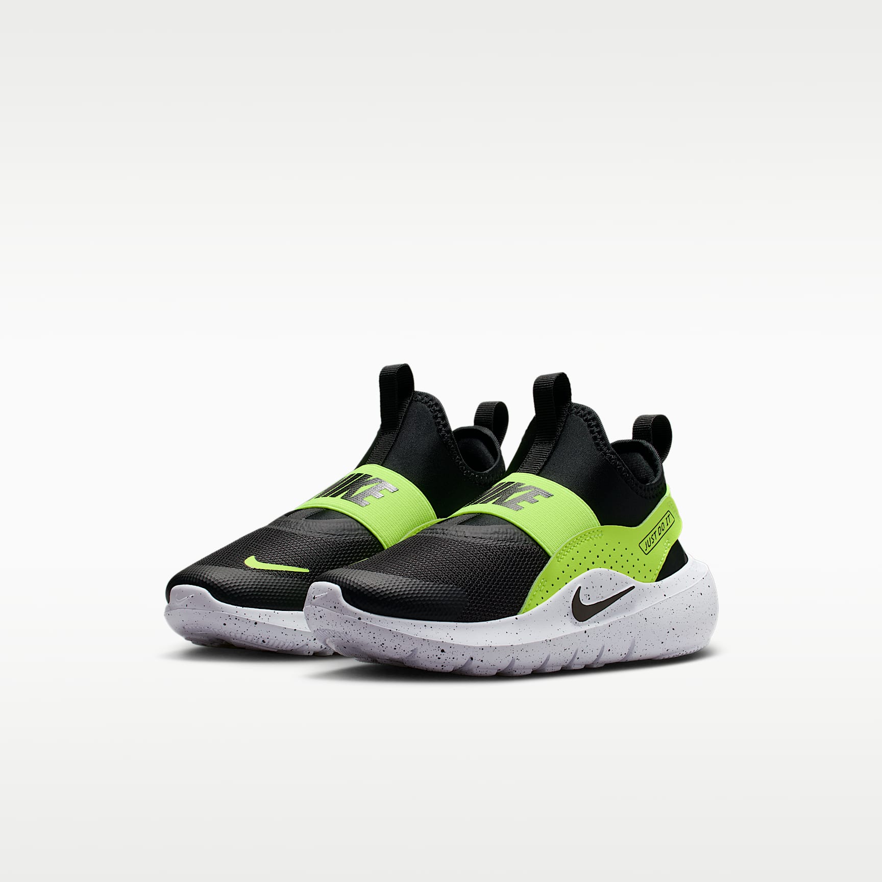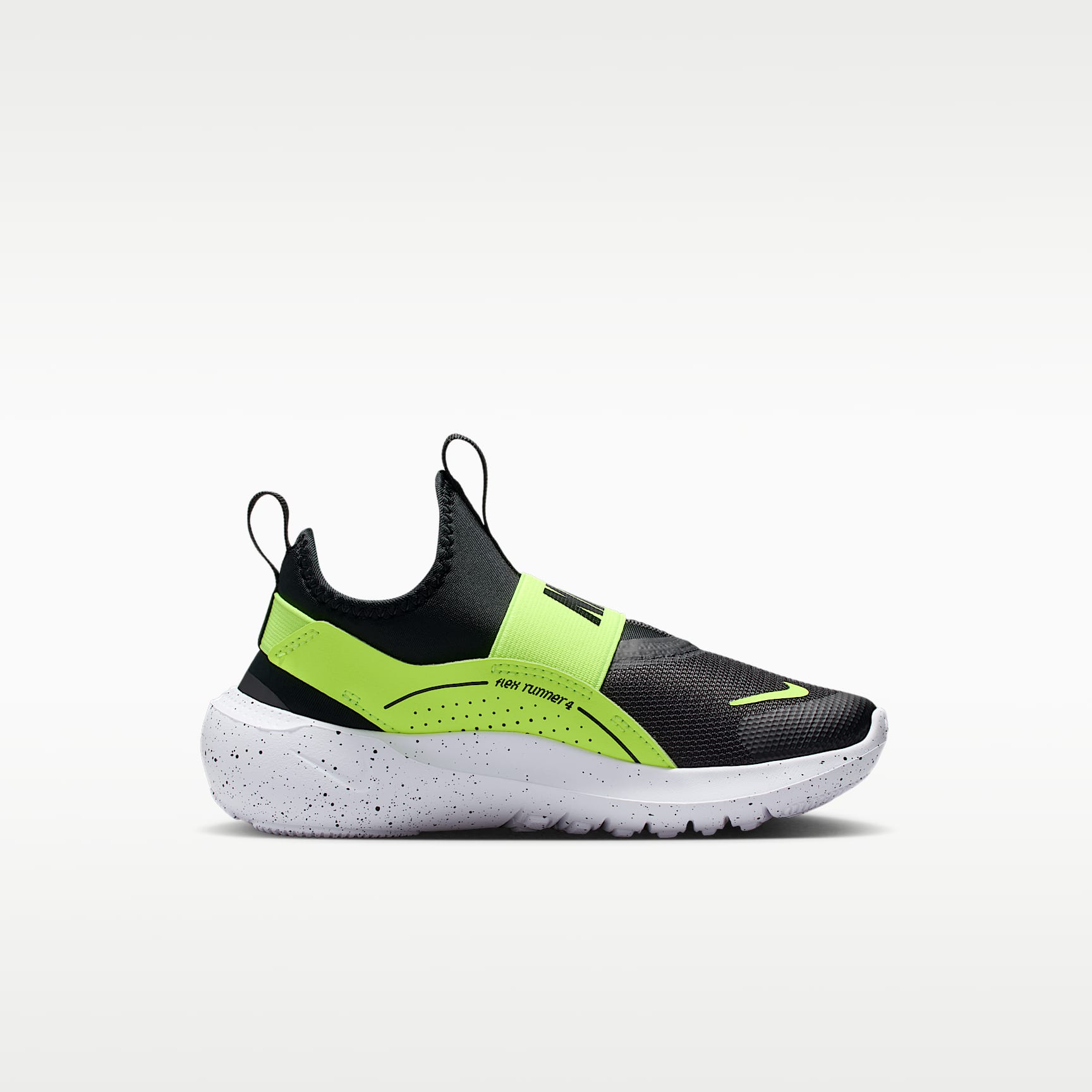 Designed for getting into fun fast, the Flex Runner 4 is made to be easy for kids to pull on. Its bootie-like design is flexible with stretchy straps that secure their fit. Flex grooves in the outsole allow little feet to move naturally, helping little ones find their footing. What's New You spoke and we listened. For the Flex Runner 4, we've updated the fit of the midfoot strap and the collar to help make these easy for kids to slip on and comfortable enough to wear all day. Pull on and go Pull tabs on the heel and tongue work with a stretchy inner sleeve to help make these shoes easy for kids to put on themselves. Elastic straps run behind the heel and across the top of the foot to provide a snug, secure feel. Play anywhere Flex grooves in the outsole add flexibility, helping every step feel natural. Multi-surface traction works with sturdy foam that wraps around the heel to provide grip and stability when kids shift directions. Durable comfort and support We reinforced the toe box and used durable materials throughout to help these kicks stand up to how kids play. Soft, springy foam in the midsole helps cushion their every step.