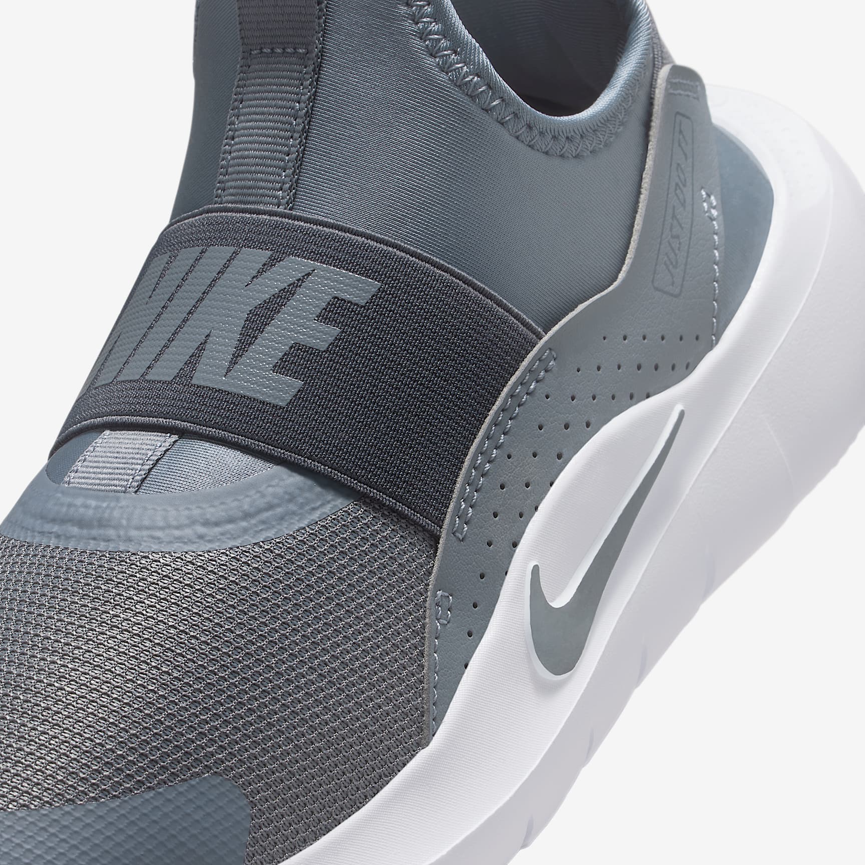 With the Flex Runner 4, you're always ready to race into fun. A flexible, bootie-like design makes it easy to pull on, while stretchy straps help secure your fit. Flex grooves in the outsole let your feet move naturally, helping you find your stride. What's new You spoke and we listened. For the Flex Runner 4, we've updated the fit of the midfoot strap and the collar to help make these easy to slip on and comfortable enough to wear all day. Pull on and go Pull tabs on the heel and tongue work with a stretchy inner sleeve to help make these shoes easy to put on. Elastic straps run behind your heel and across the top of your foot to provide a snug, secure feel. Play anywhere Flex grooves in the outsole add flexibility, helping every step feel natural. Multi-surface traction works with sturdy foam that wraps around the heel to provide grip and stability when you shift directions. Durable comfort We reinforced the toe box and used durable materials throughout to help these kicks stand up to how kids like you play. Soft, springy foam in the midsole helps cushion your every step.